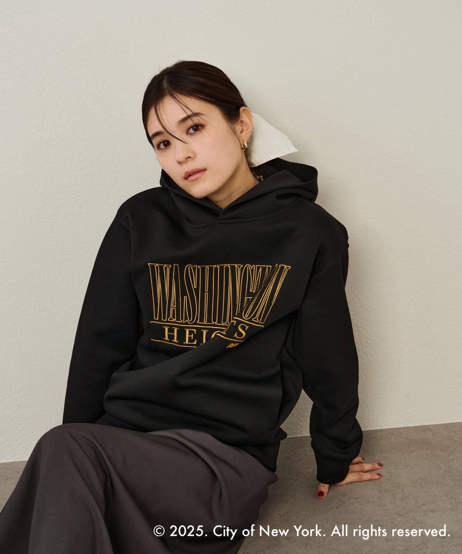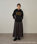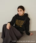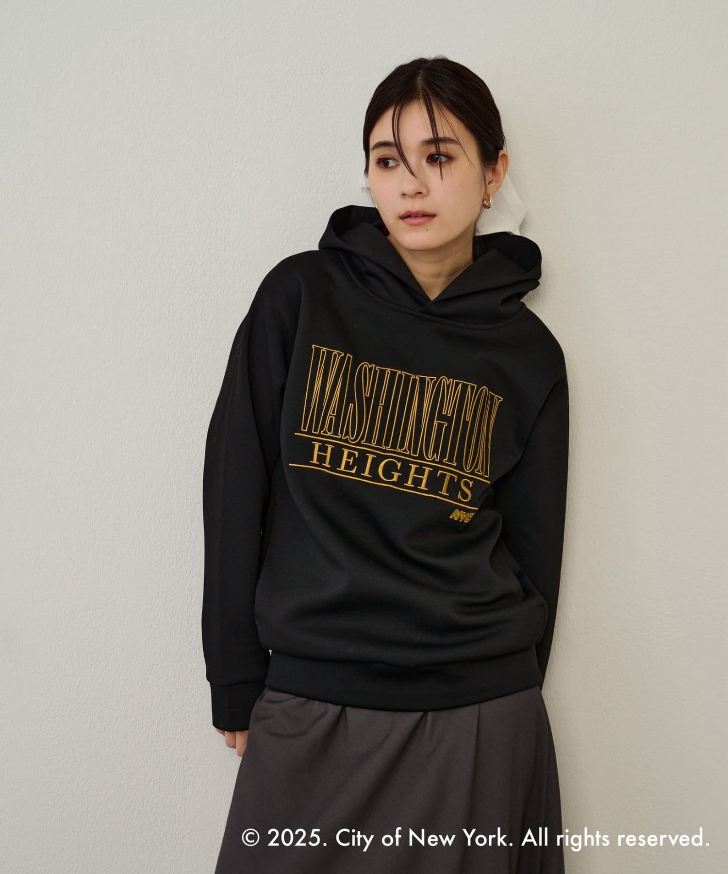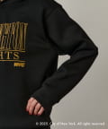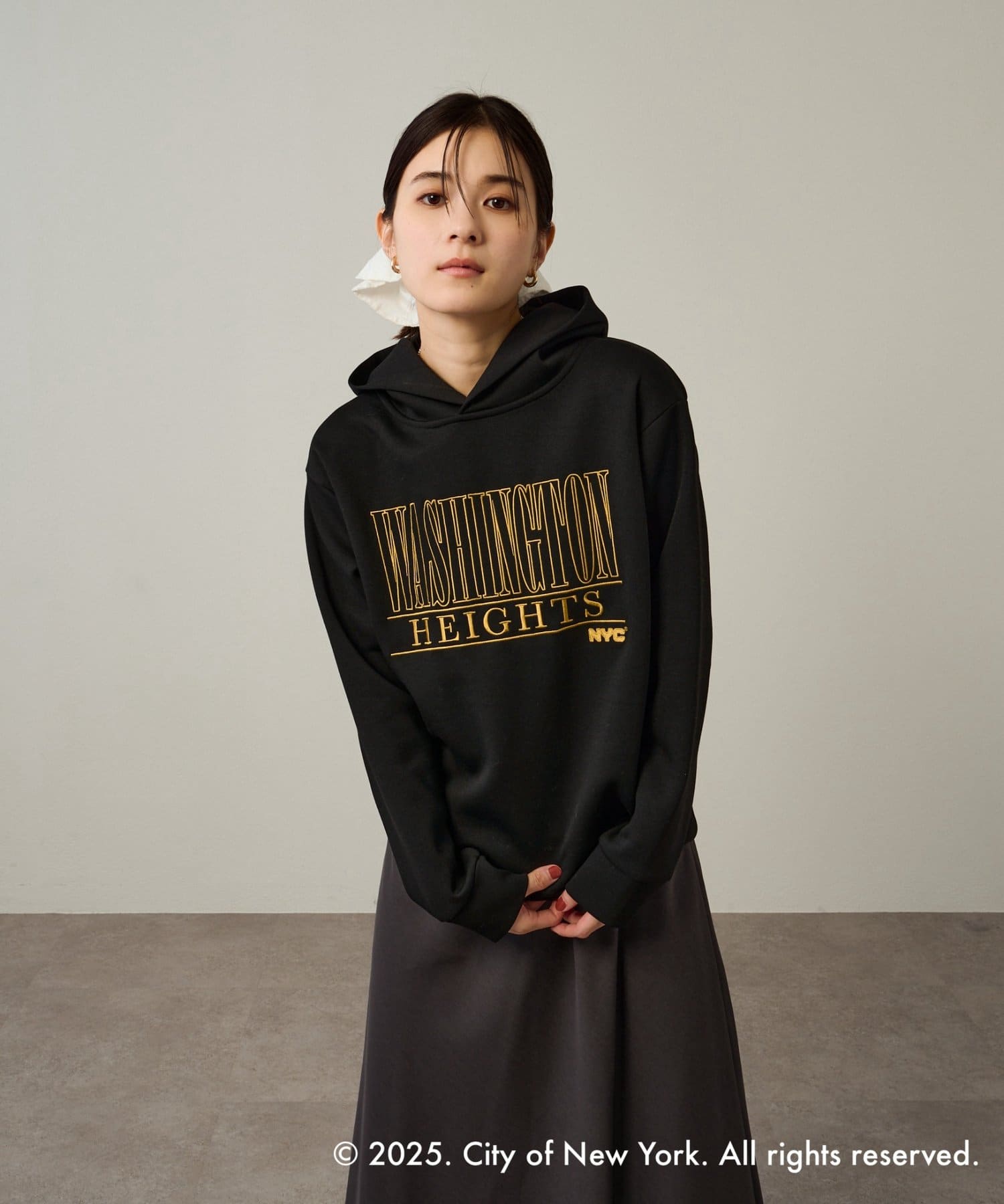 ゴールドのロゴがコーディネートのポイントになるフーディー