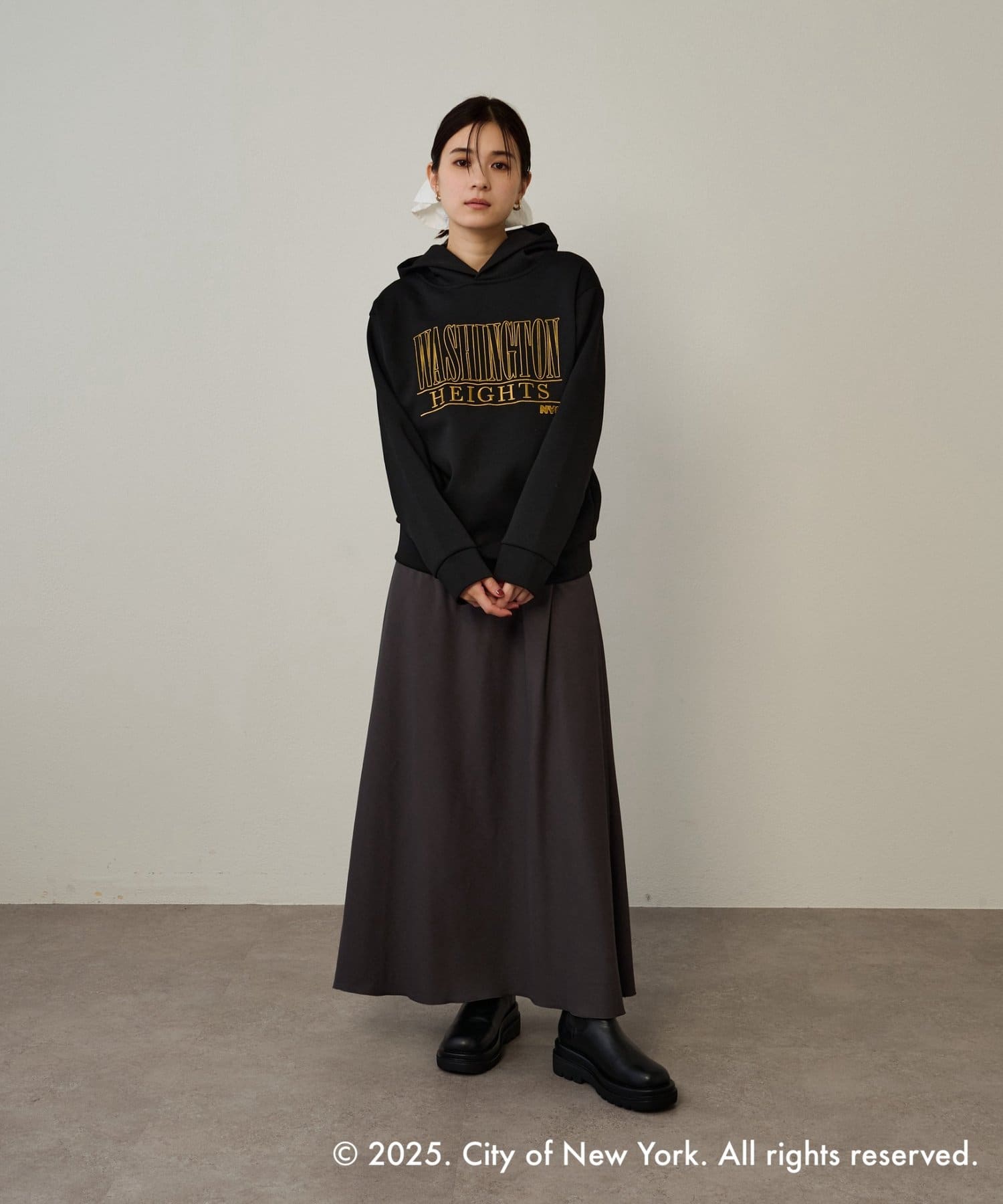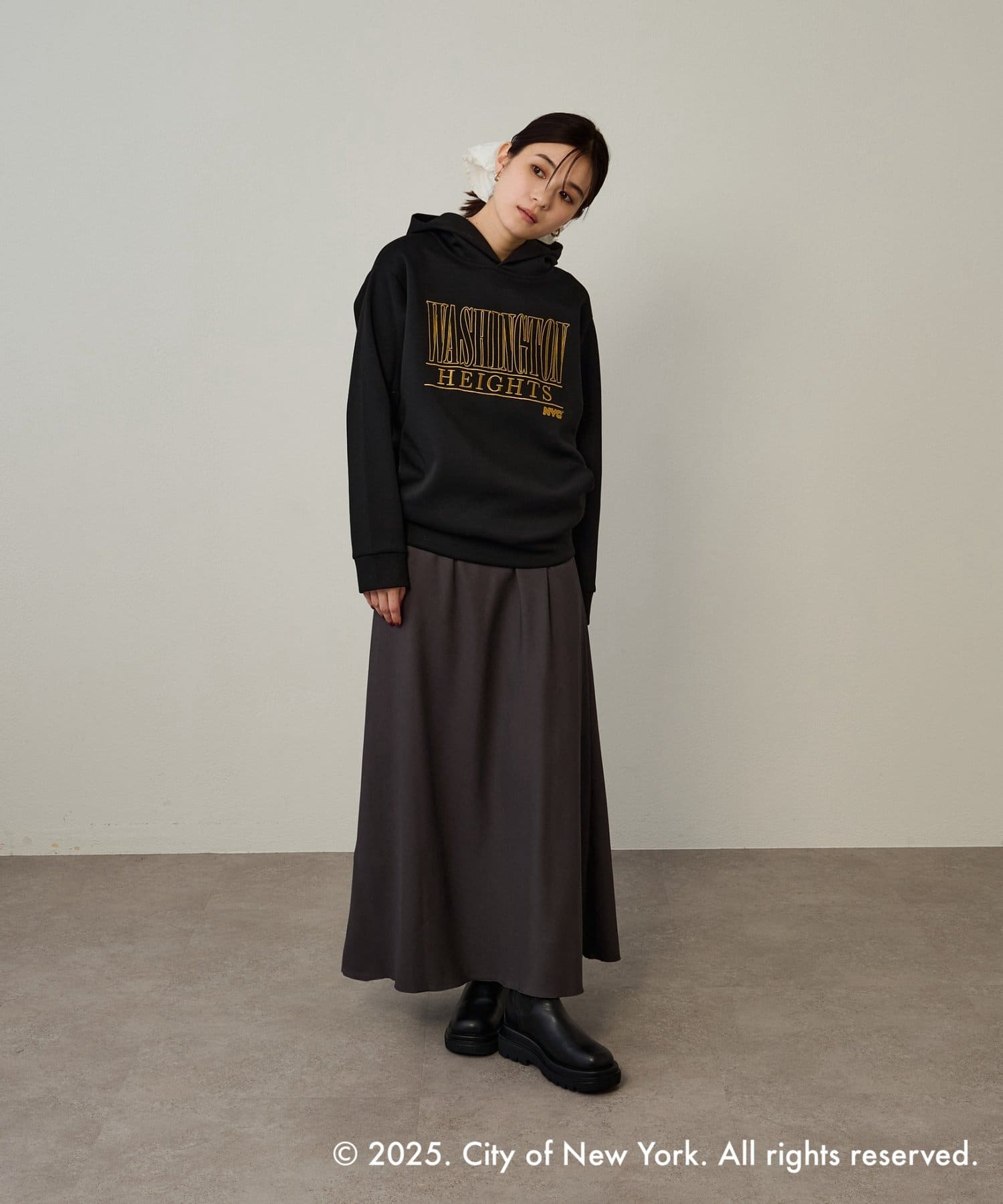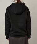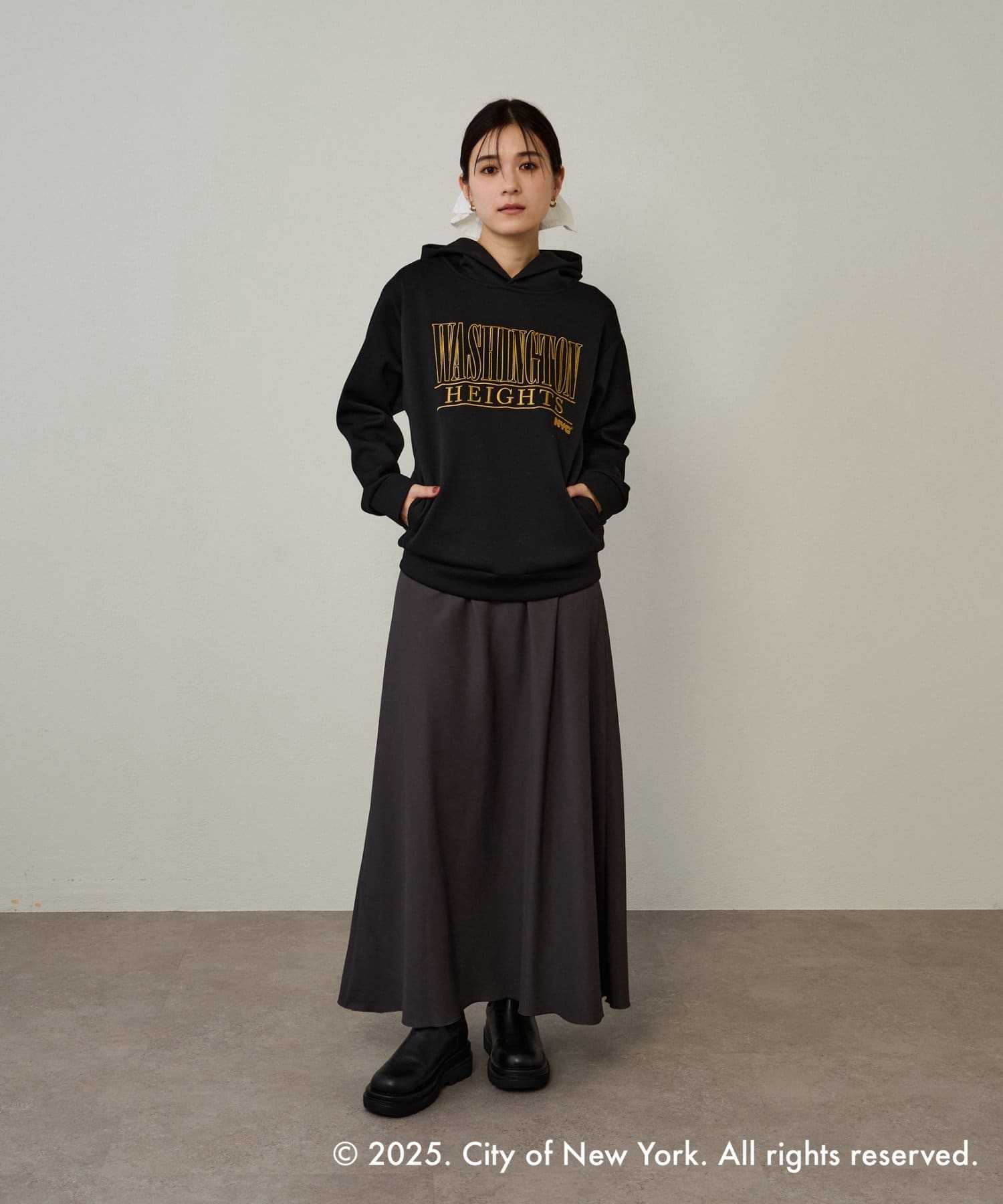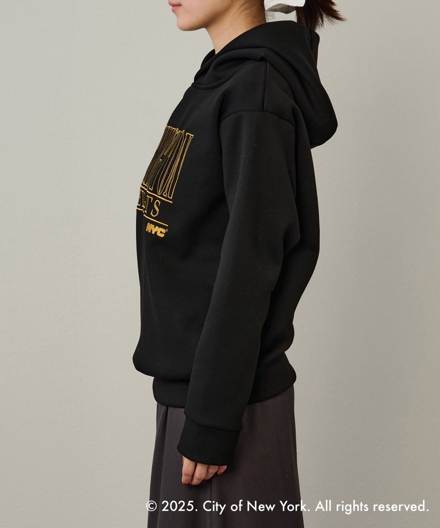 ゴールドのロゴがコーディネートのポイントになるフーディー