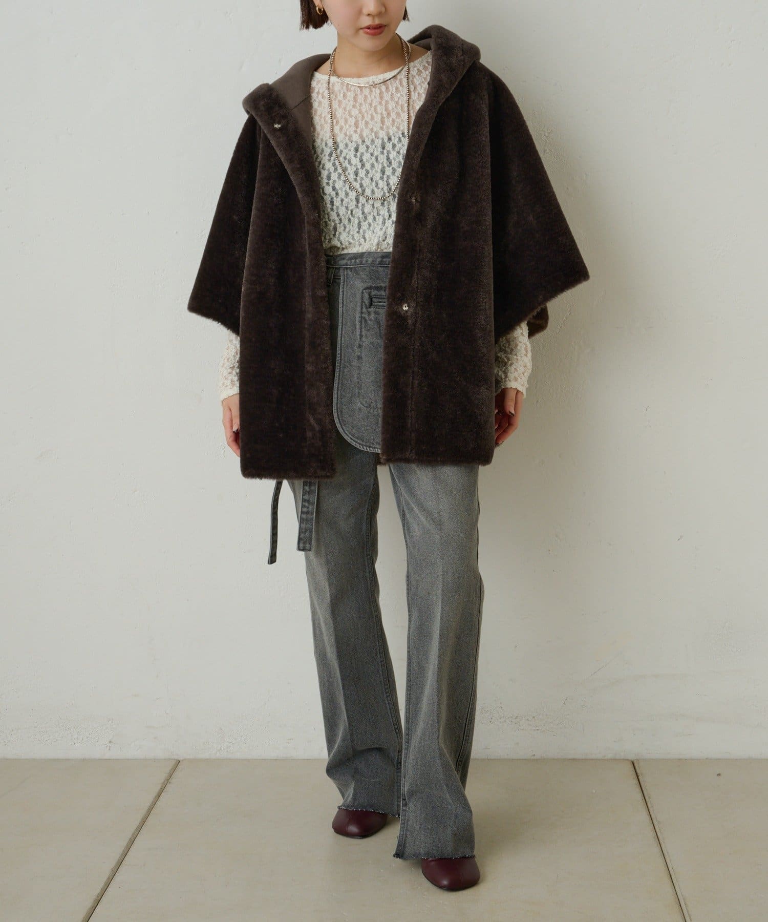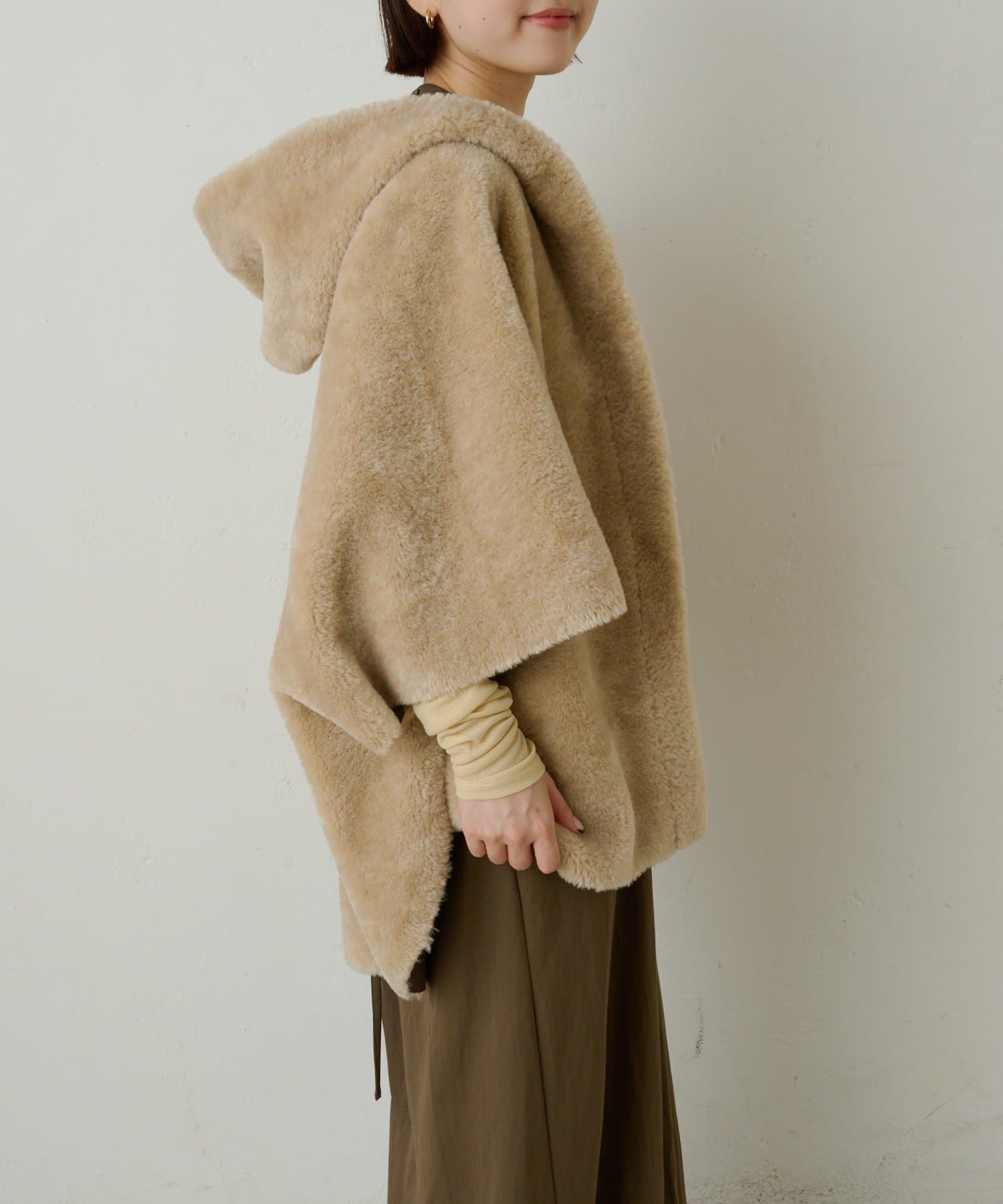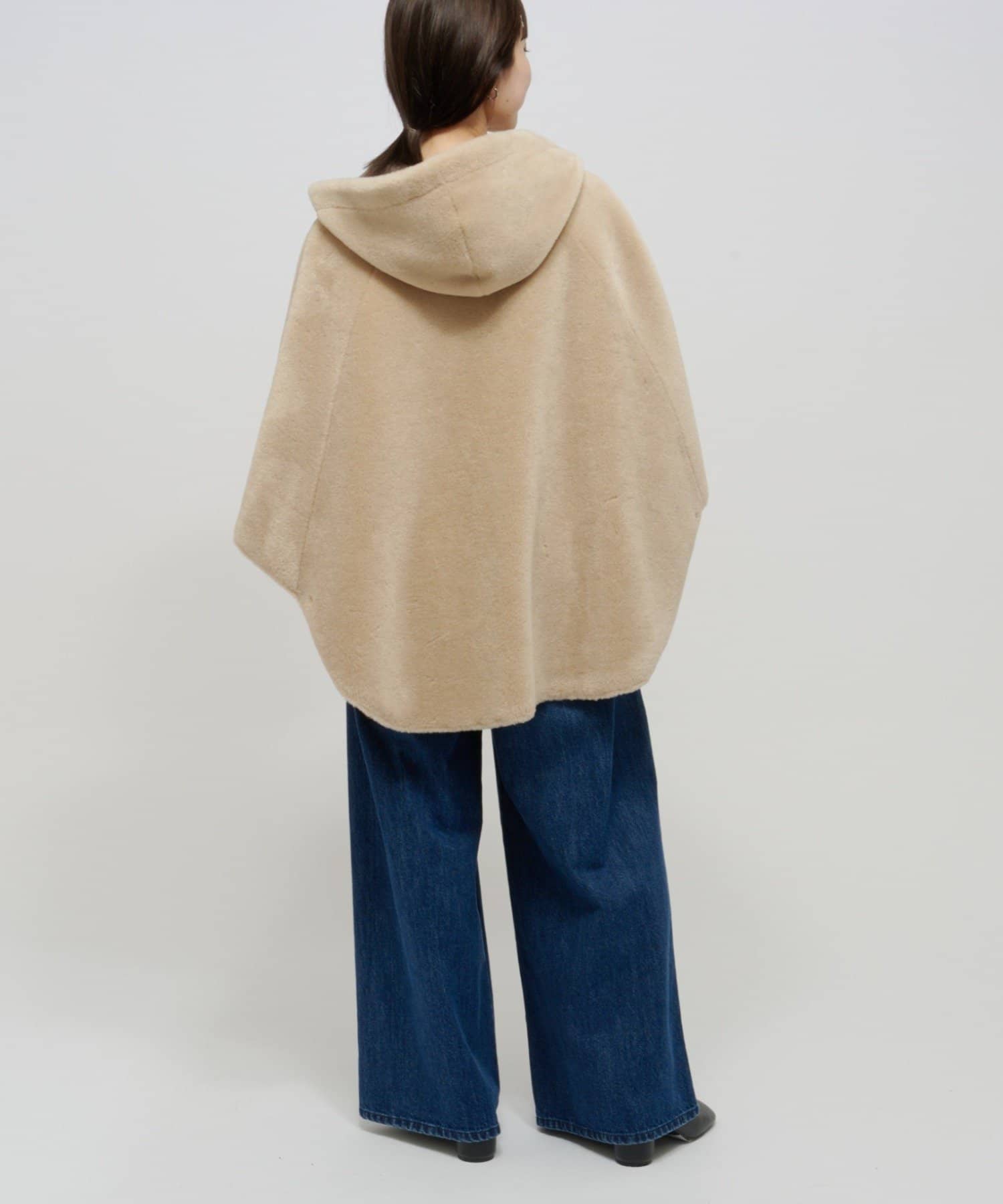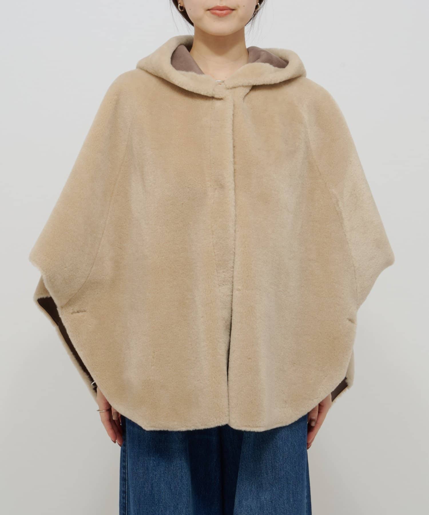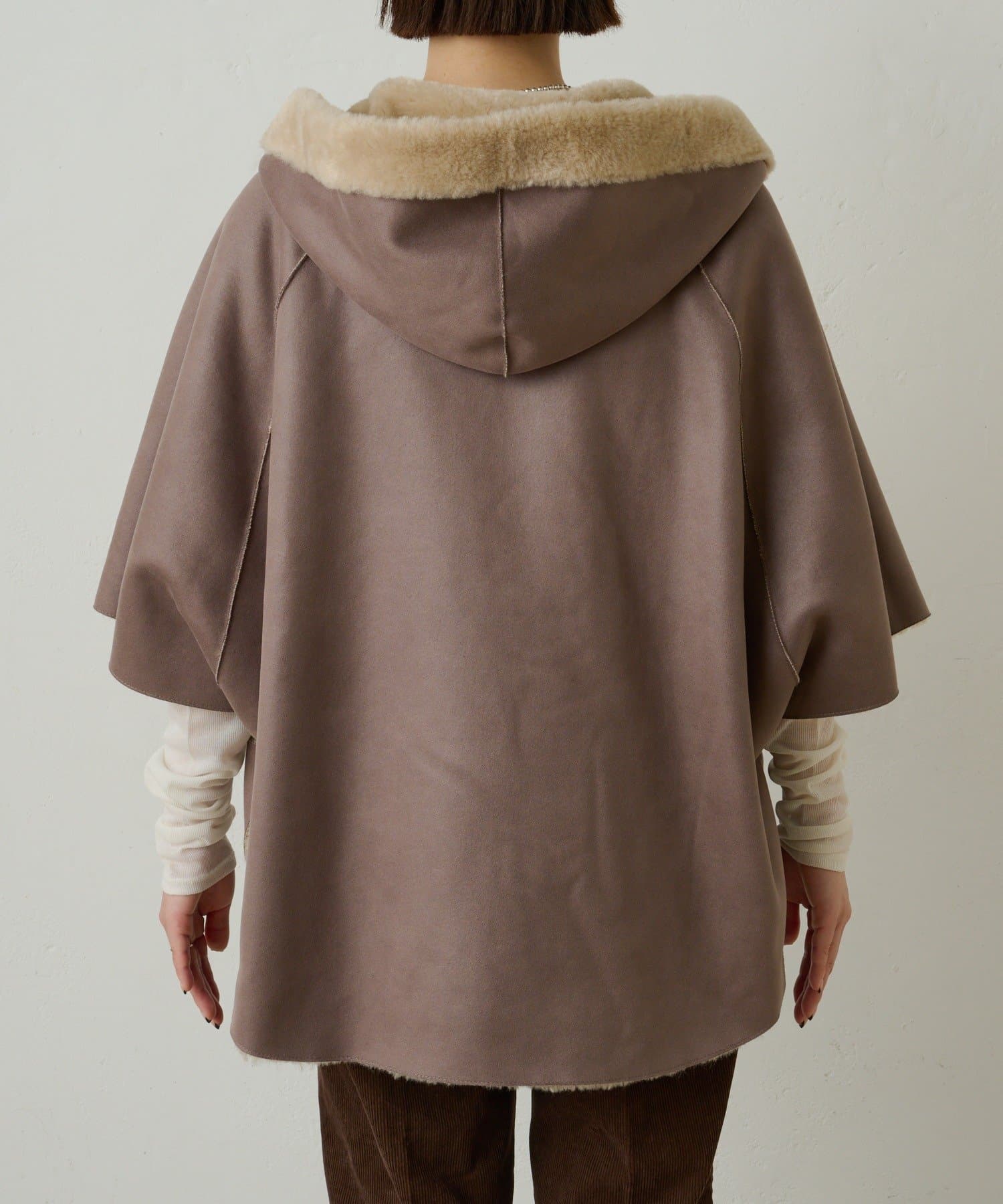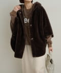 【Omekashi】ショートファーボンディングポンチョ