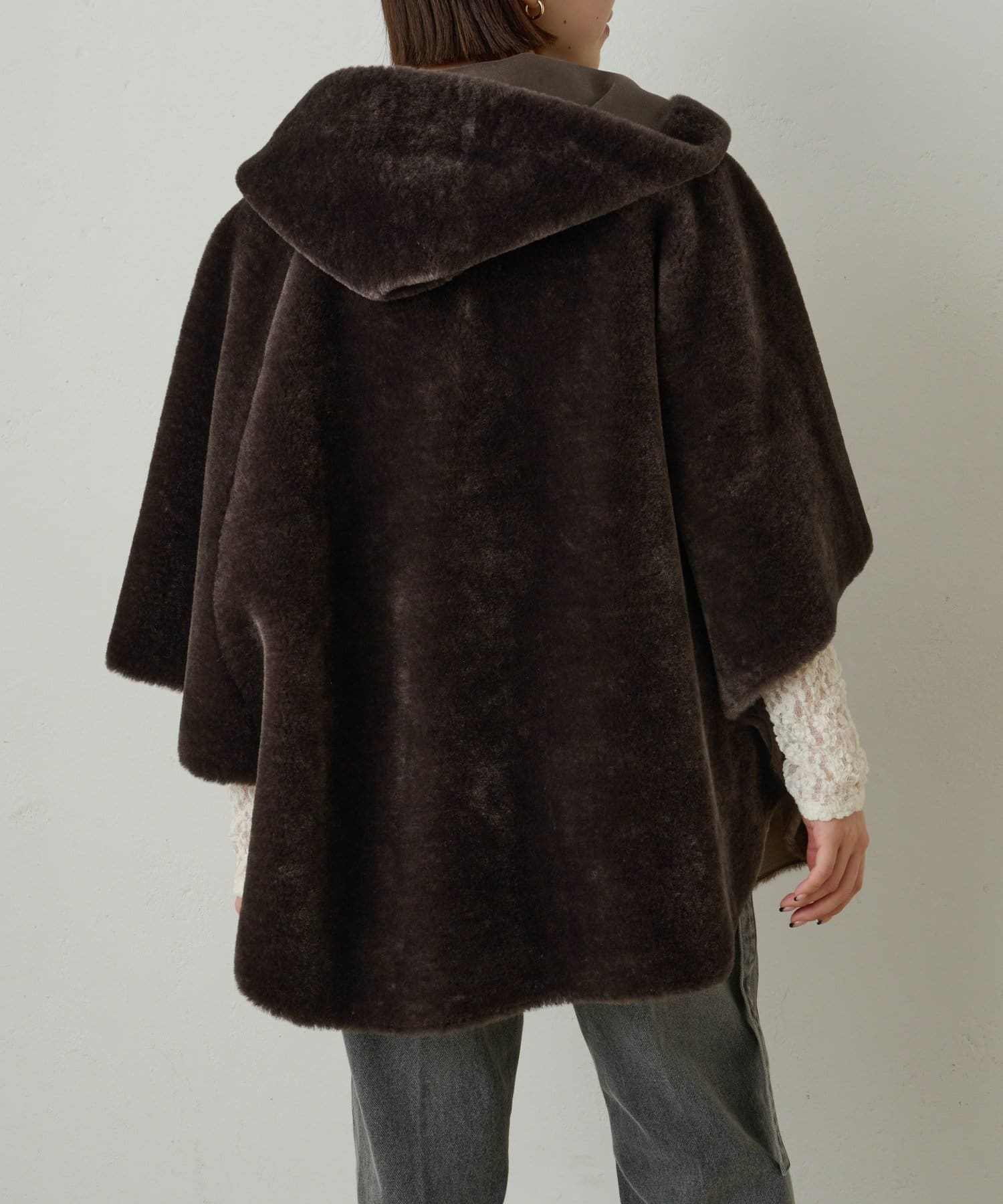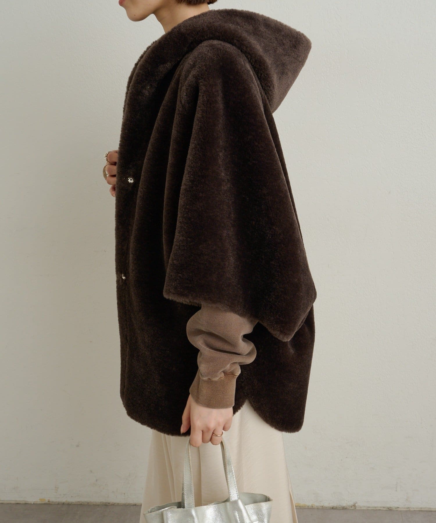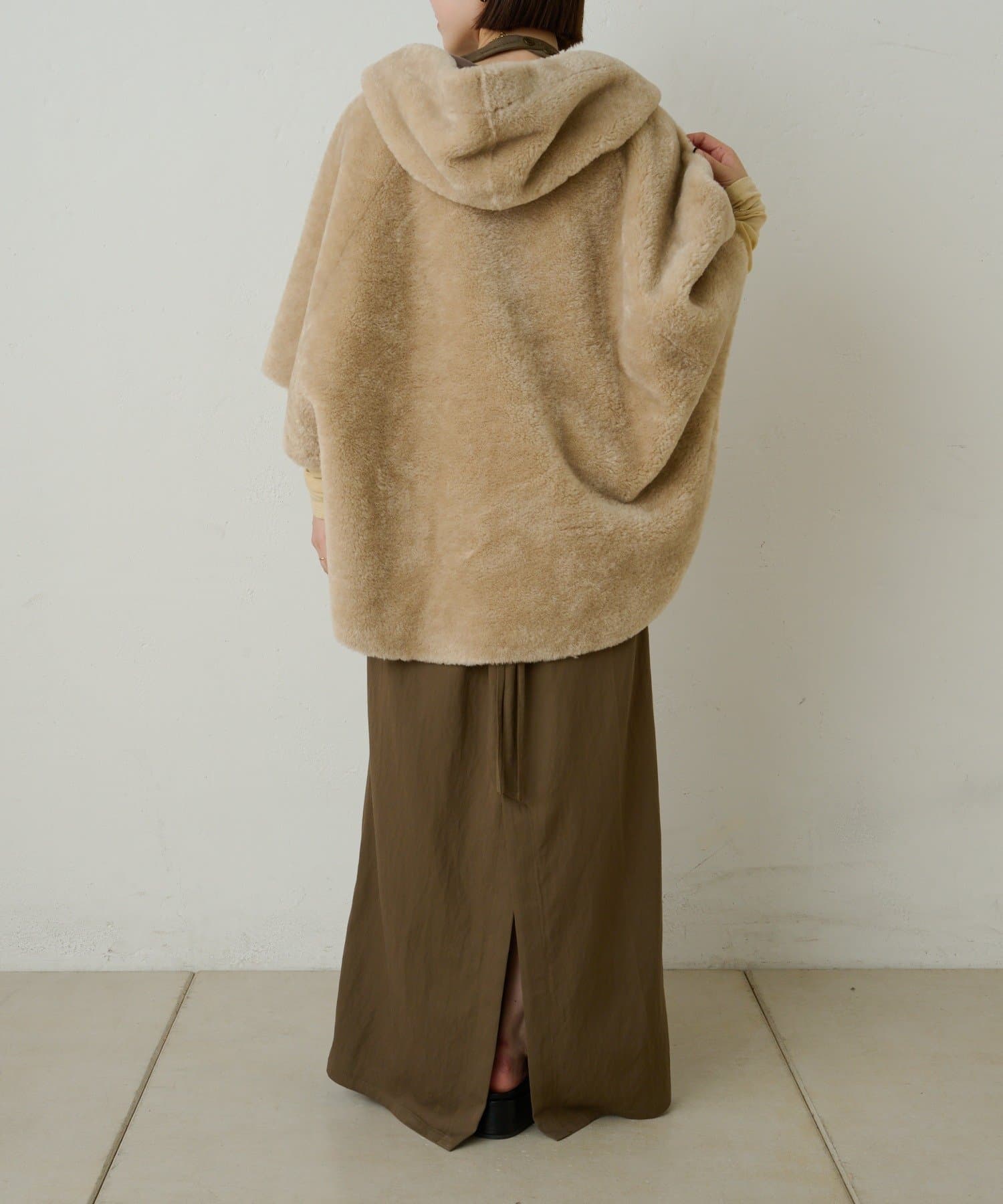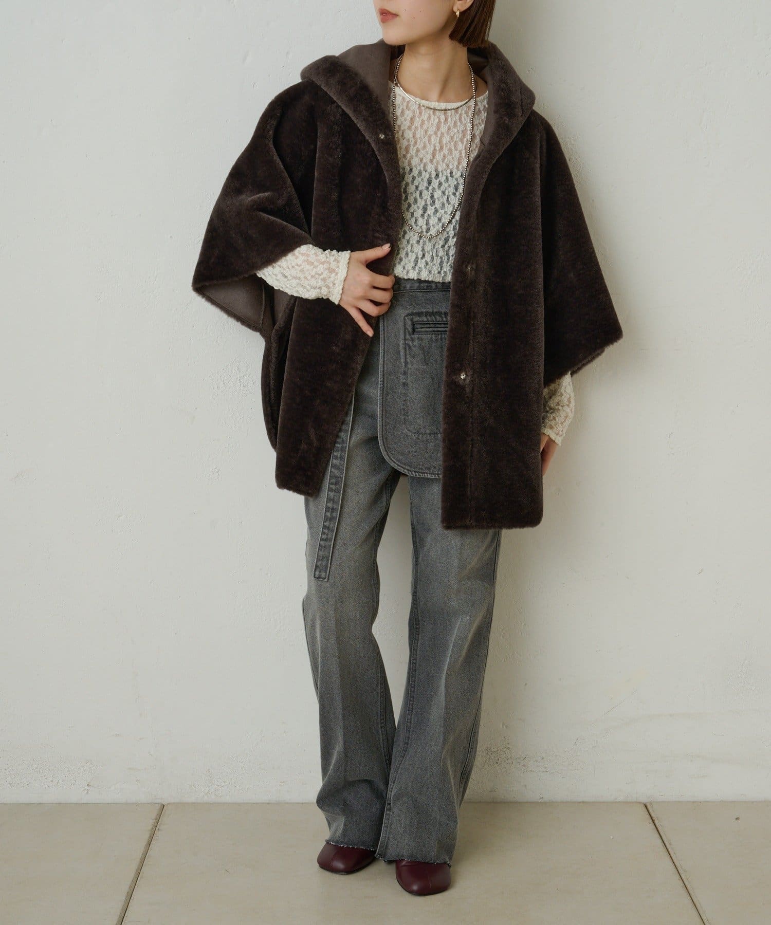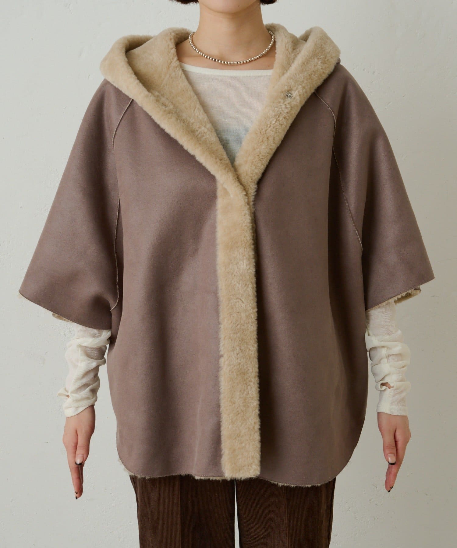 【Omekashi】ショートファーボンディングポンチョ
