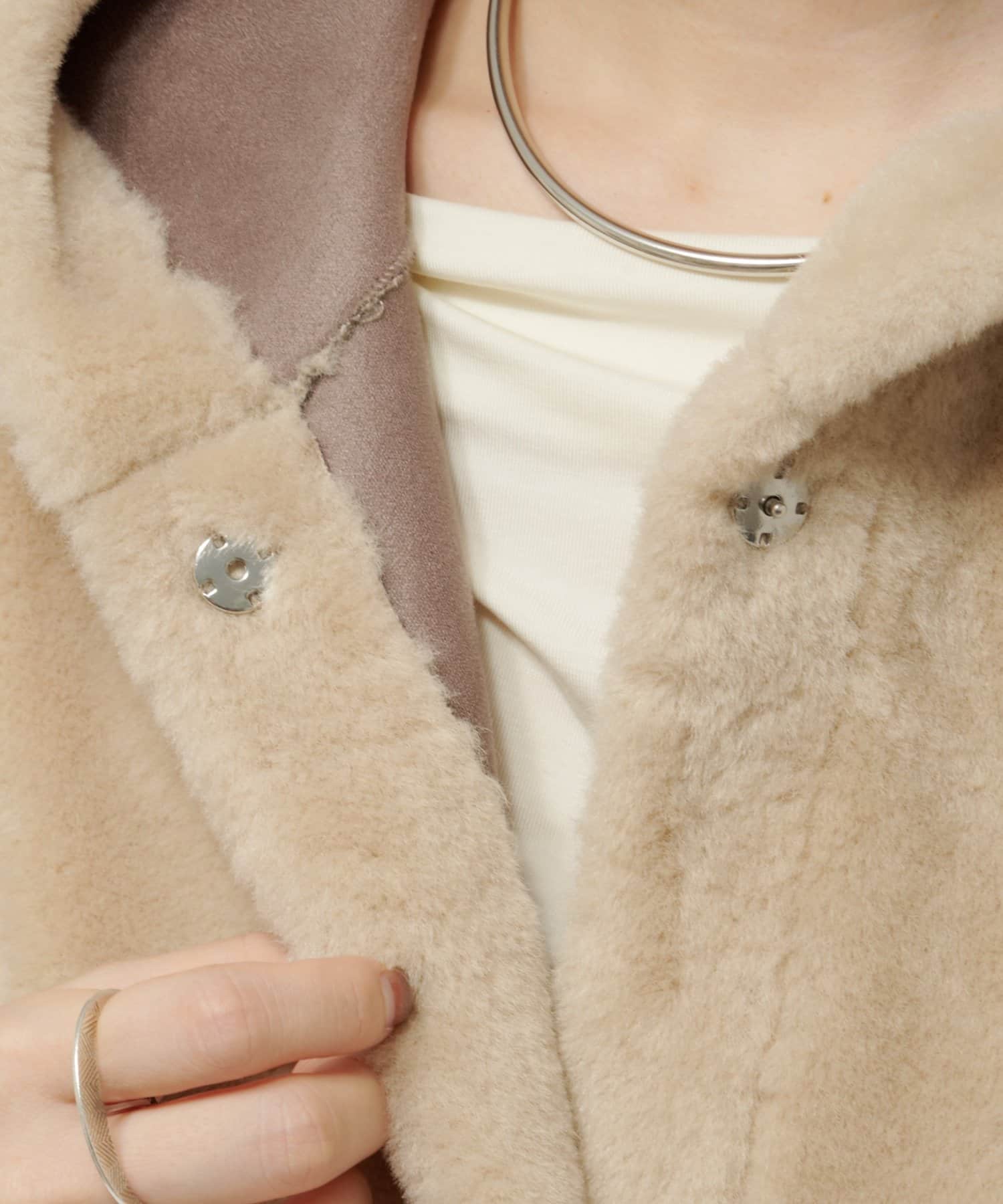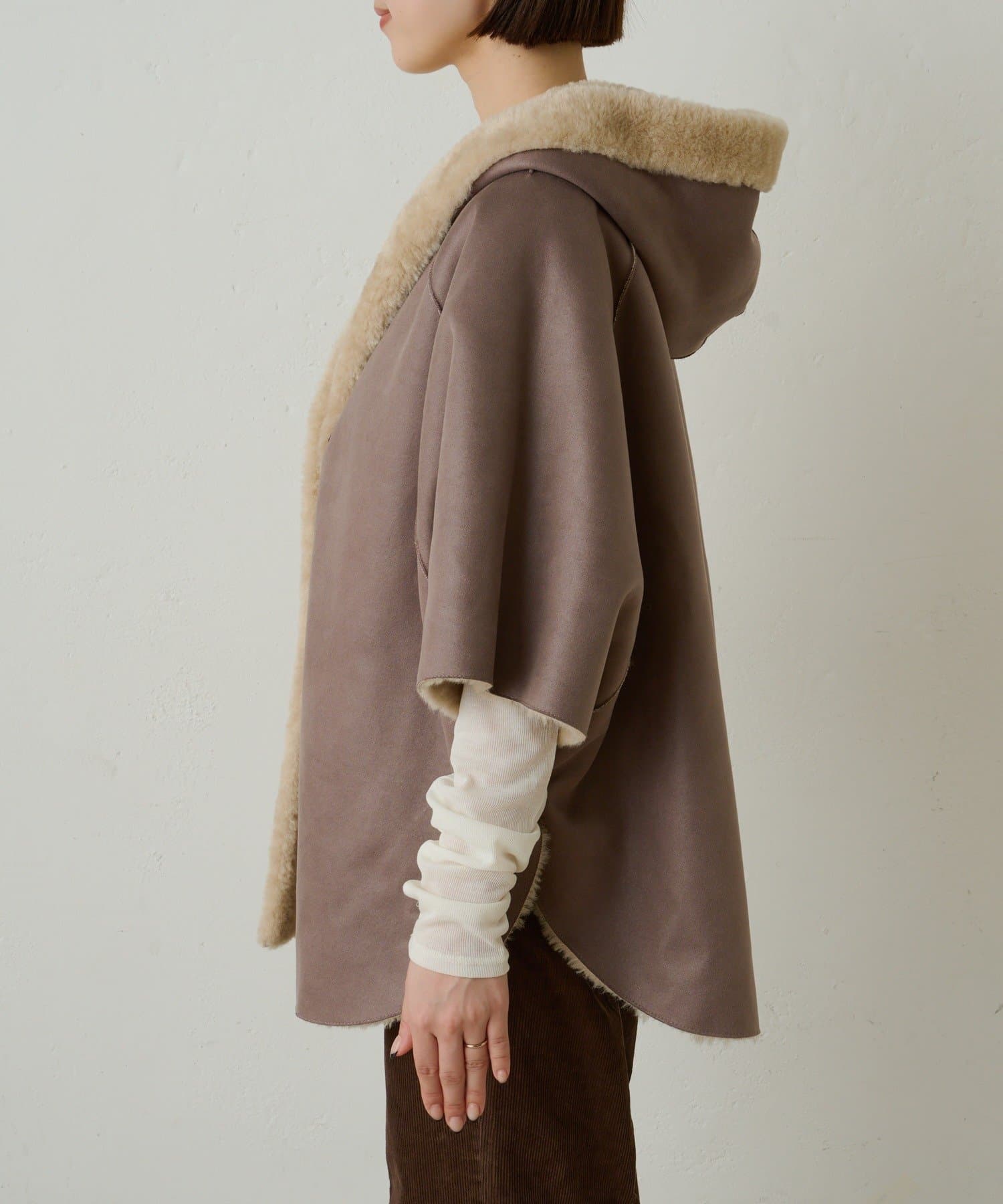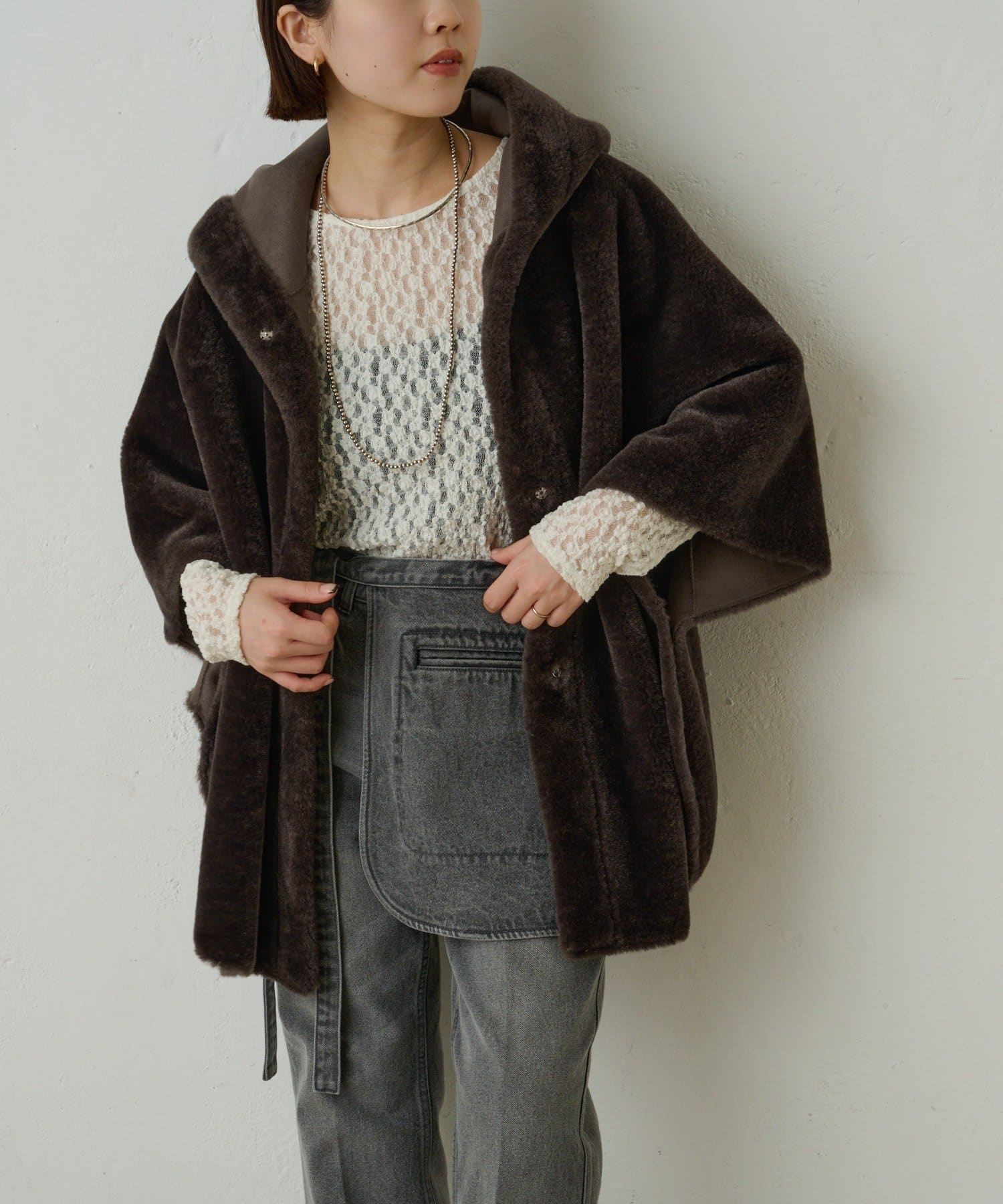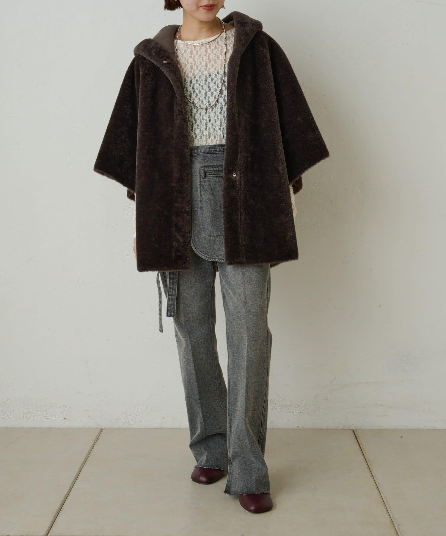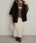 【Omekashi】ショートファーボンディングポンチョ