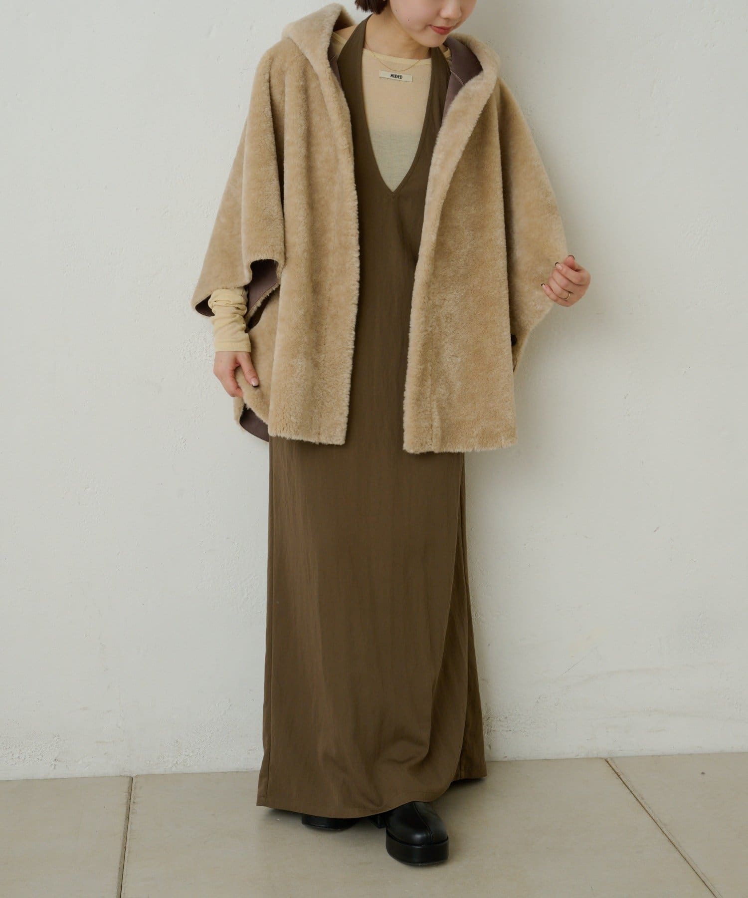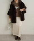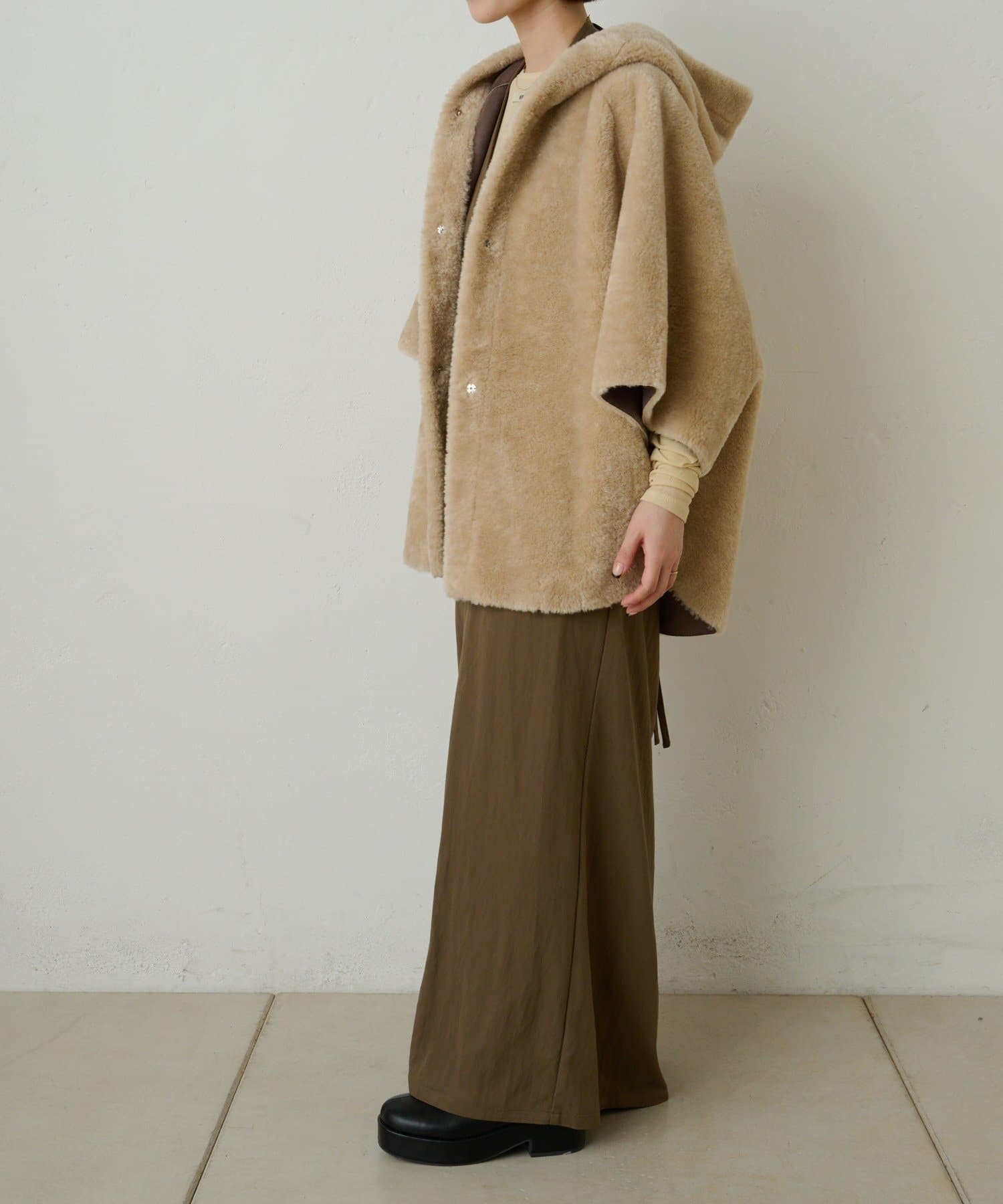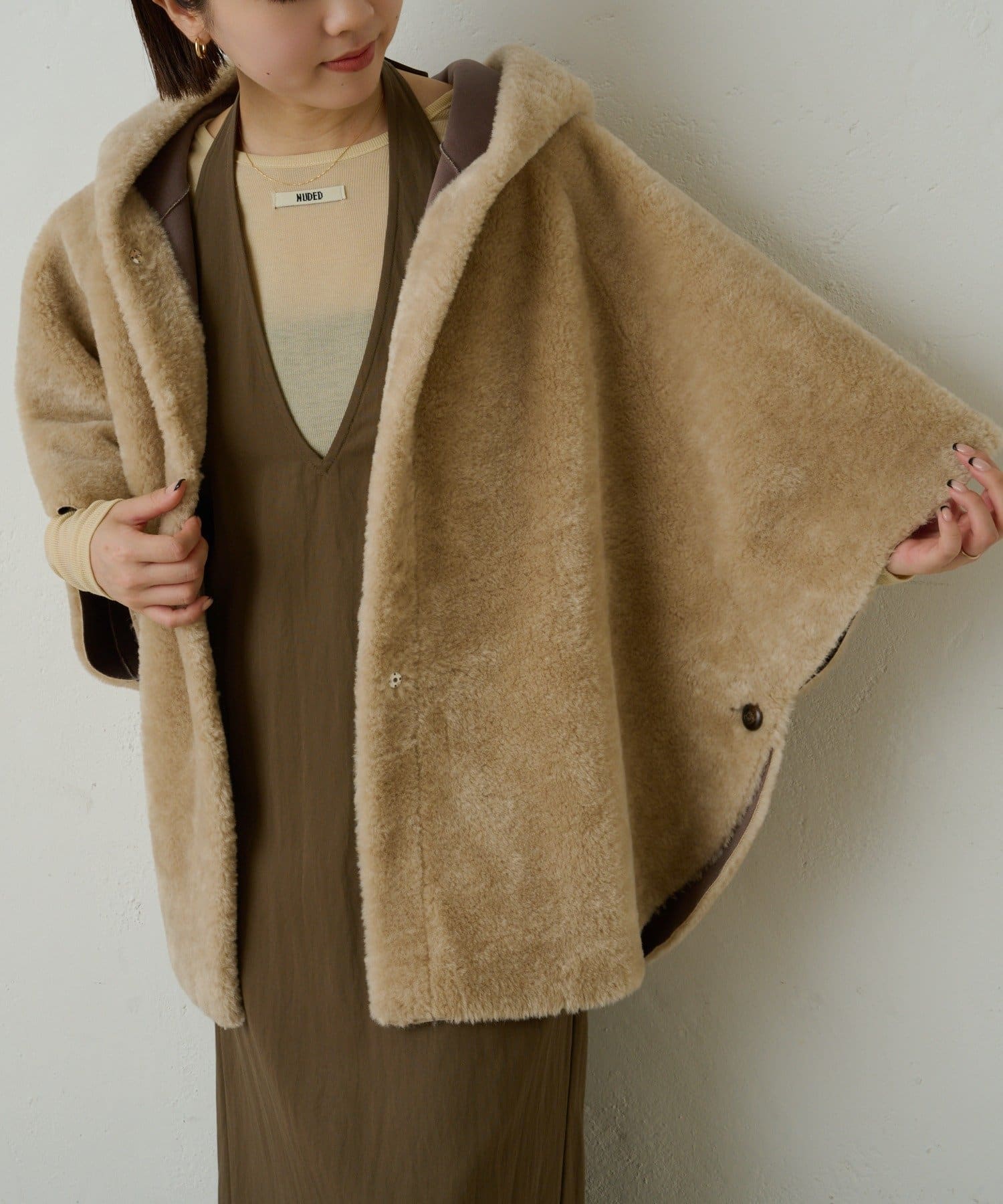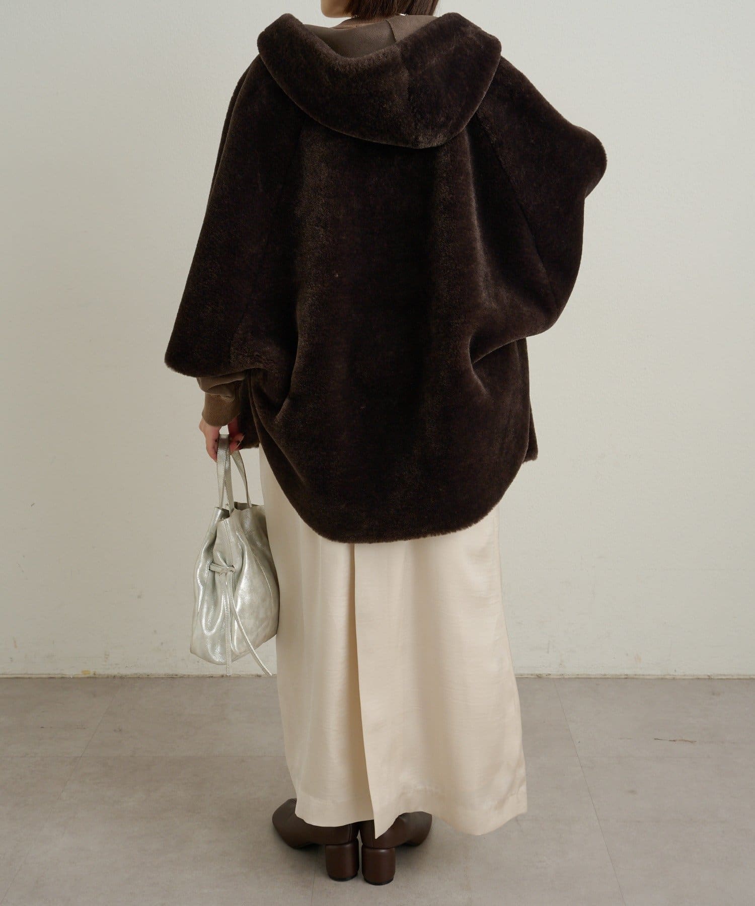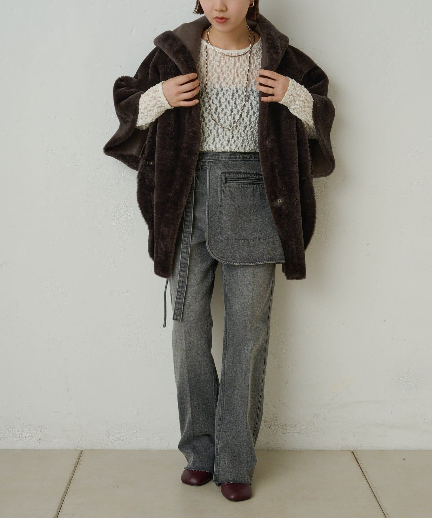 【Omekashi】ショートファーボンディングポンチョ