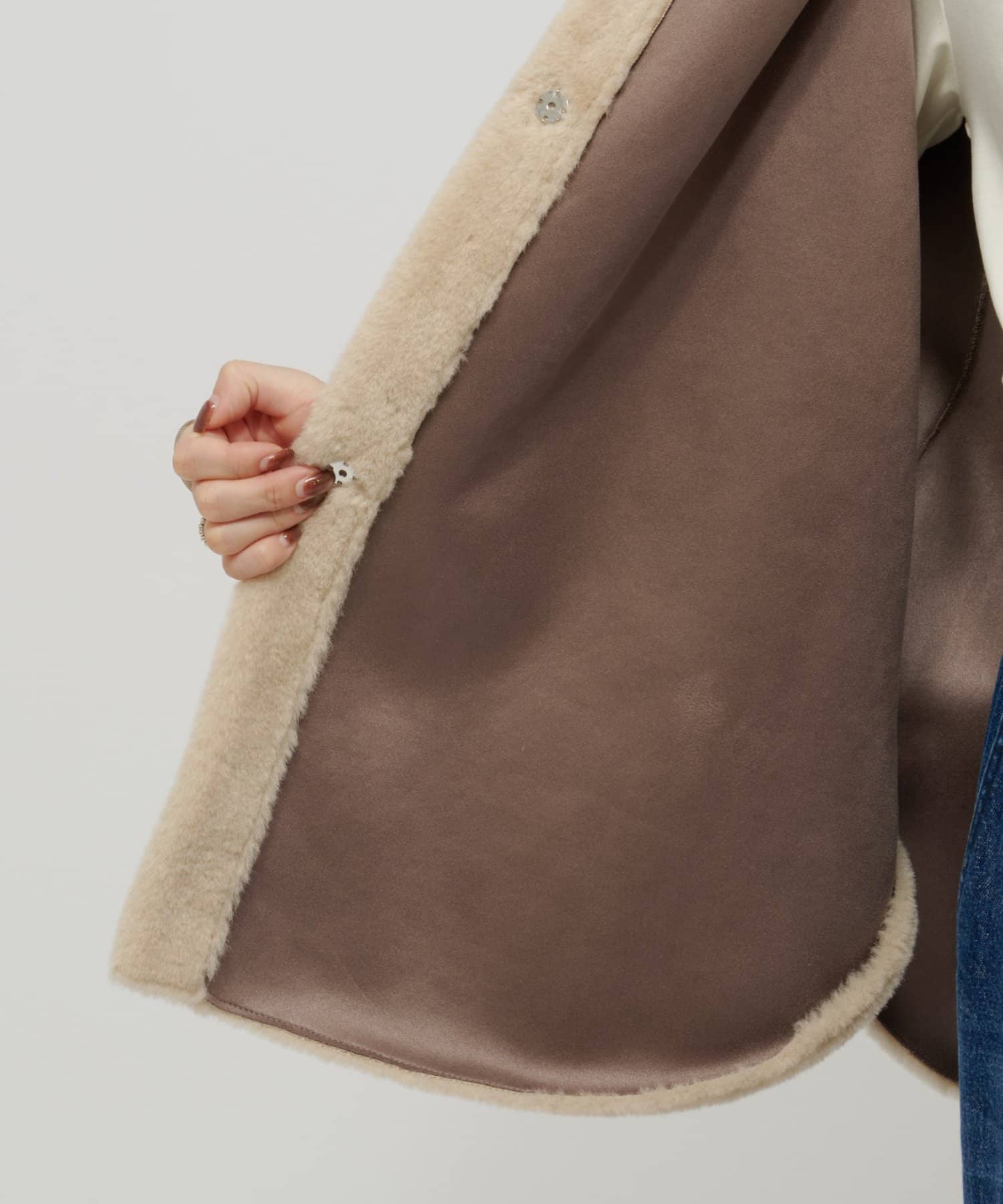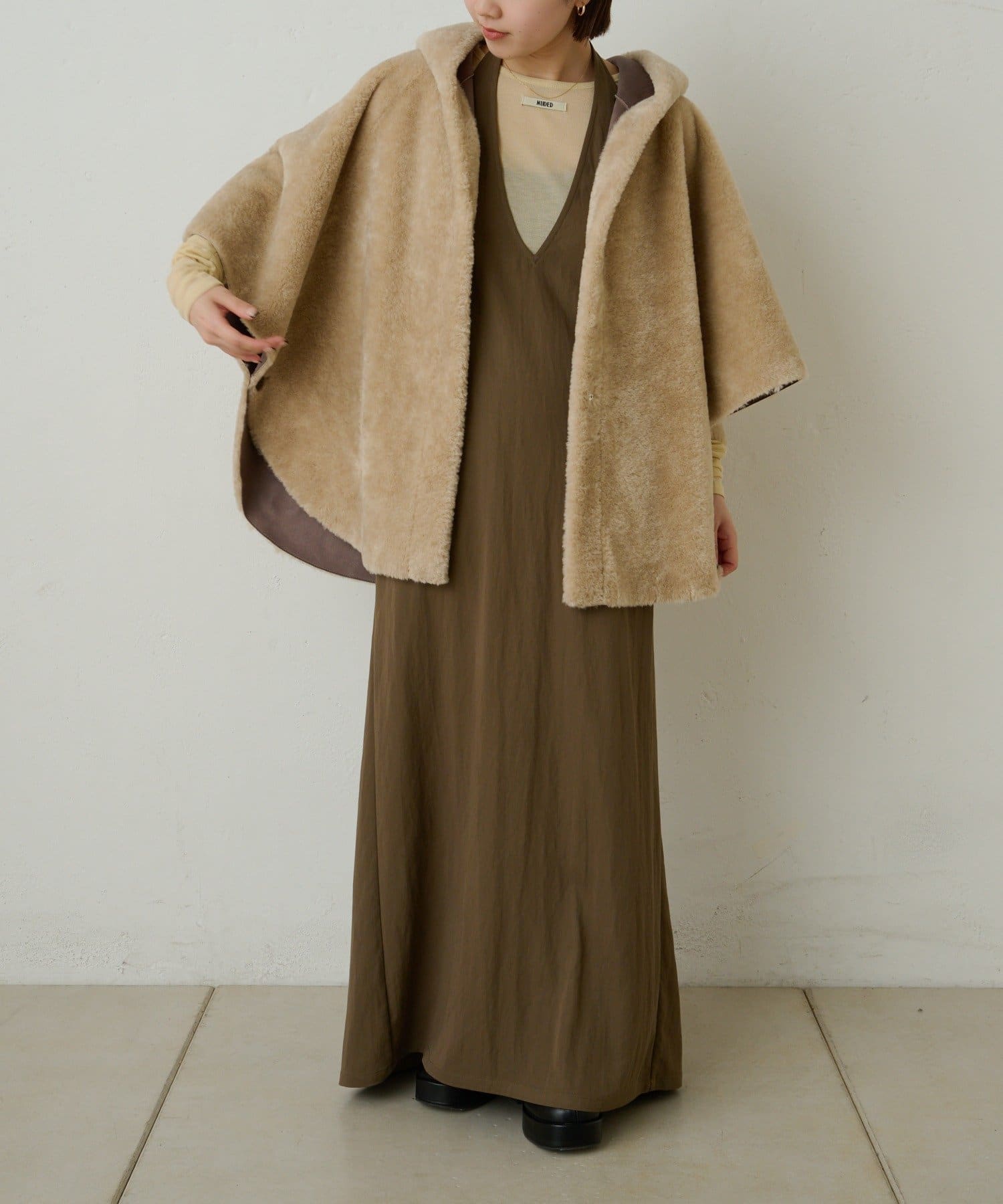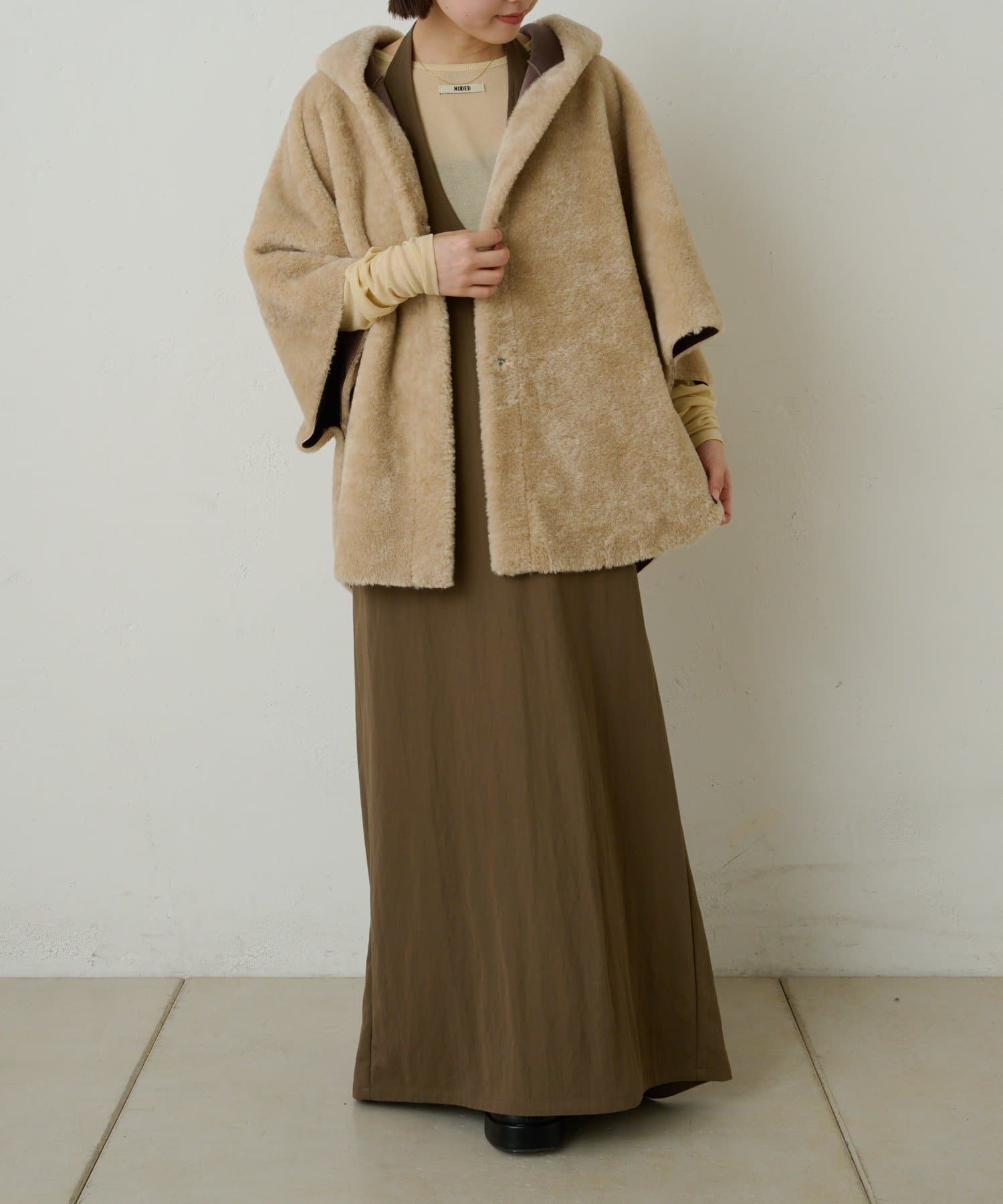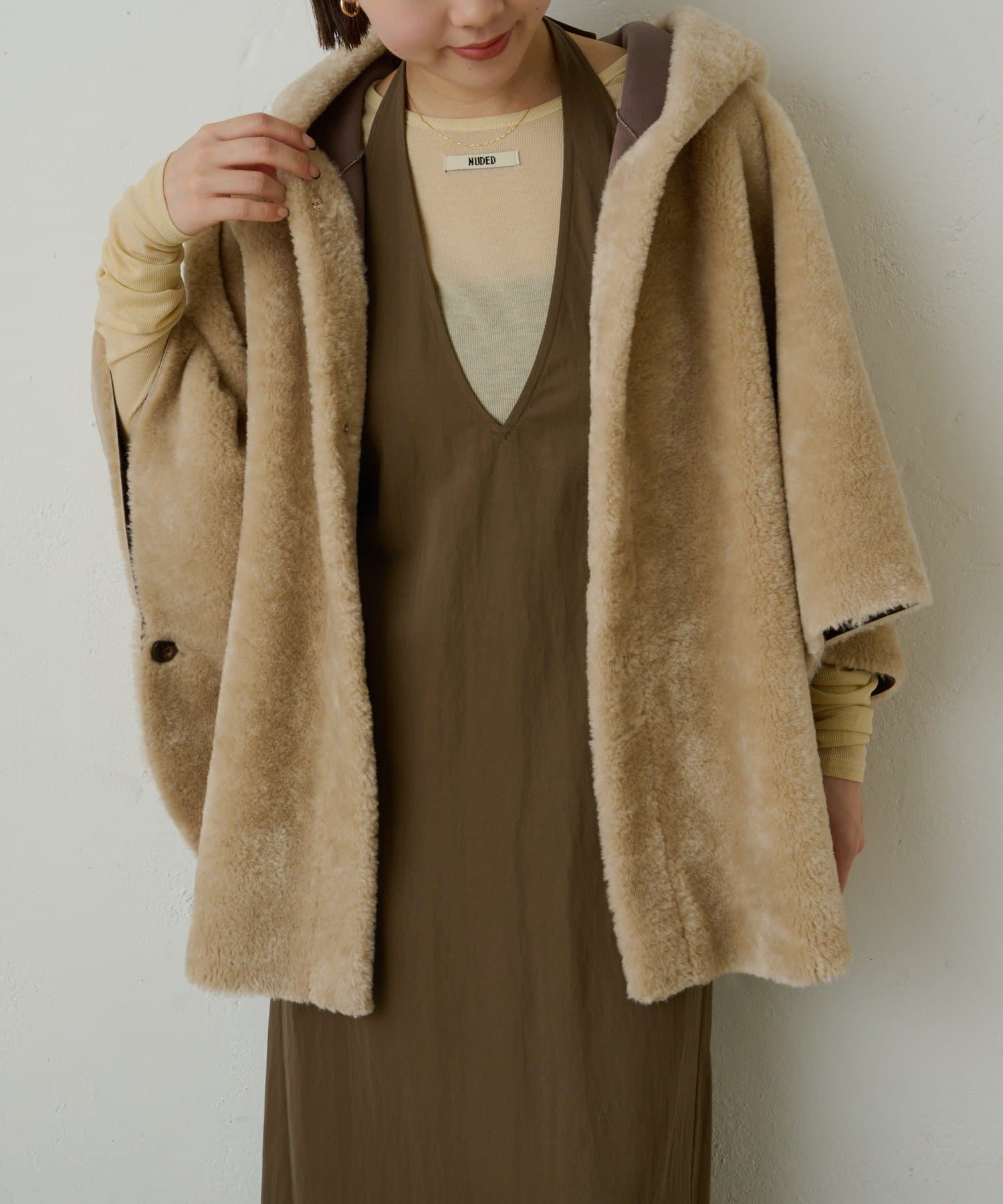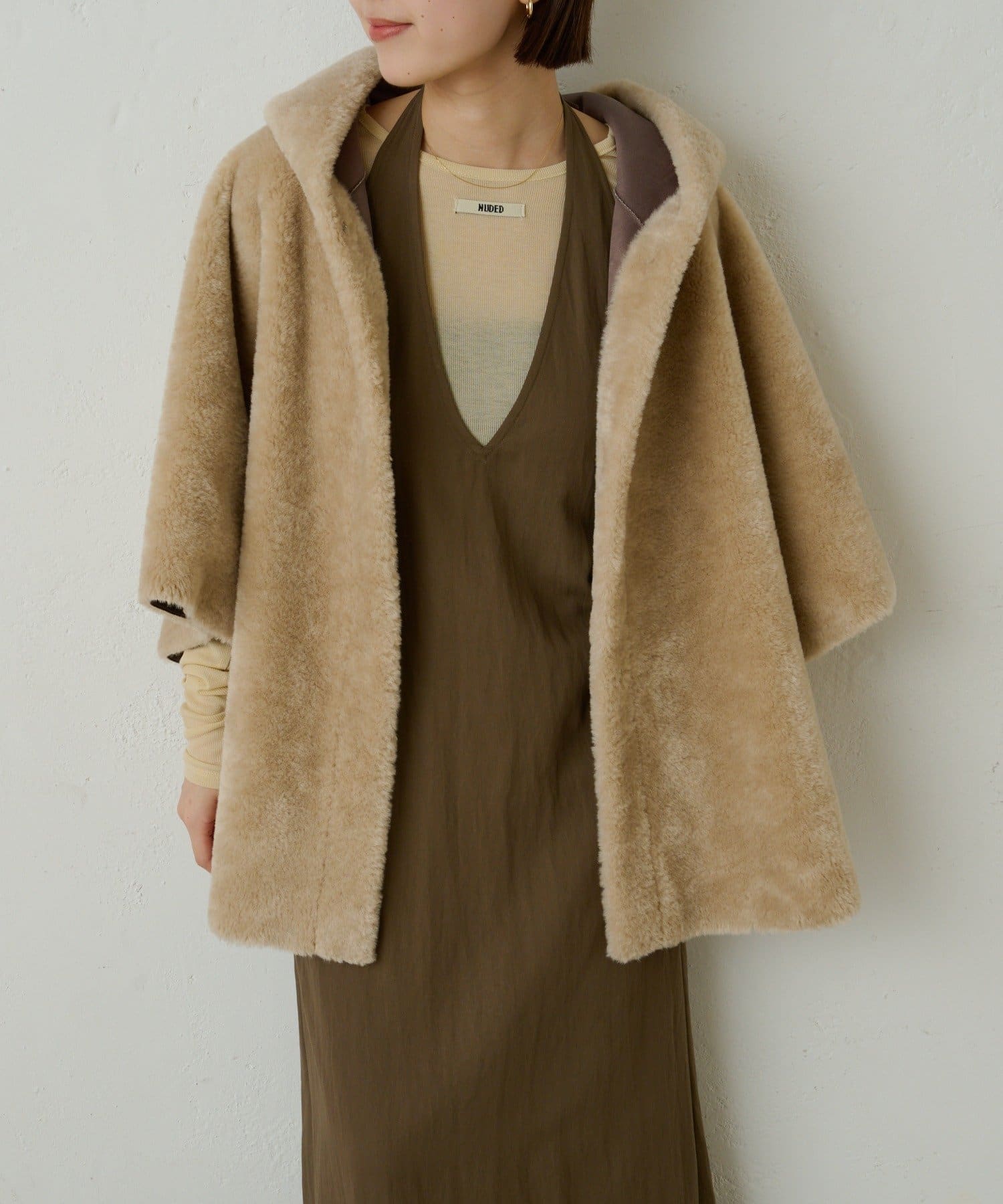 【Omekashi】ショートファーボンディングポンチョ