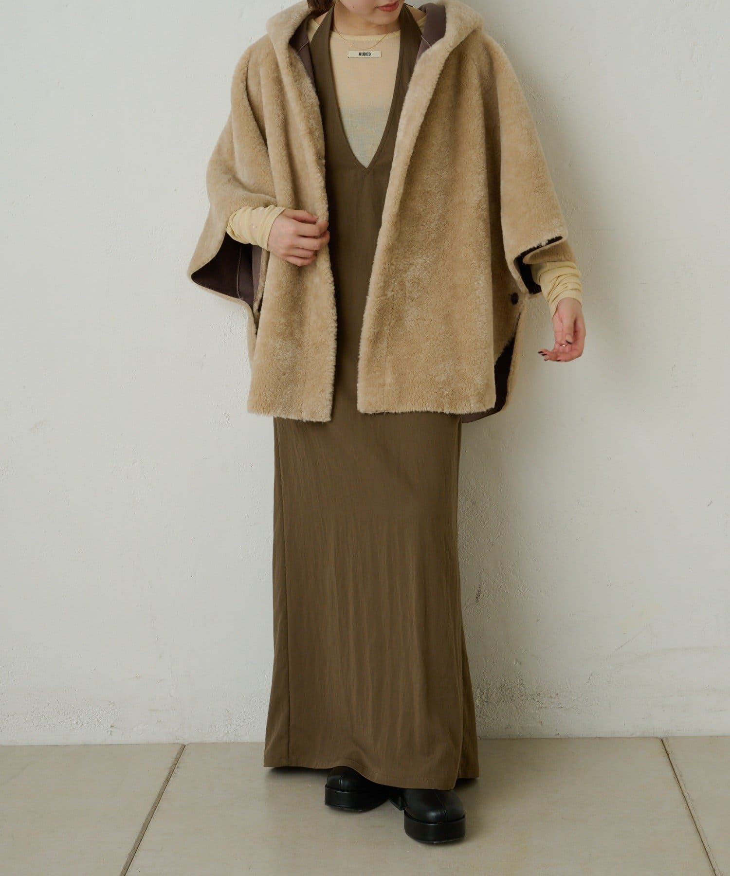 ・ポンチョのデザインが特徴的で、着るだけでこなれた印象を与えてくれます。