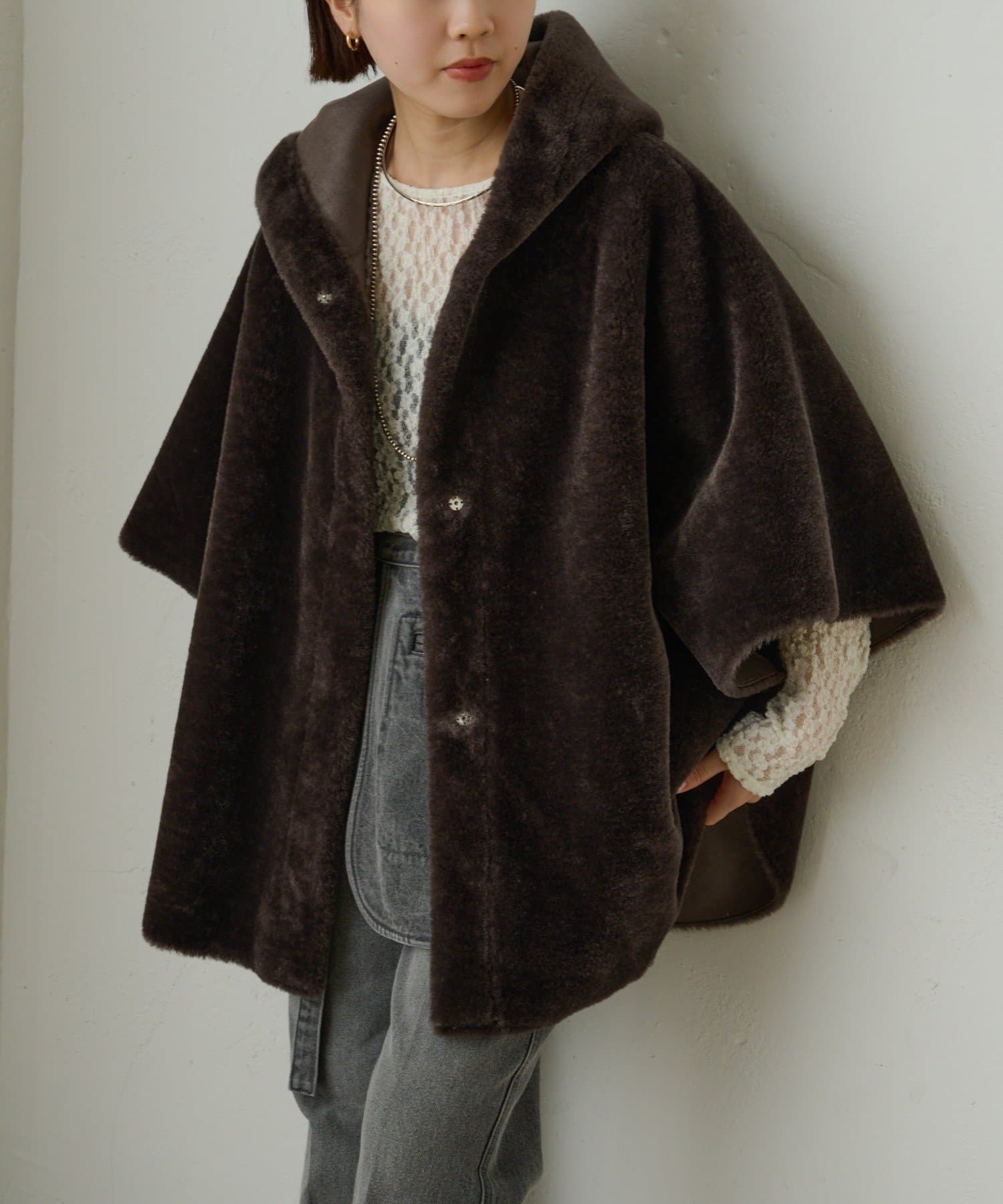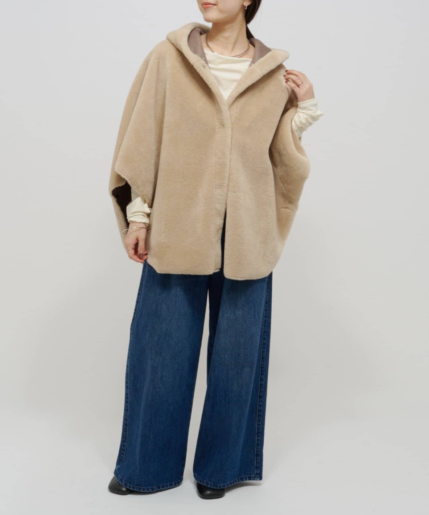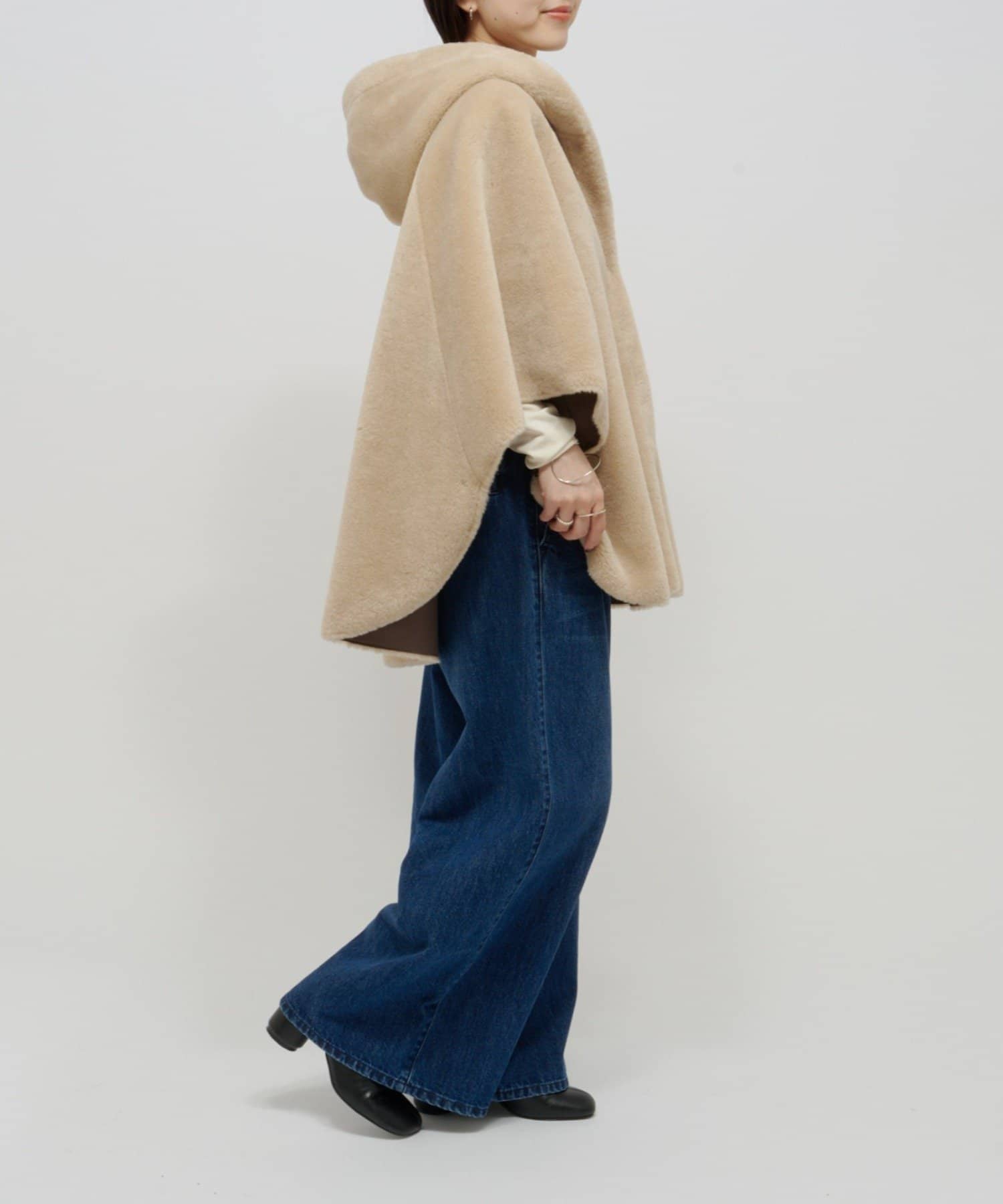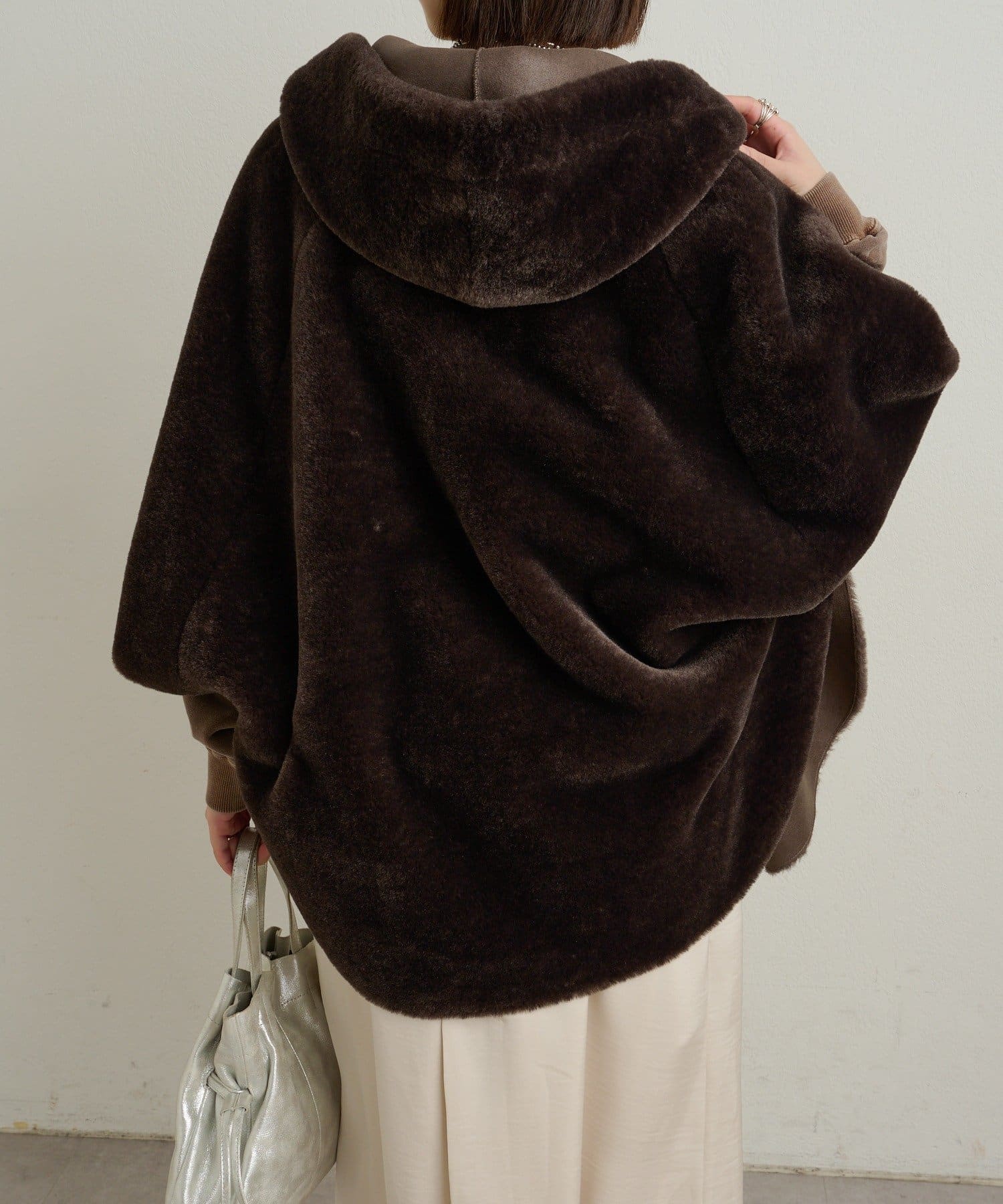 ファー素材が大人可愛いショートファーボンディングポンチョ
