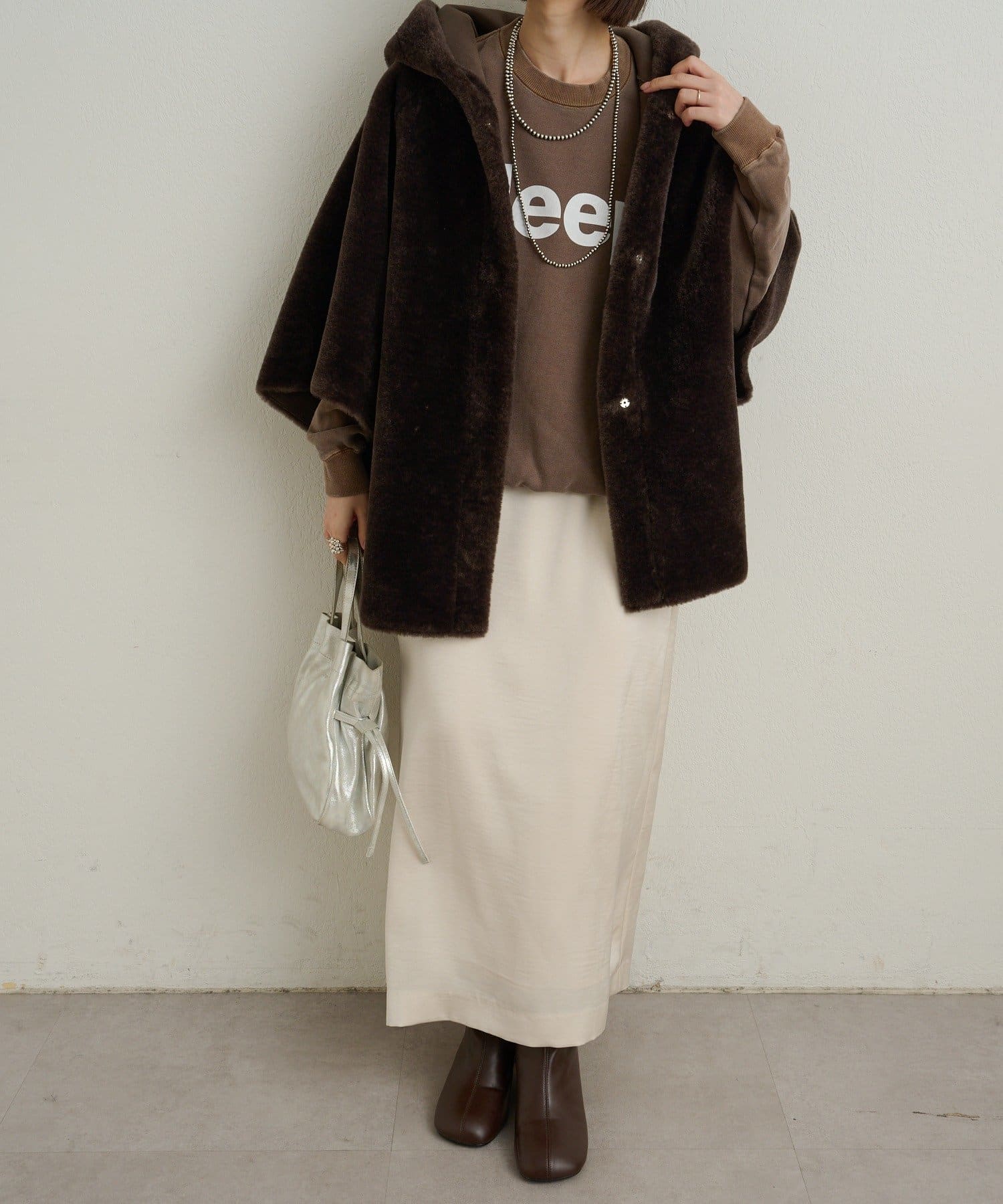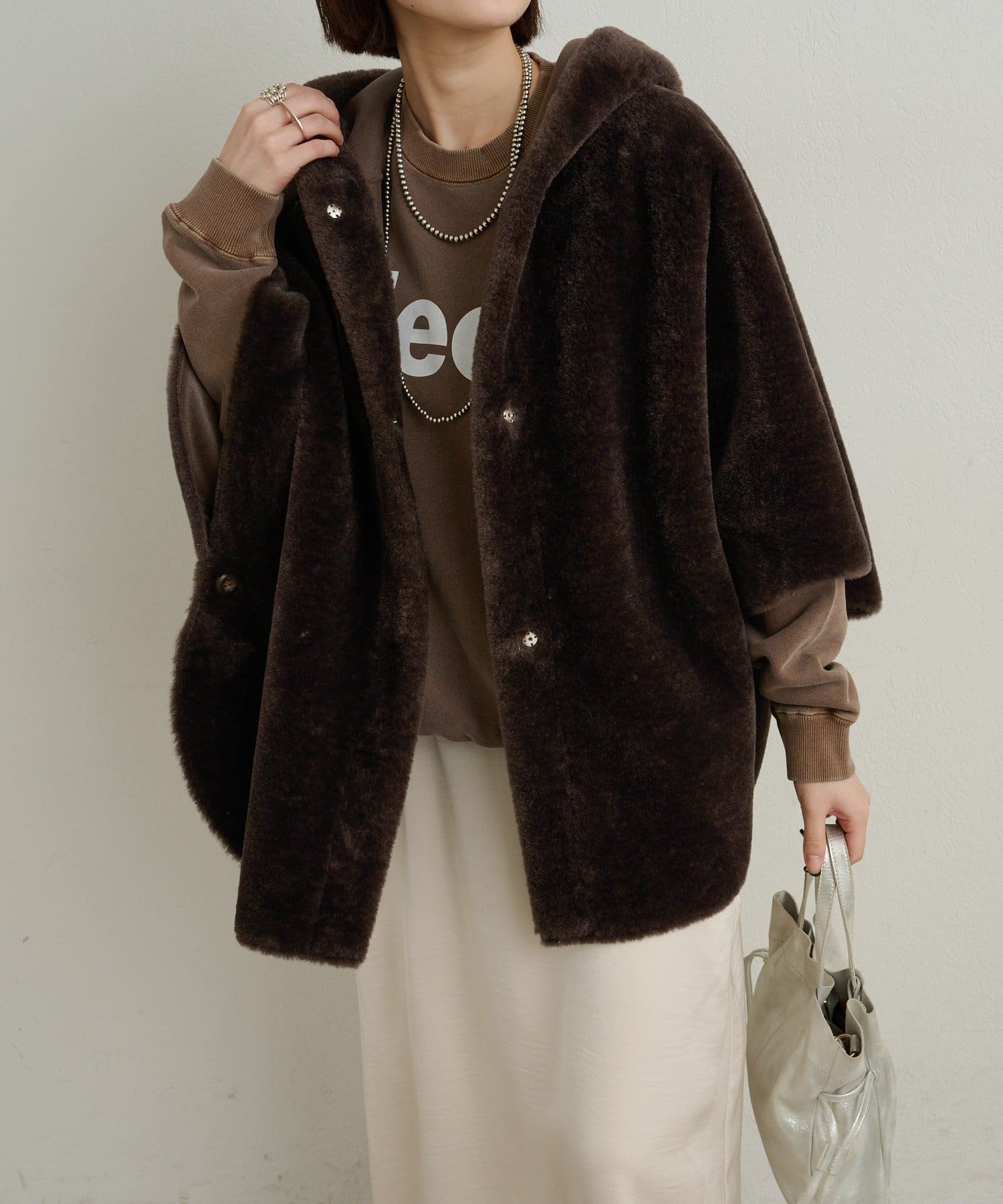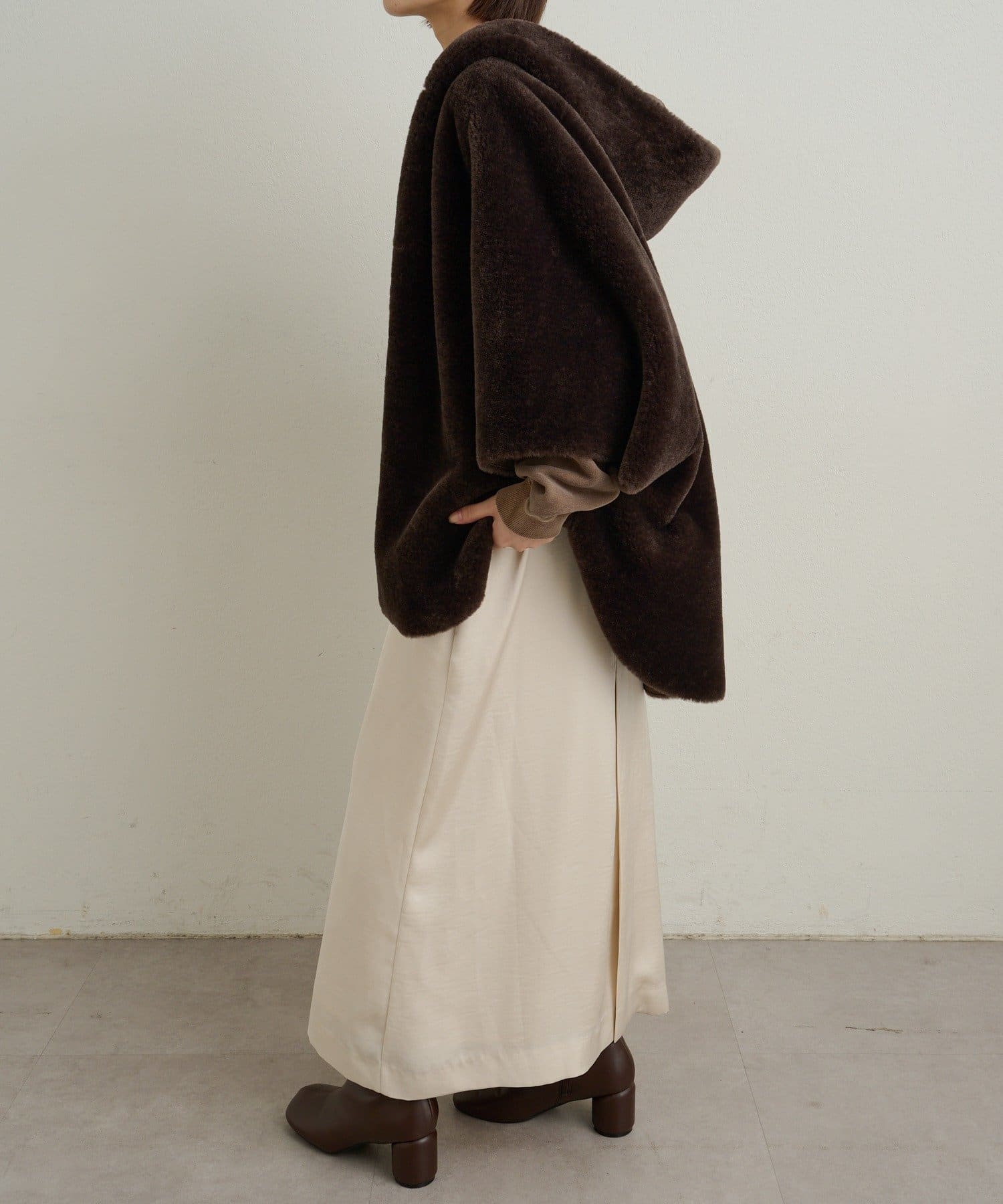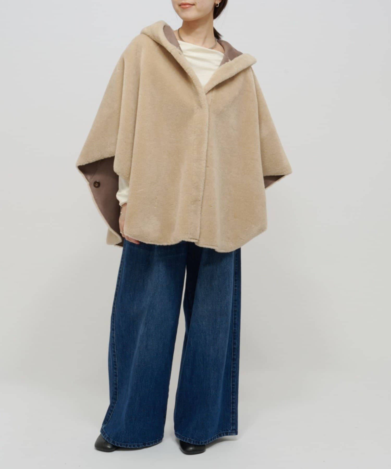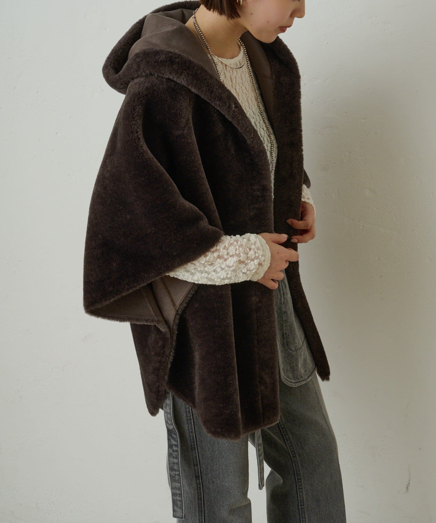 ファー素材が大人可愛いショートファーボンディングポンチョ