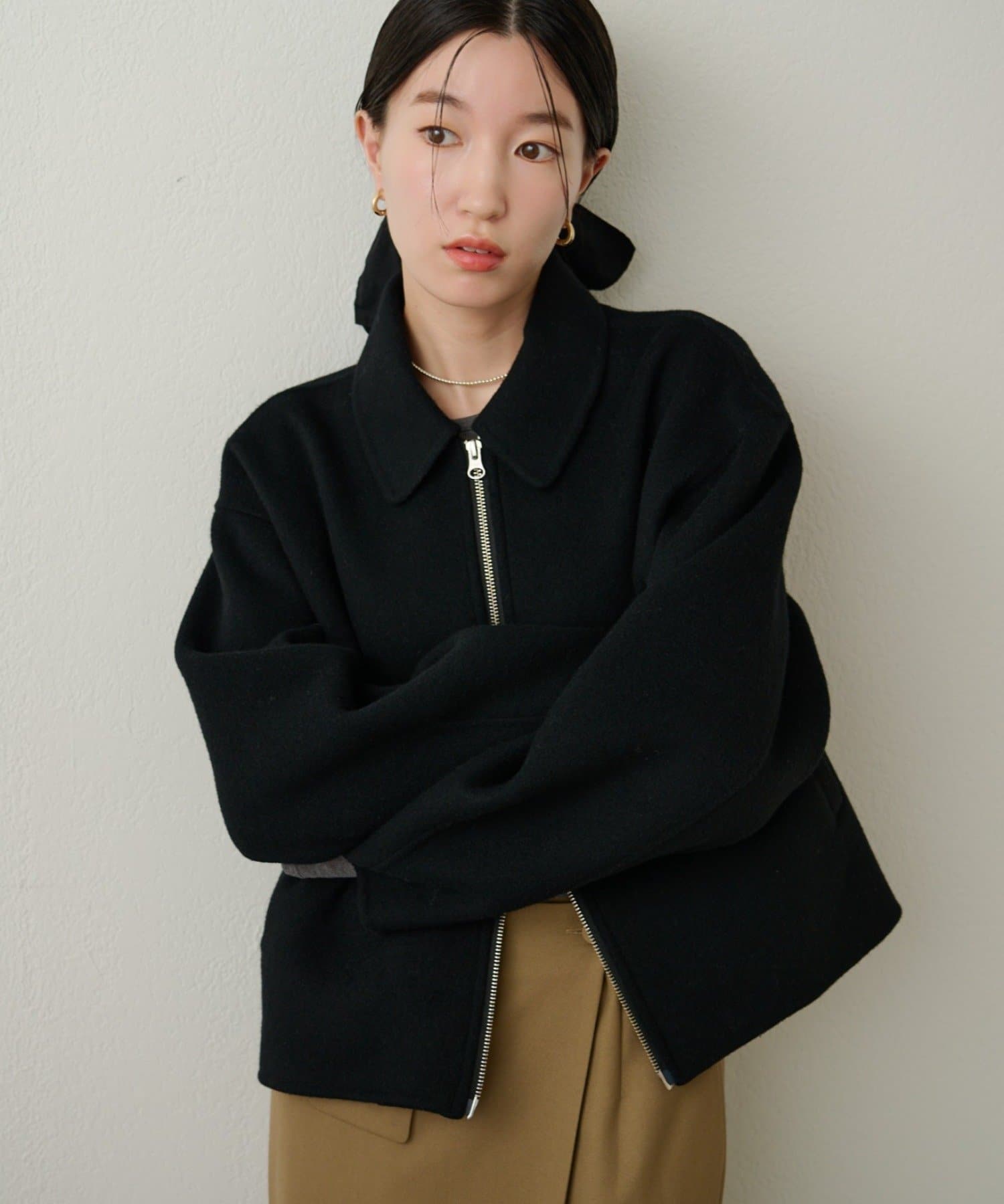 ・ファスナーの閉め具合を上下調節して、スタイリングに抜け感を出すのがおすすめ◎