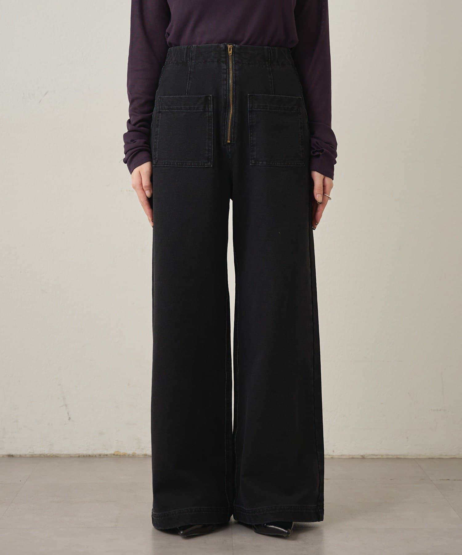 ・ゴールドのファスナーや前ポケットのディティールもポイント。