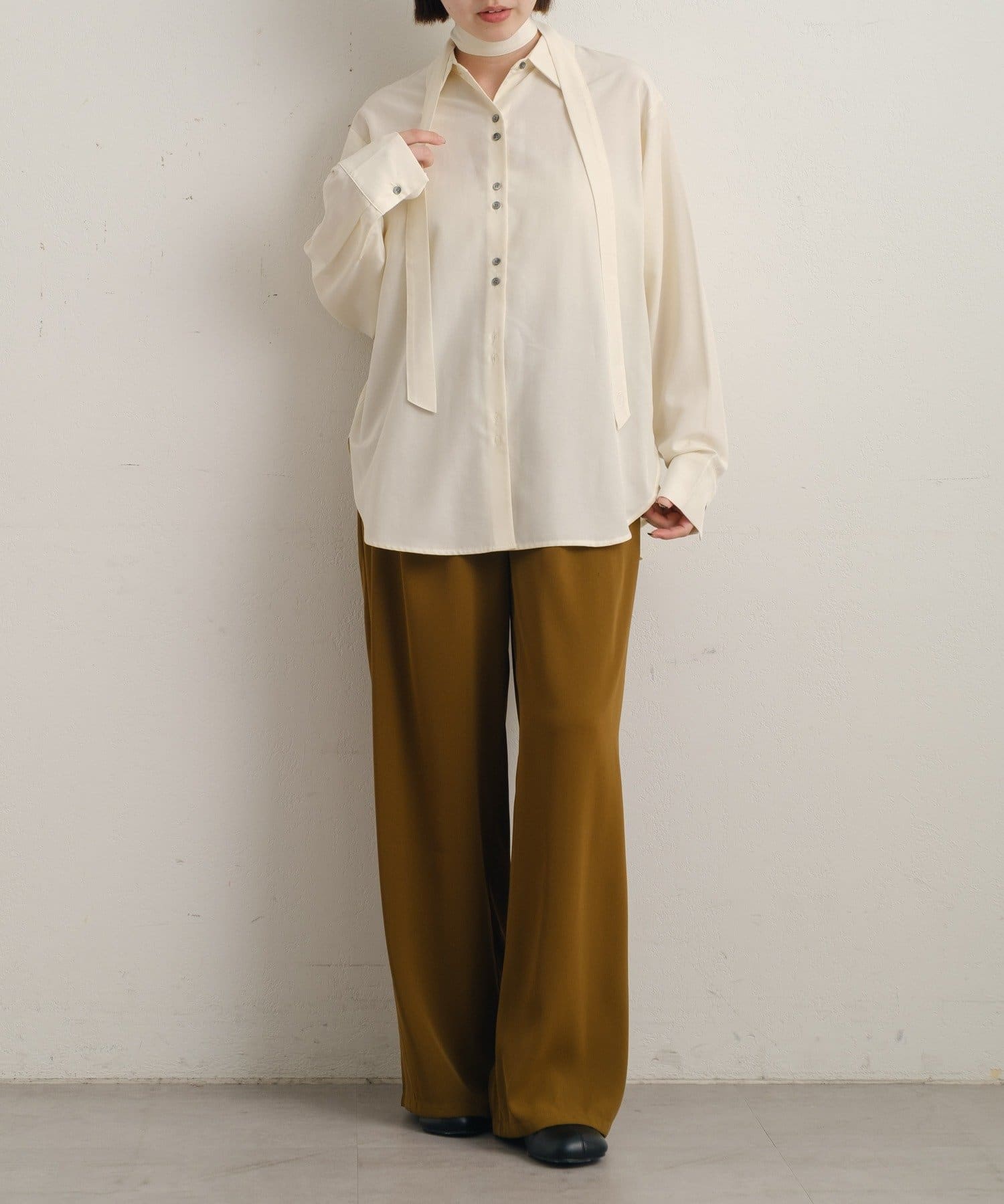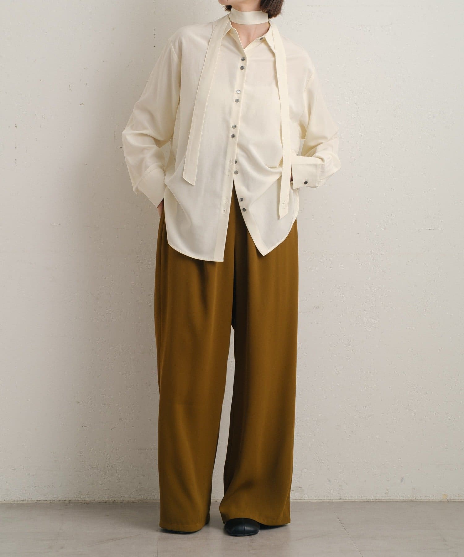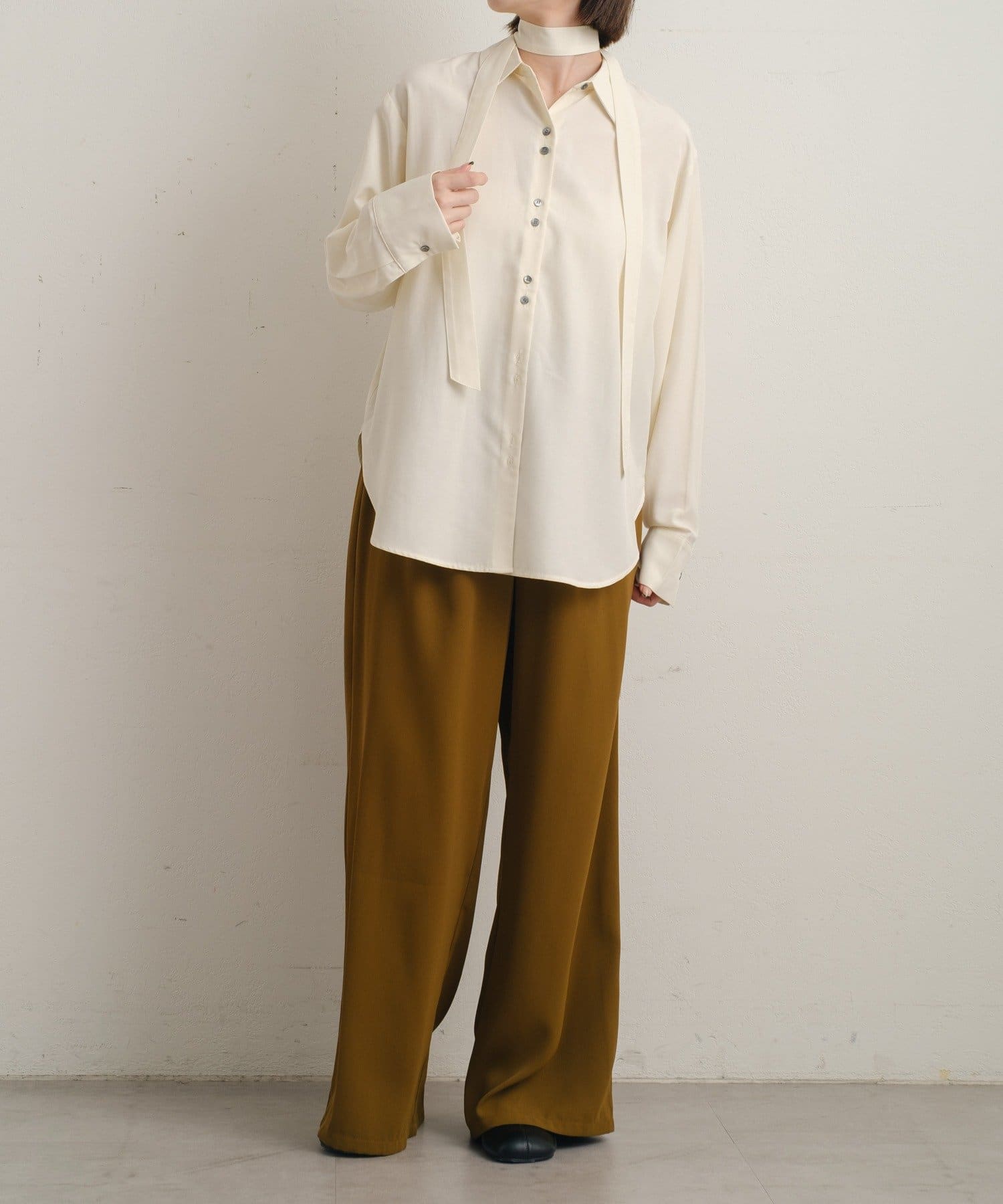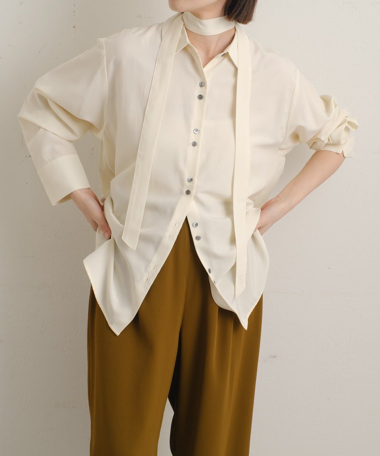 ・付属のチョーカーは、ベルトにしたり、ネクタイにしたり様々な着方ができるのでスタイリングの幅が広がる一着