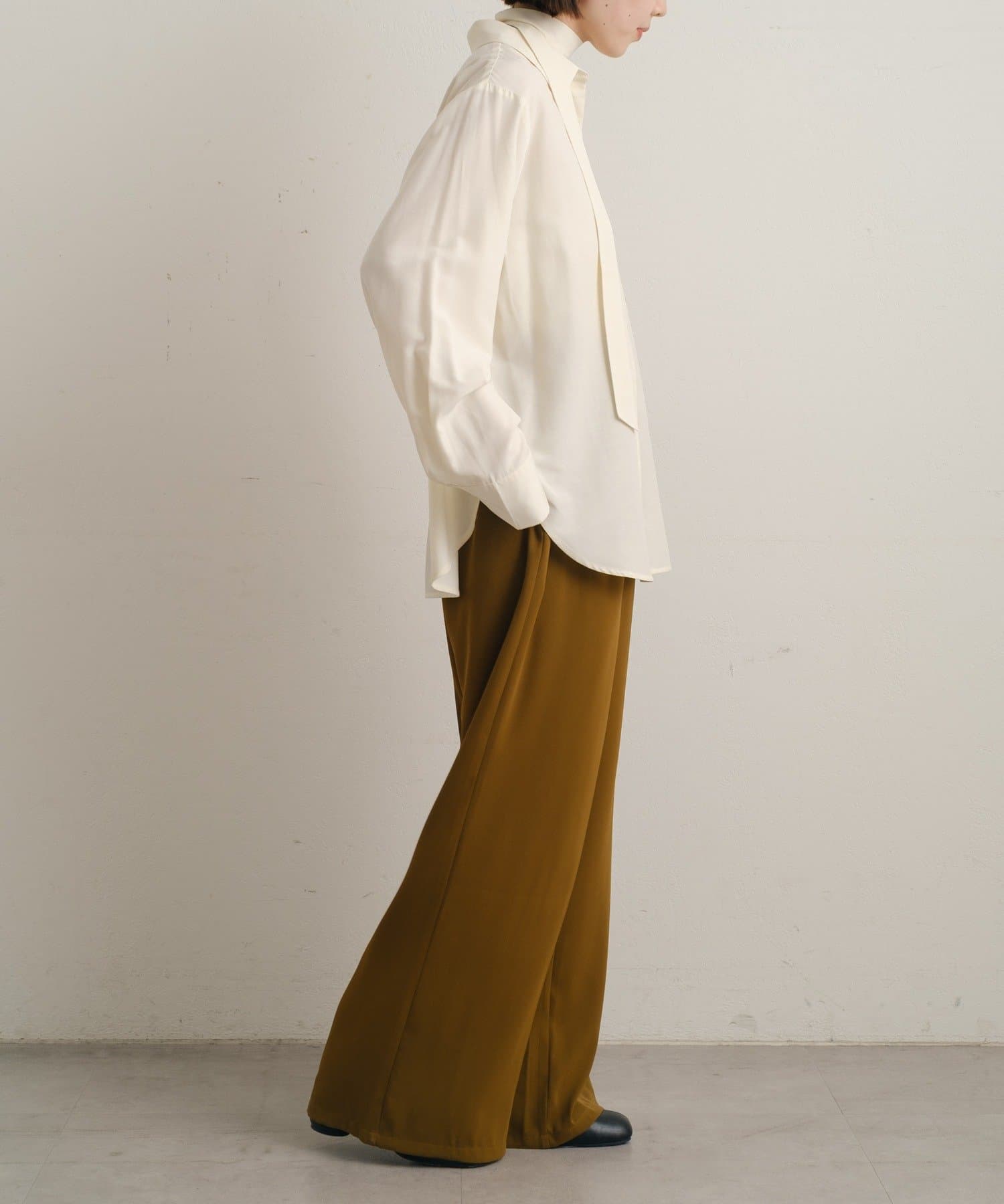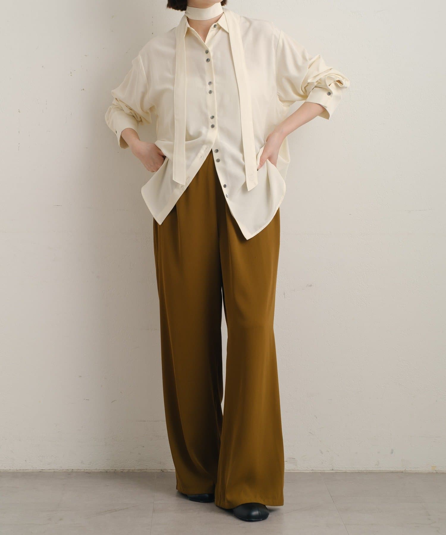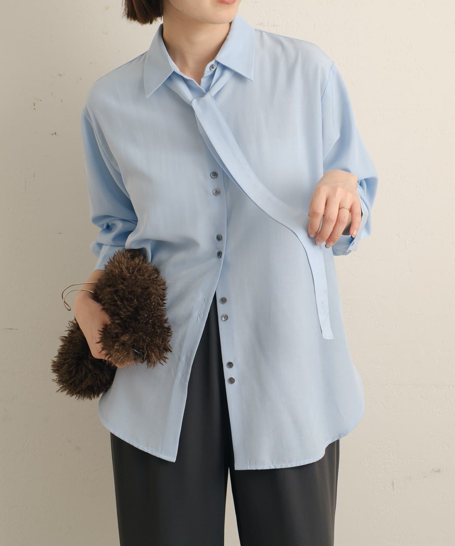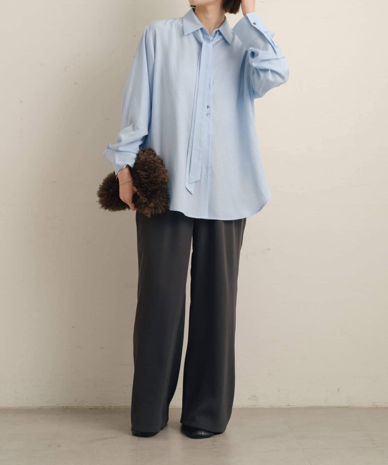 ・付属のチョーカーは、ベルトにしたり、ネクタイにしたり様々な着方ができるのでスタイリングの幅が広がる一着