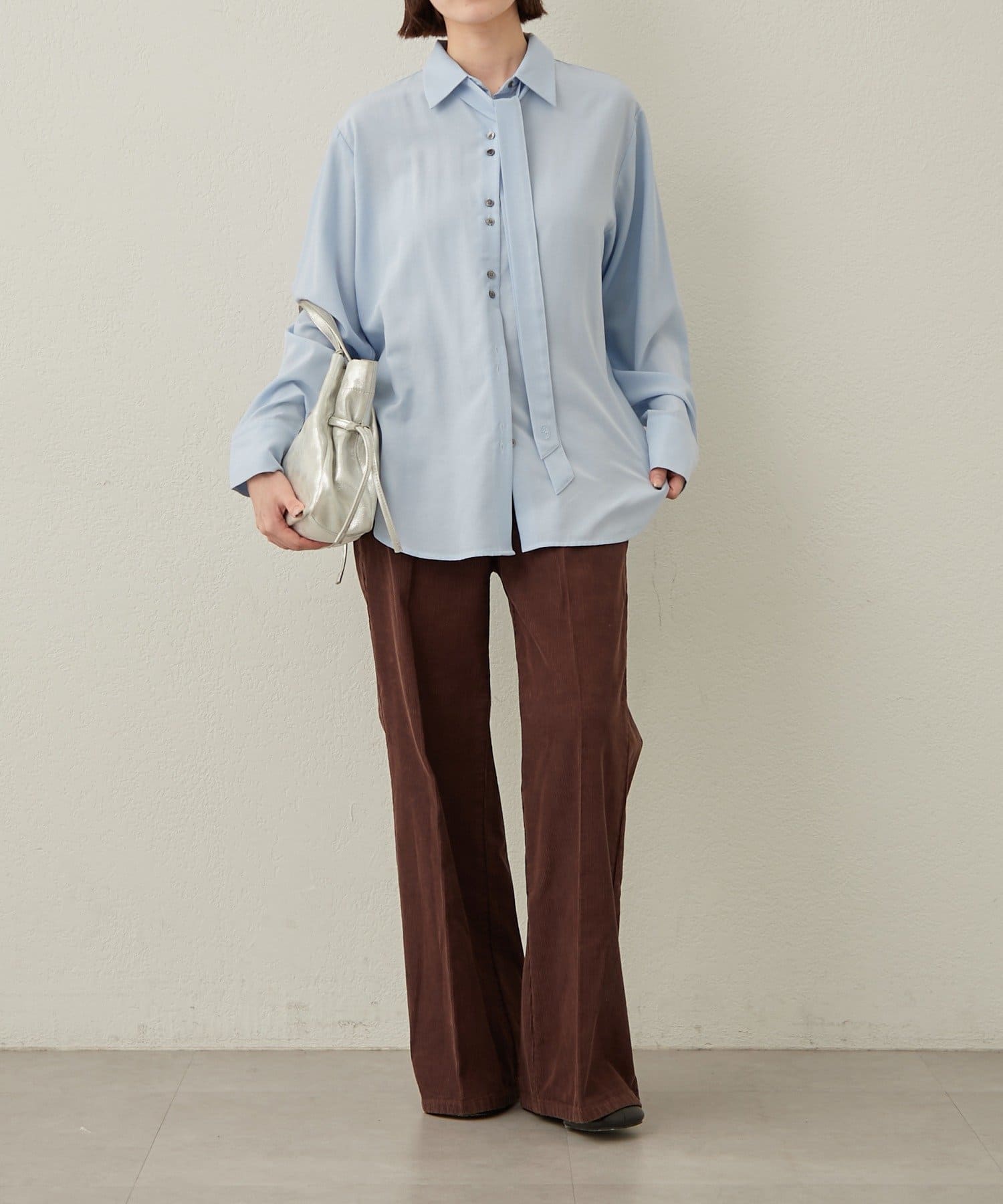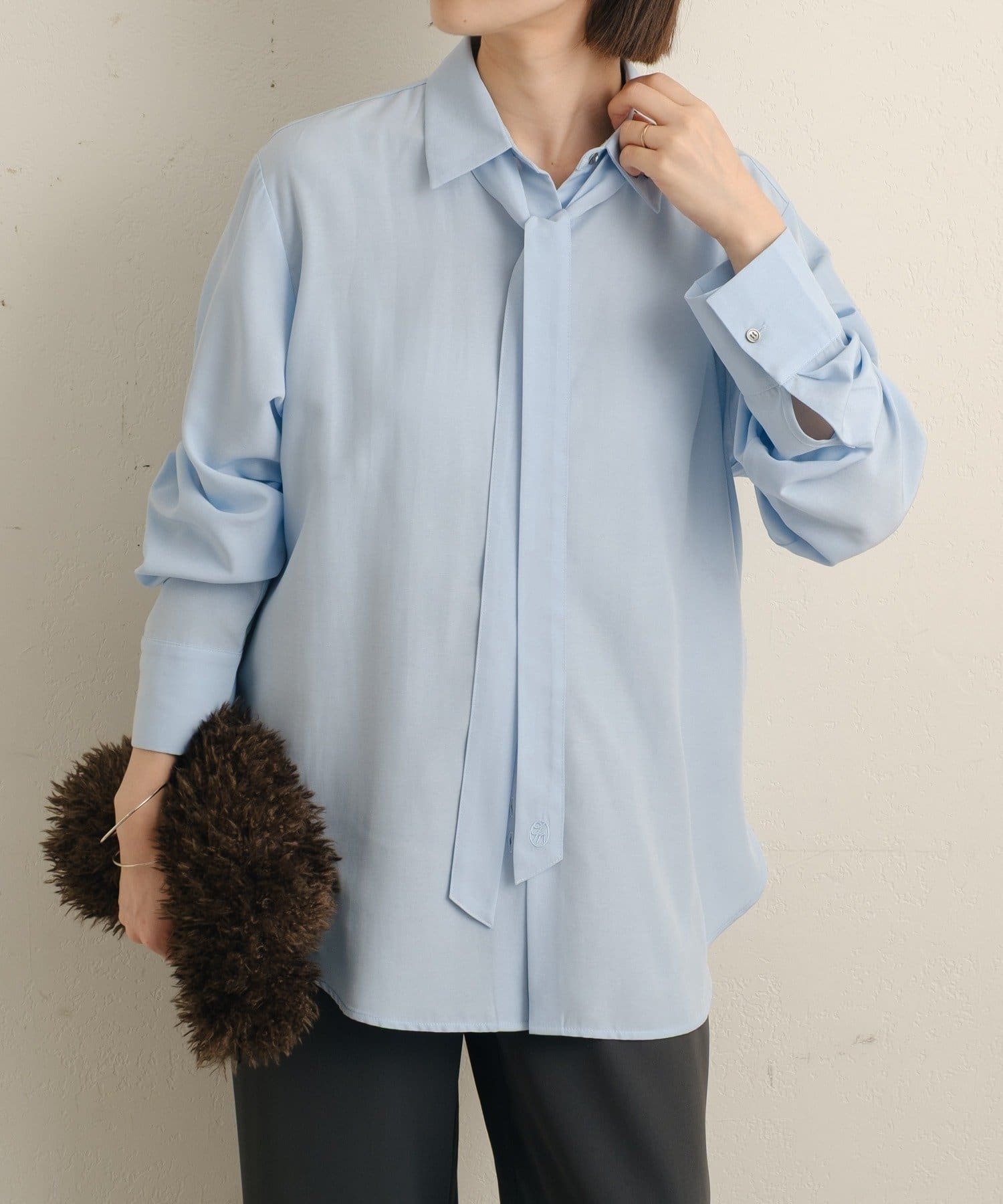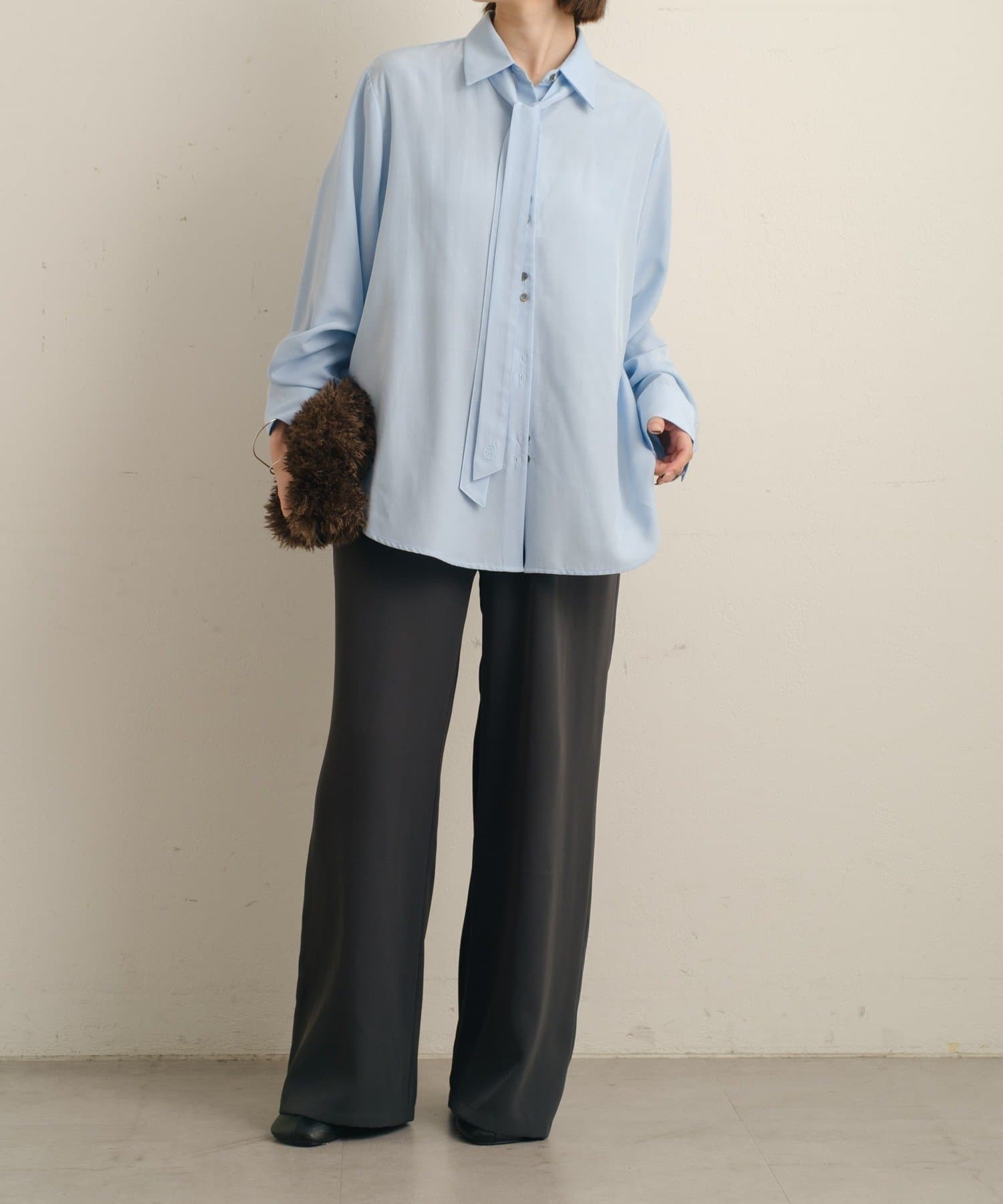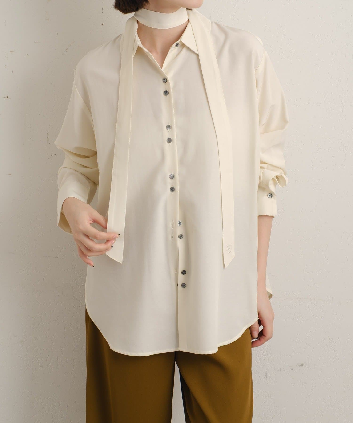 ・付属のチョーカーは、ベルトにしたり、ネクタイにしたり様々な着方ができるのでスタイリングの幅が広がる一着
