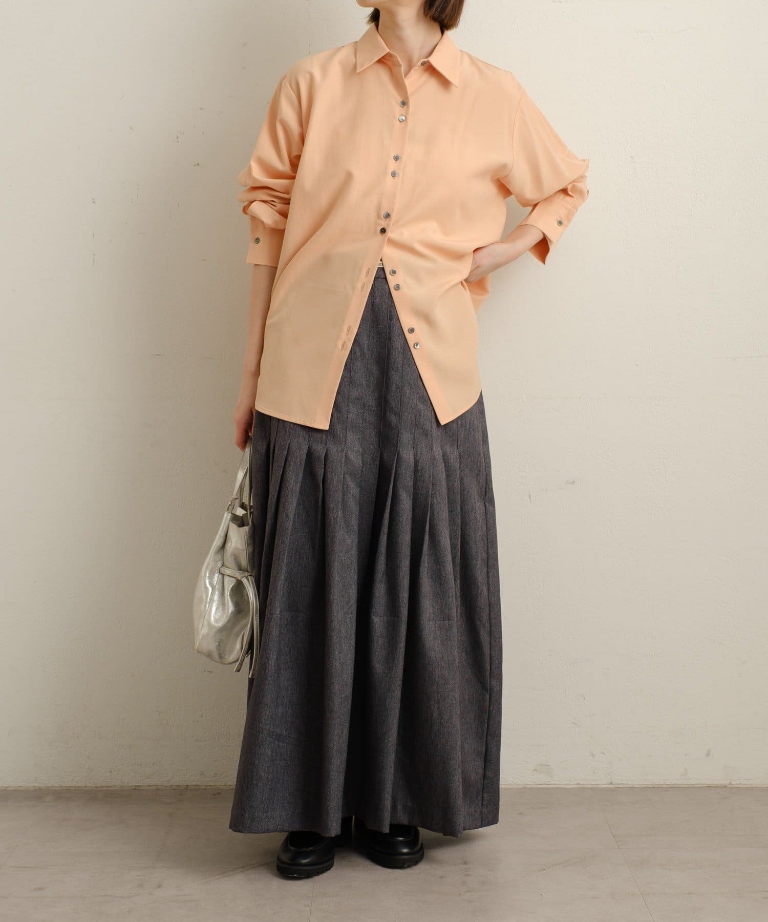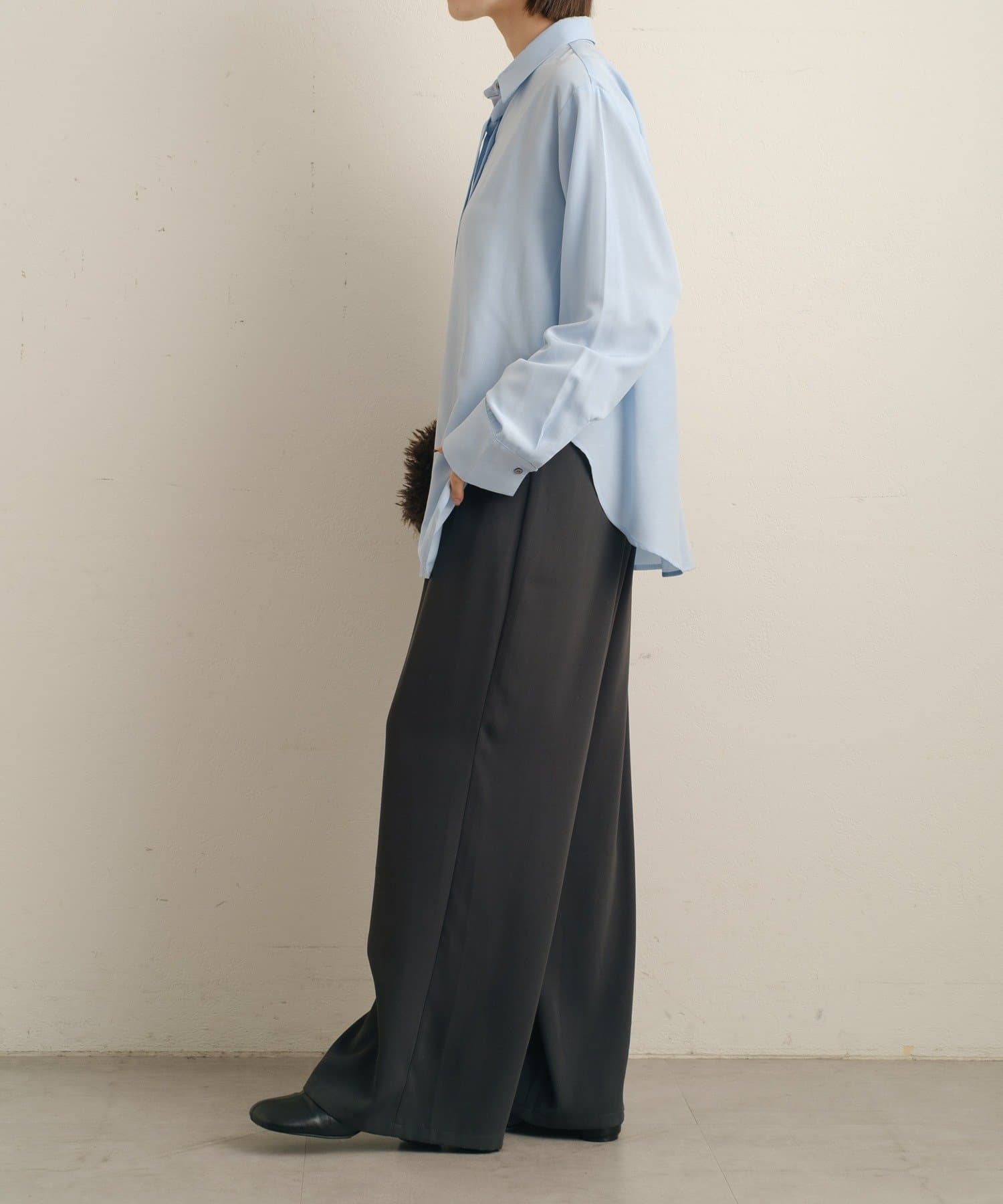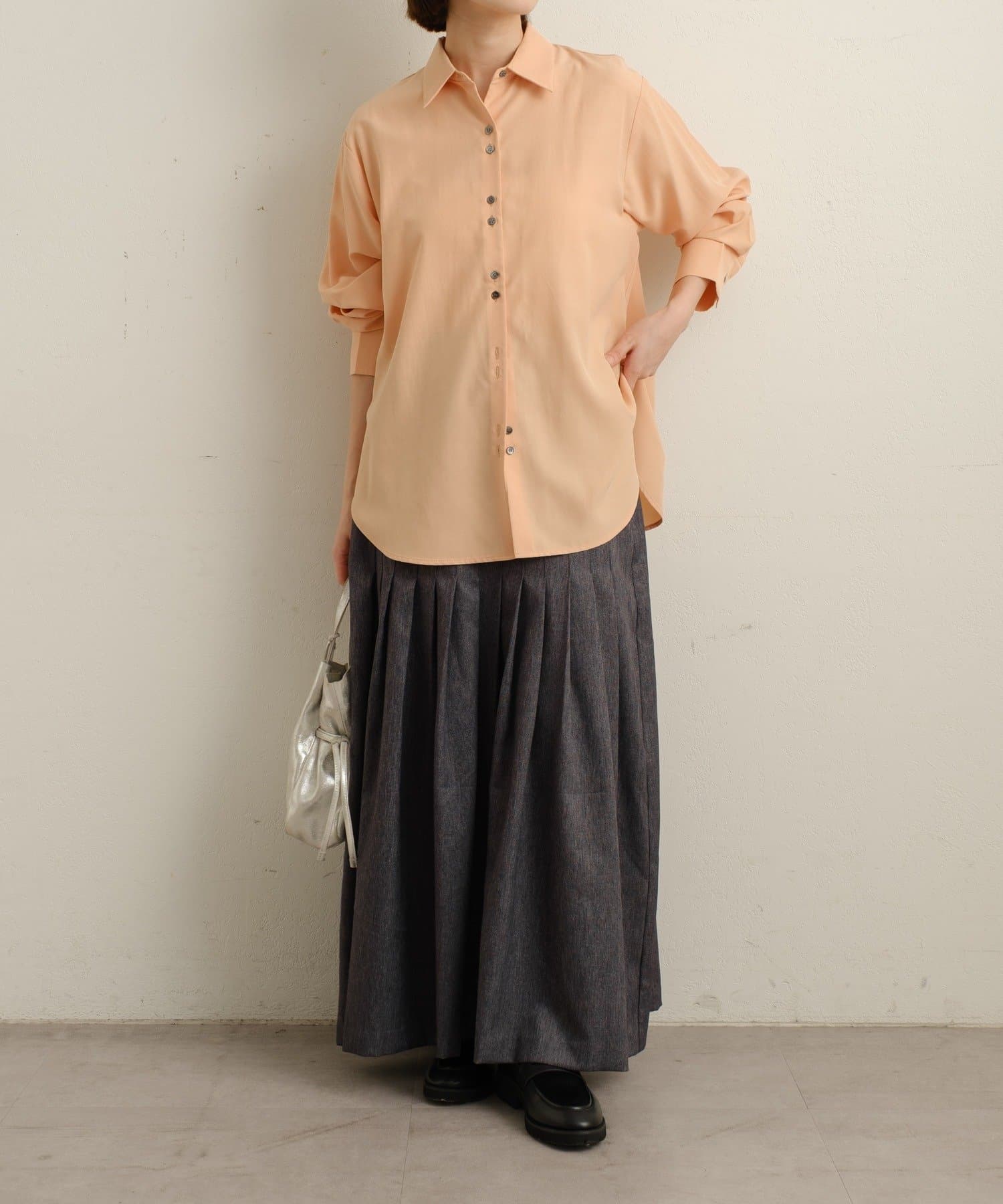 ・シアーな抜け感と柔らかい触り心地が特徴のとろみカラーシャツ。