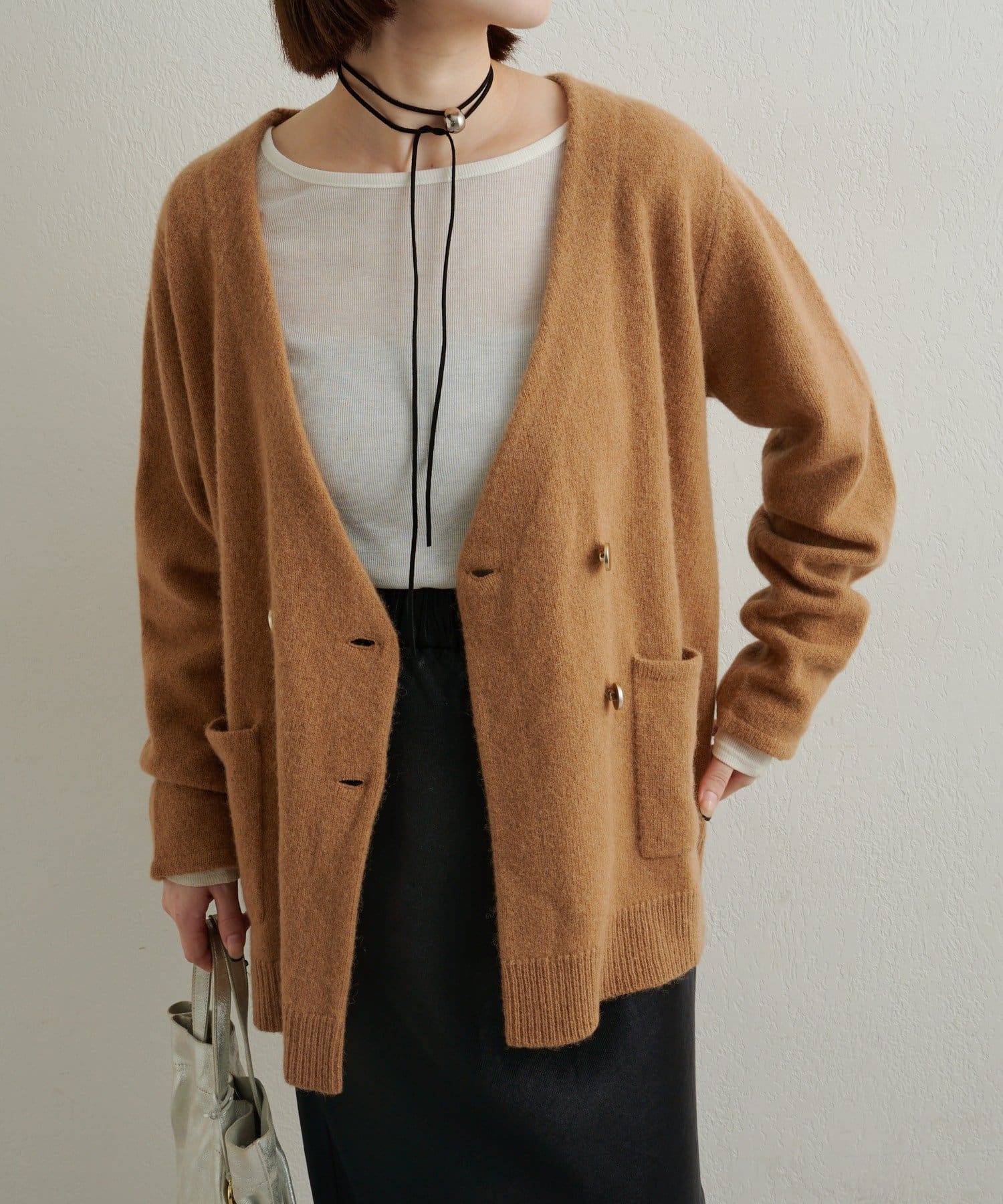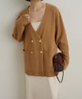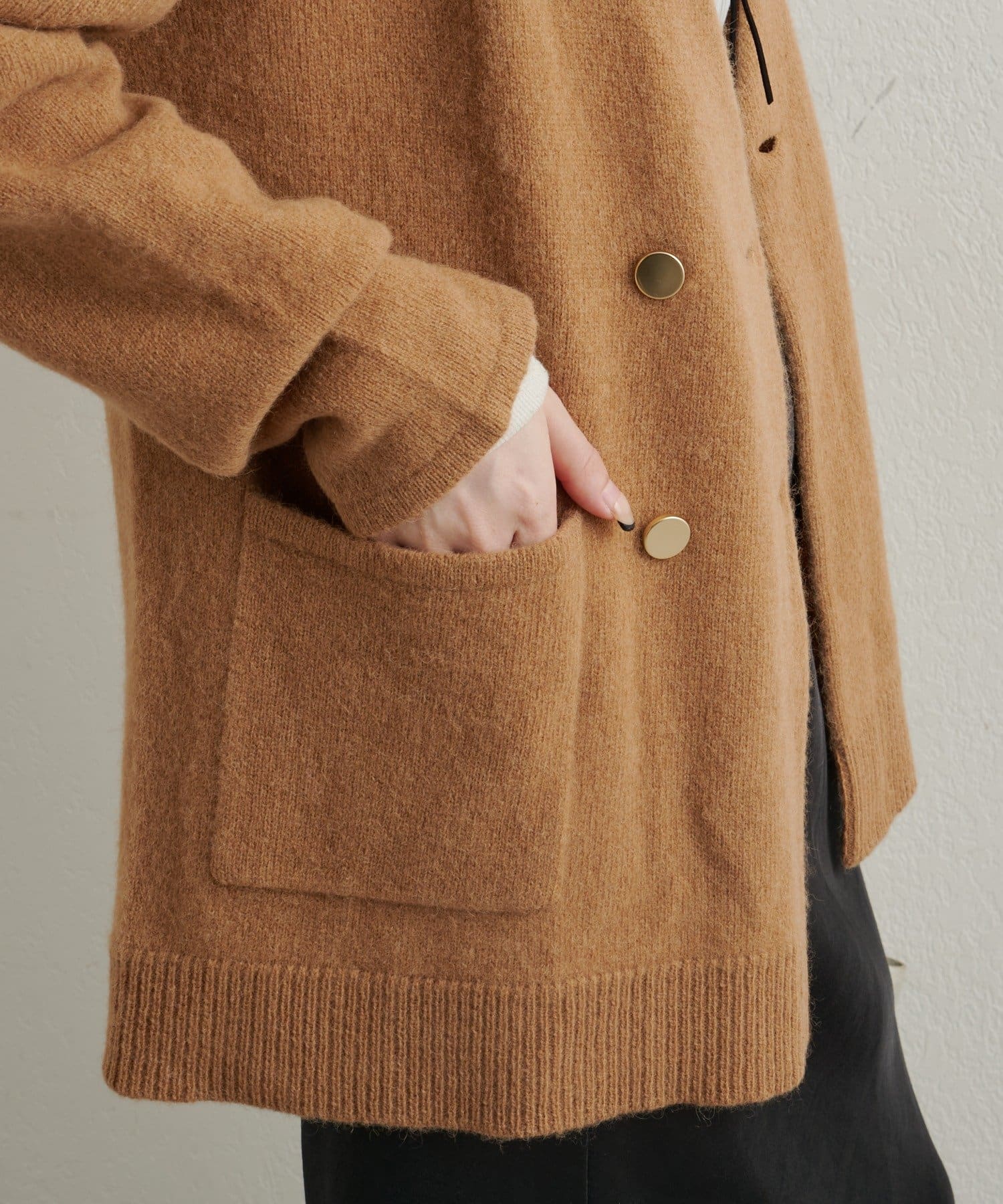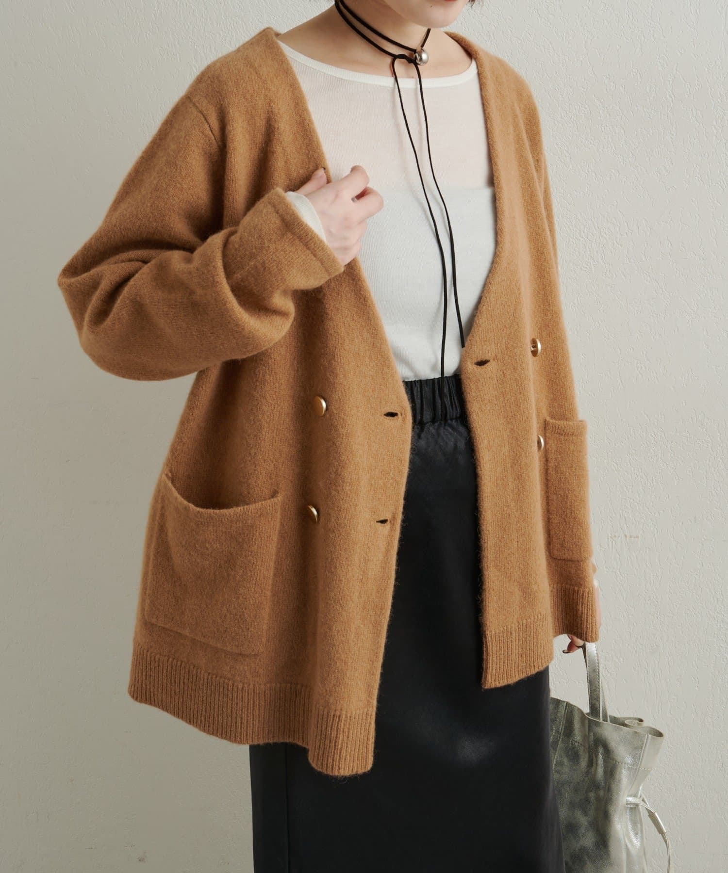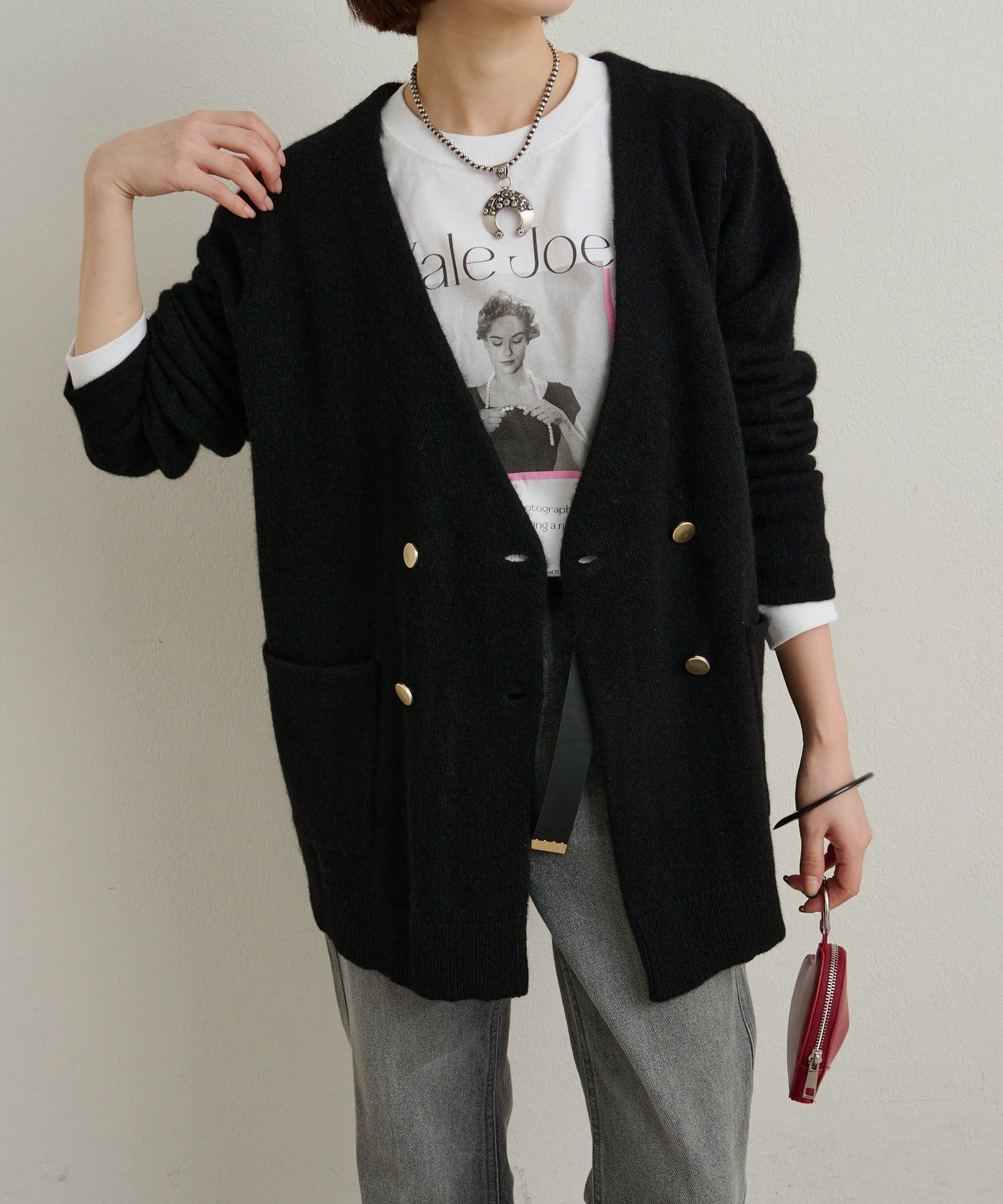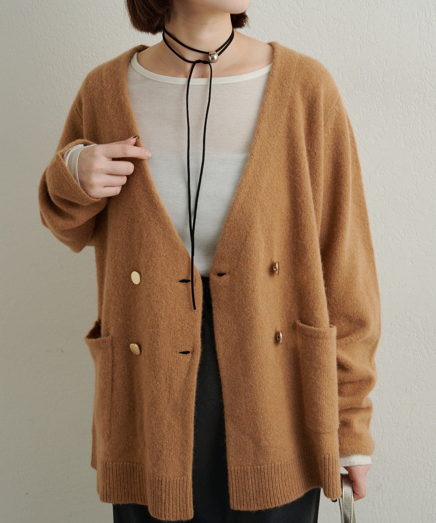 ・ダブルジャケットのようなフロントデザインがポイントのカーディガン。