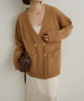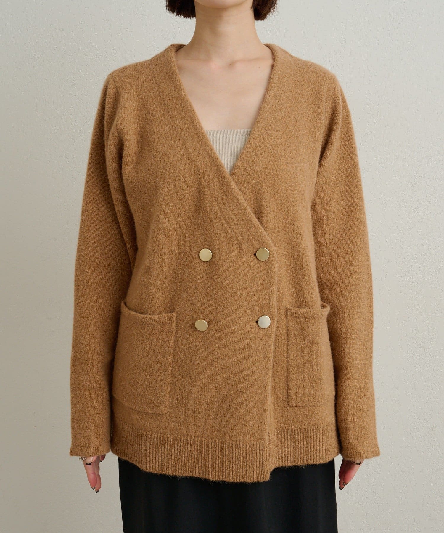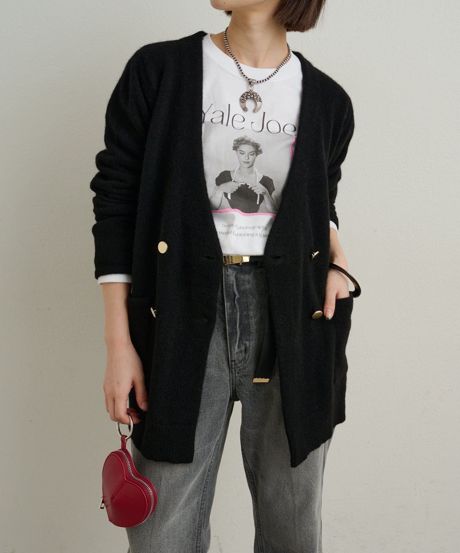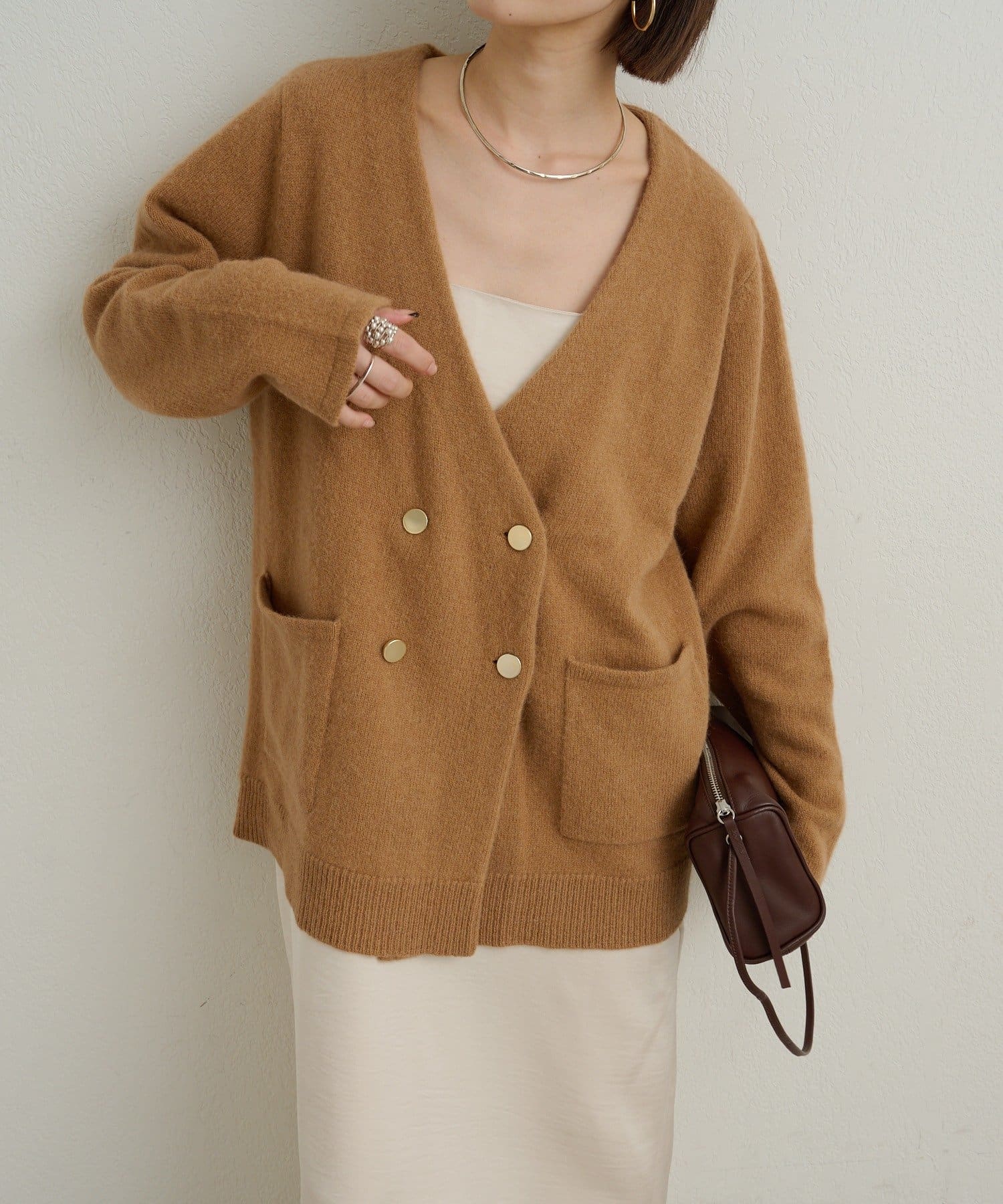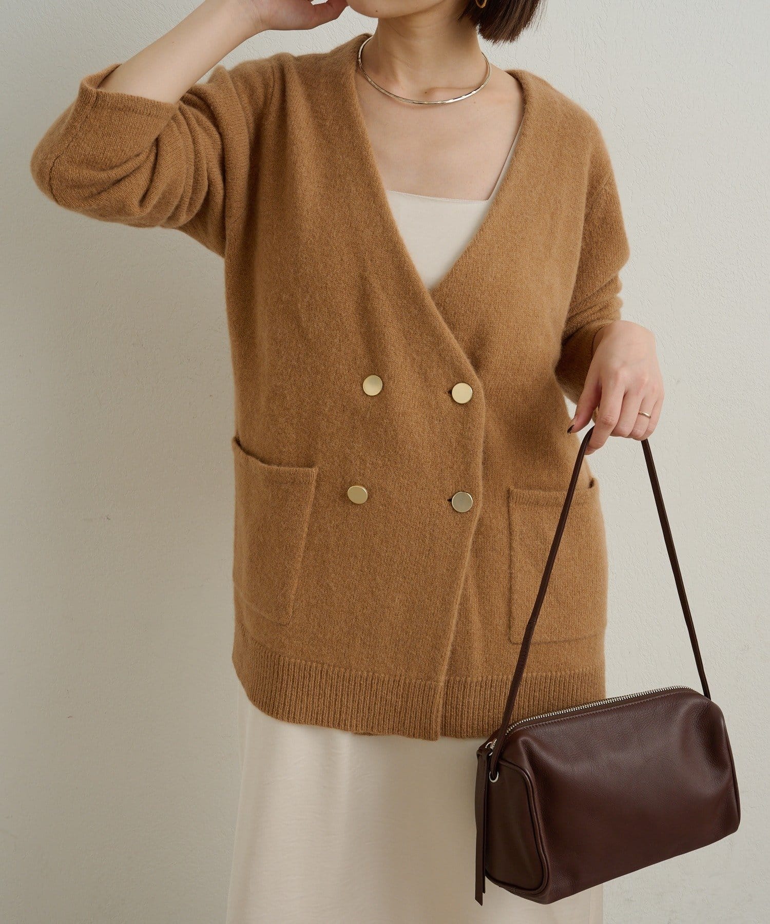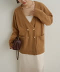 ・ダブルジャケットのようなフロントデザインがポイントのカーディガン。