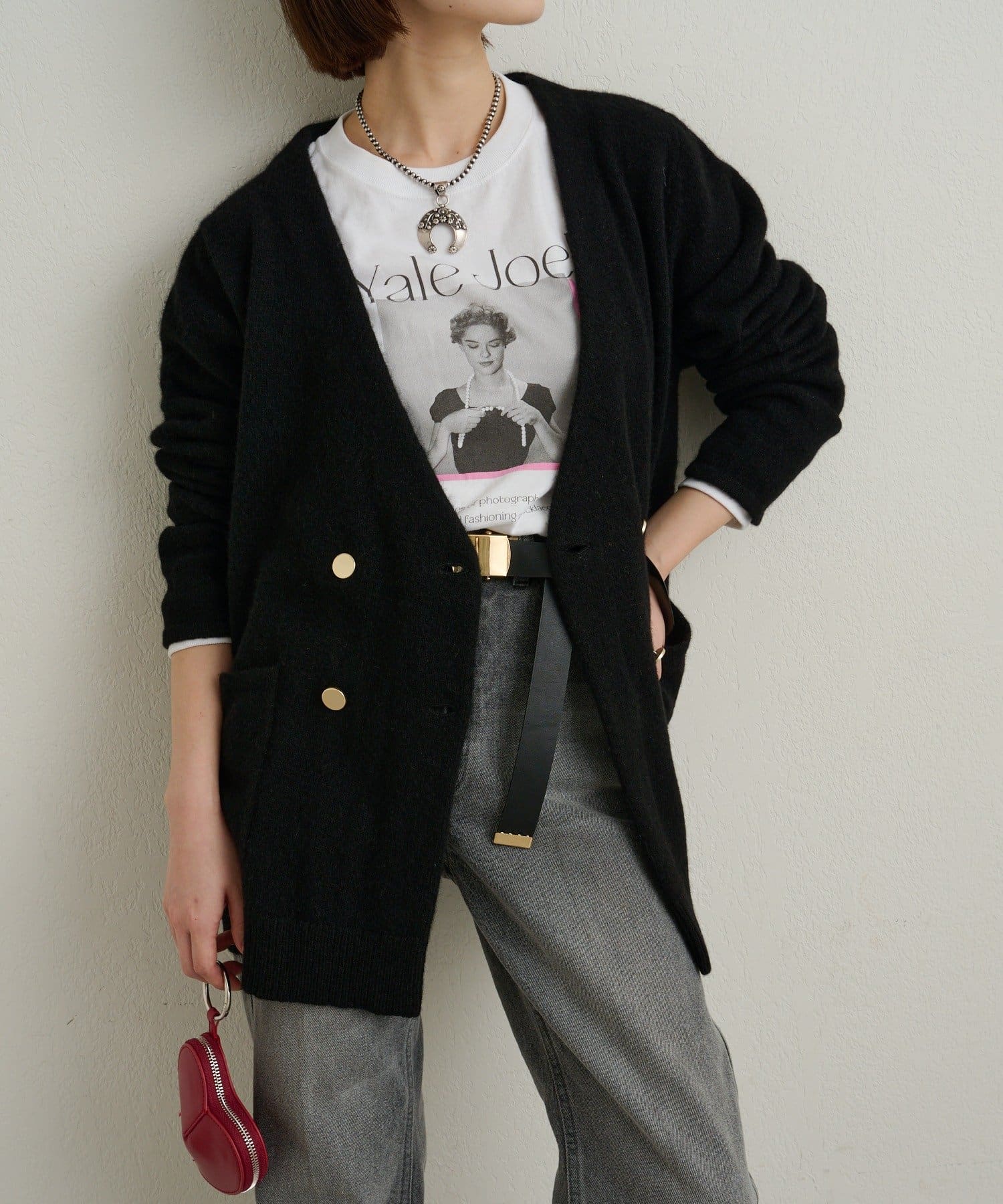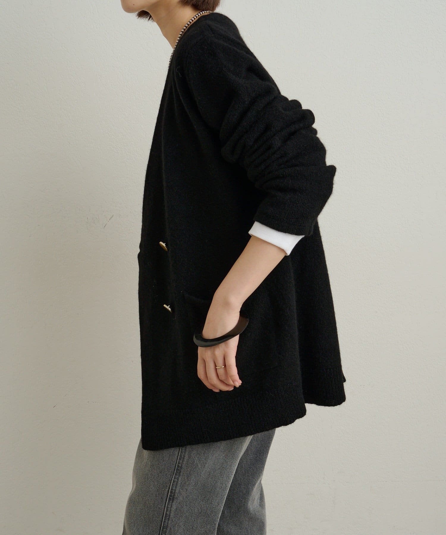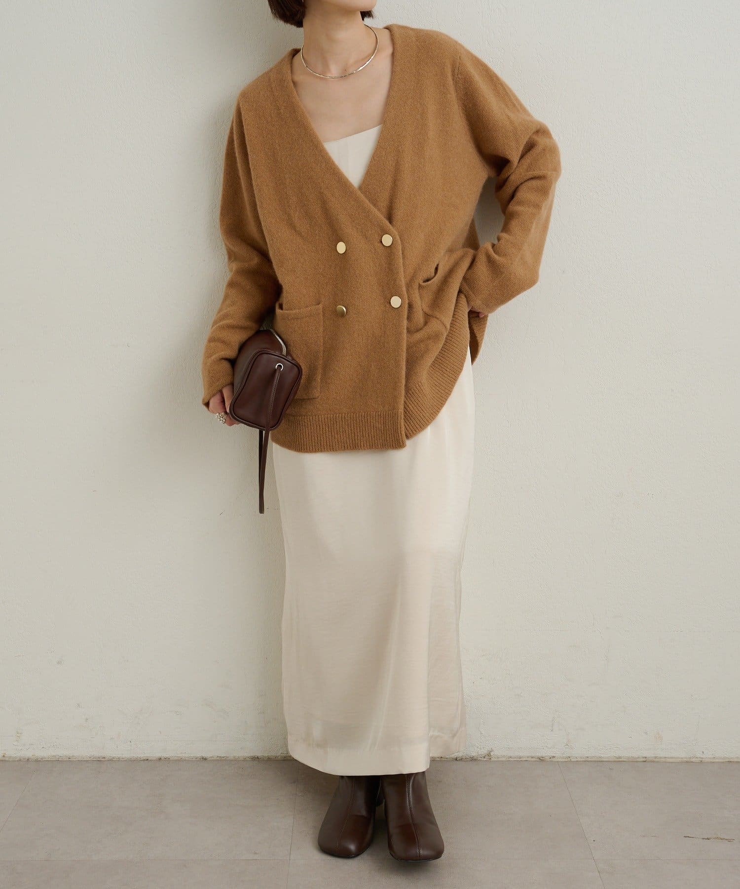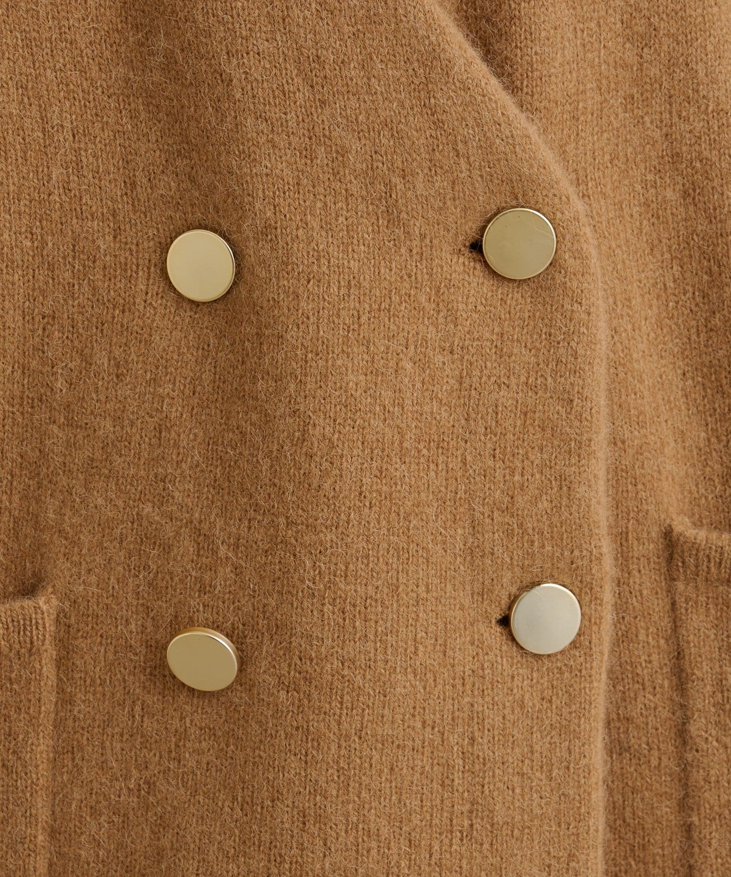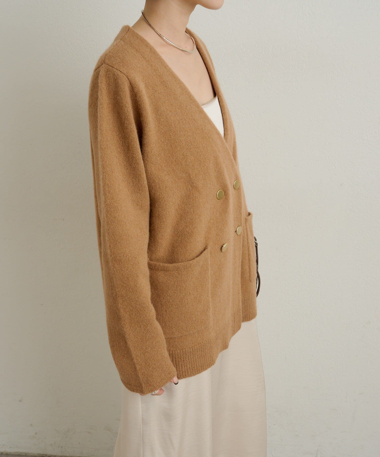 ・ダブルジャケットのようなフロントデザインがポイントのカーディガン。
