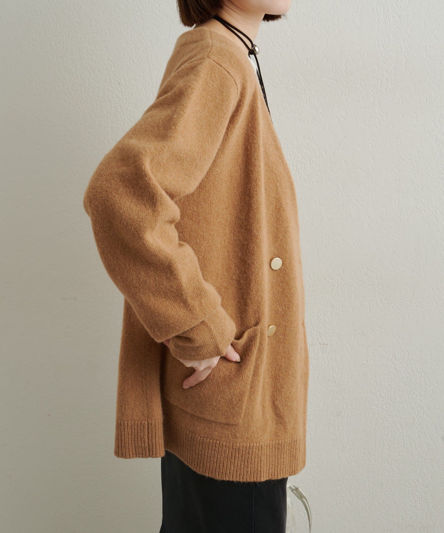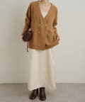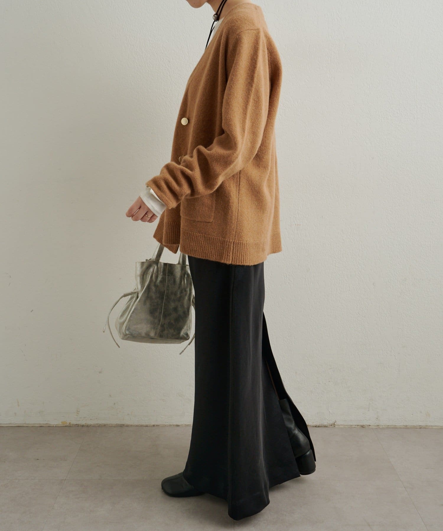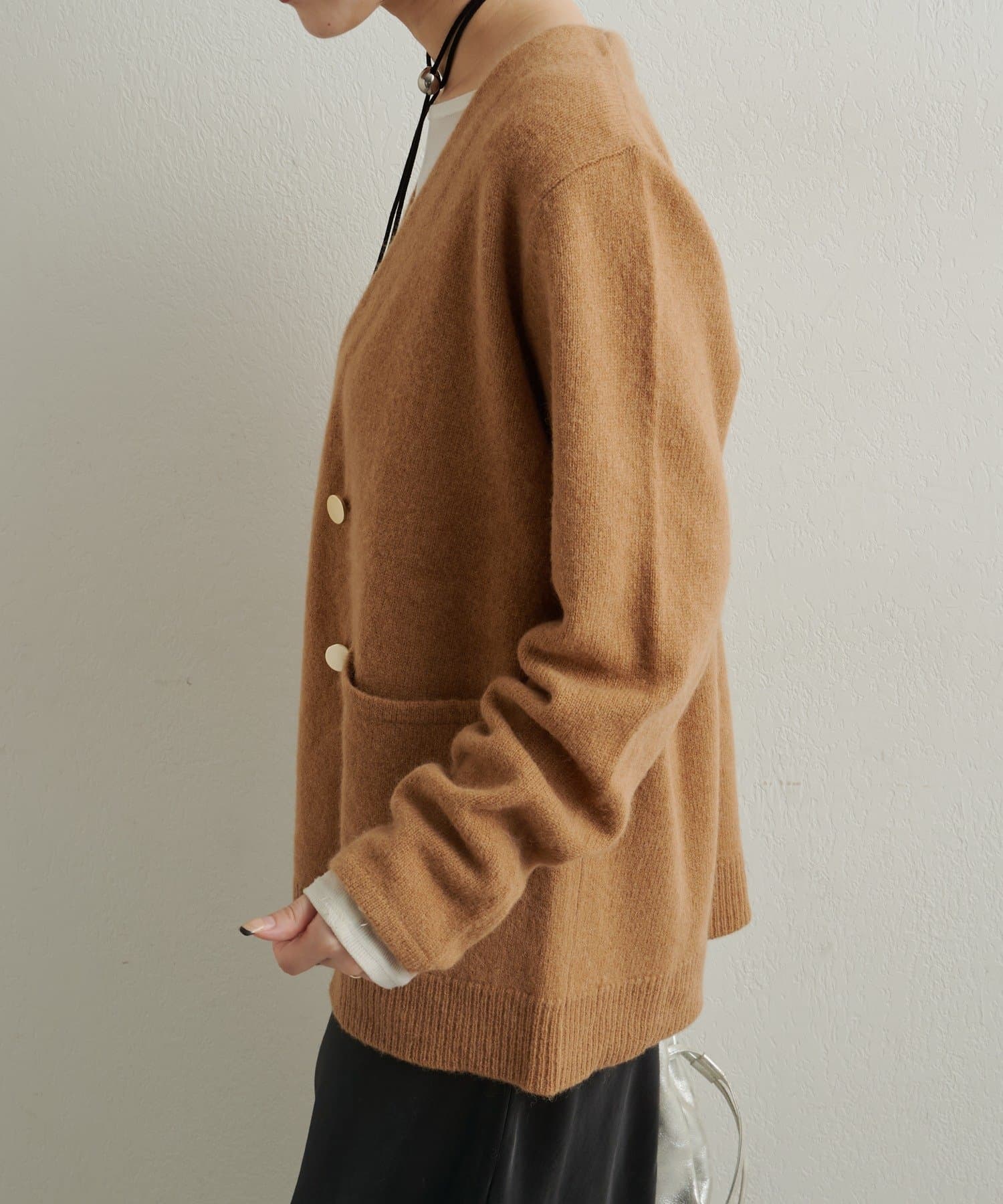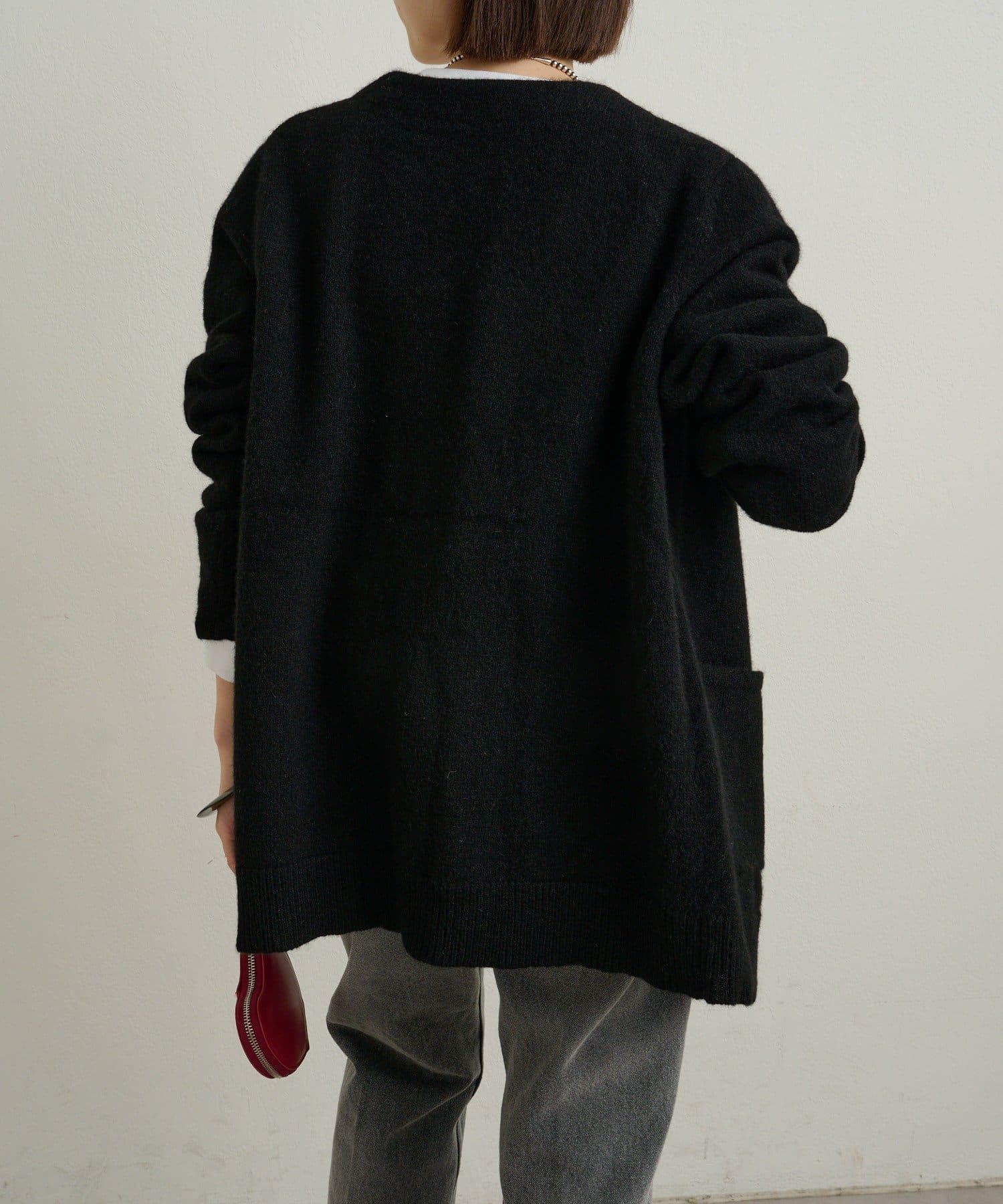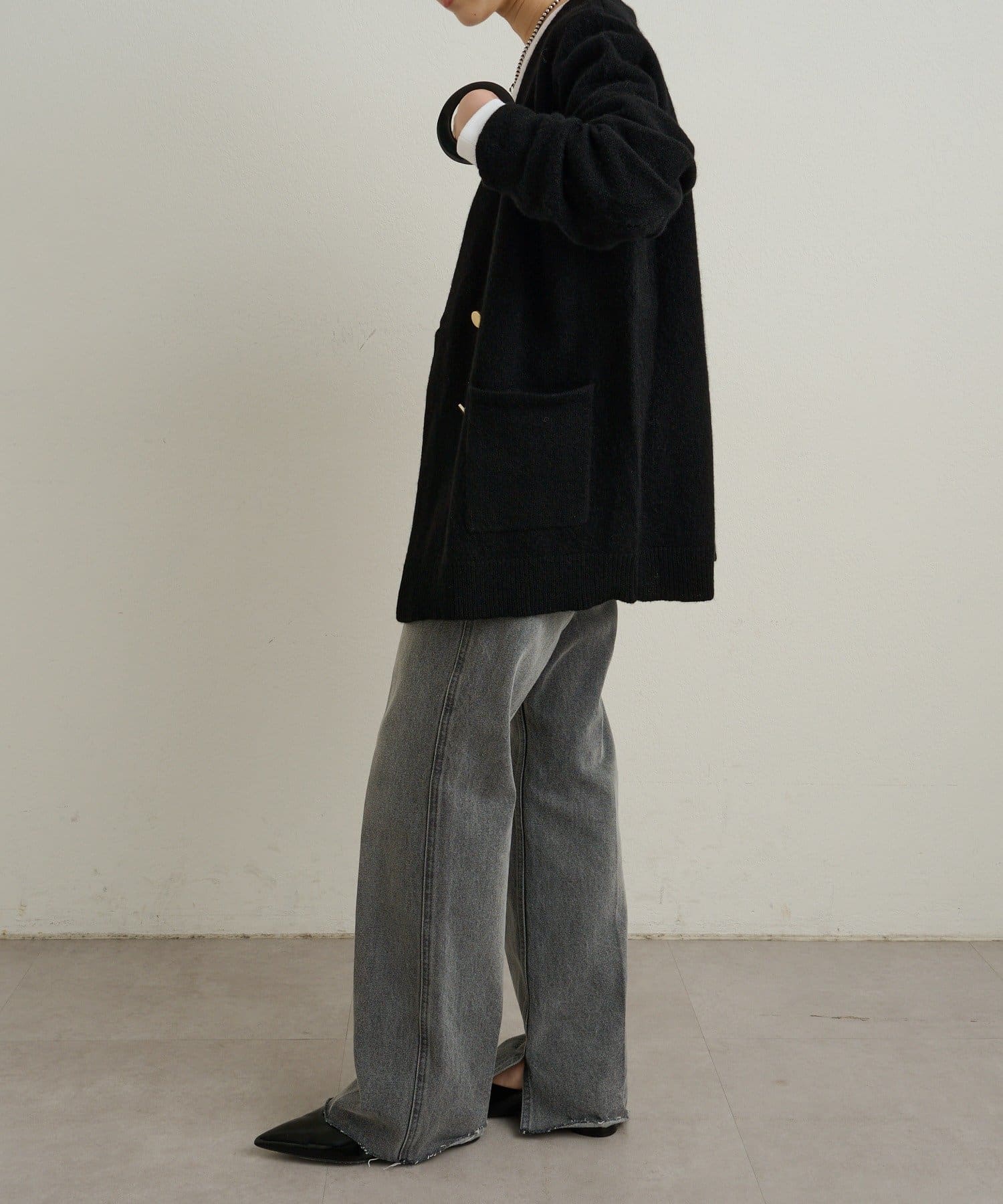 ・ダブルジャケットのようなフロントデザインがポイントのカーディガン。