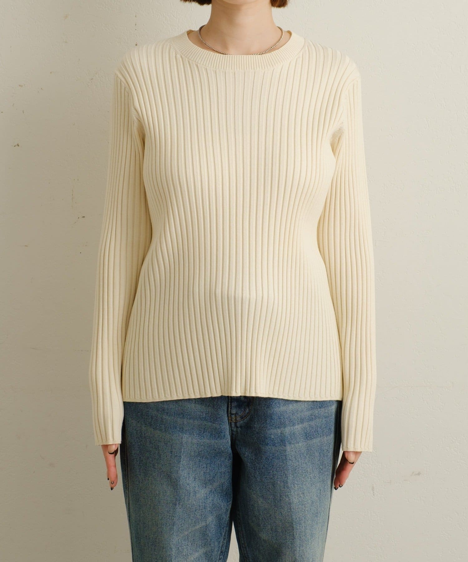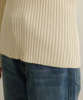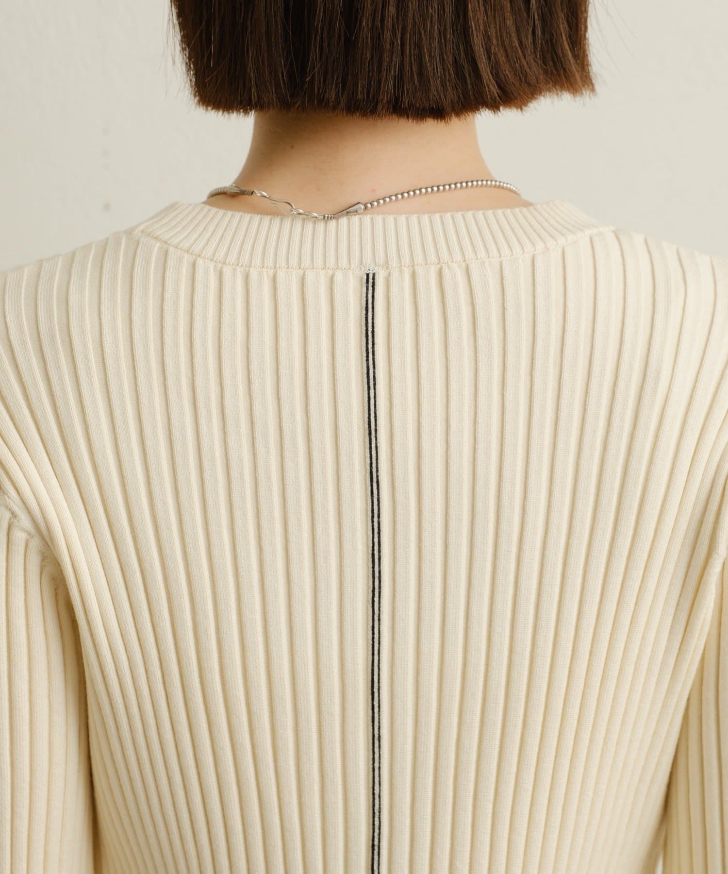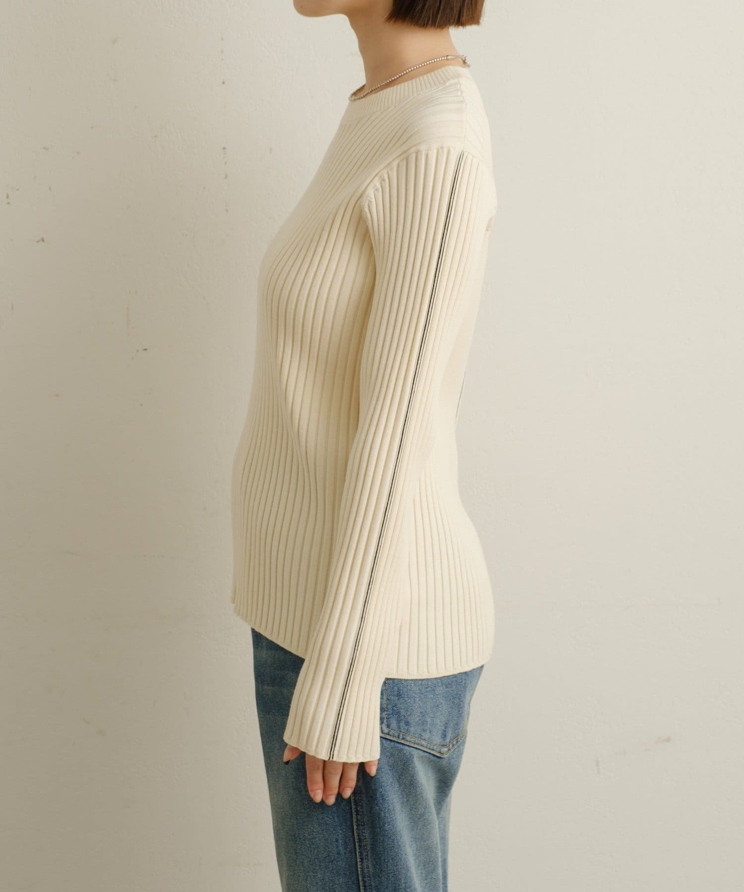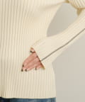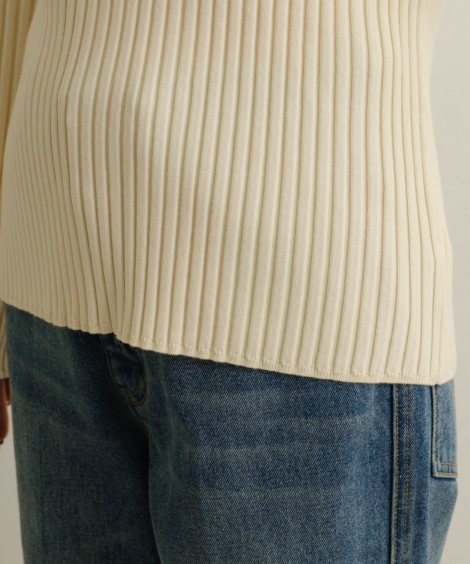 ・リブニット特有の「リブ編み」は伸縮性が高く、体にフィットしストレスフリーな着心地です。