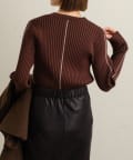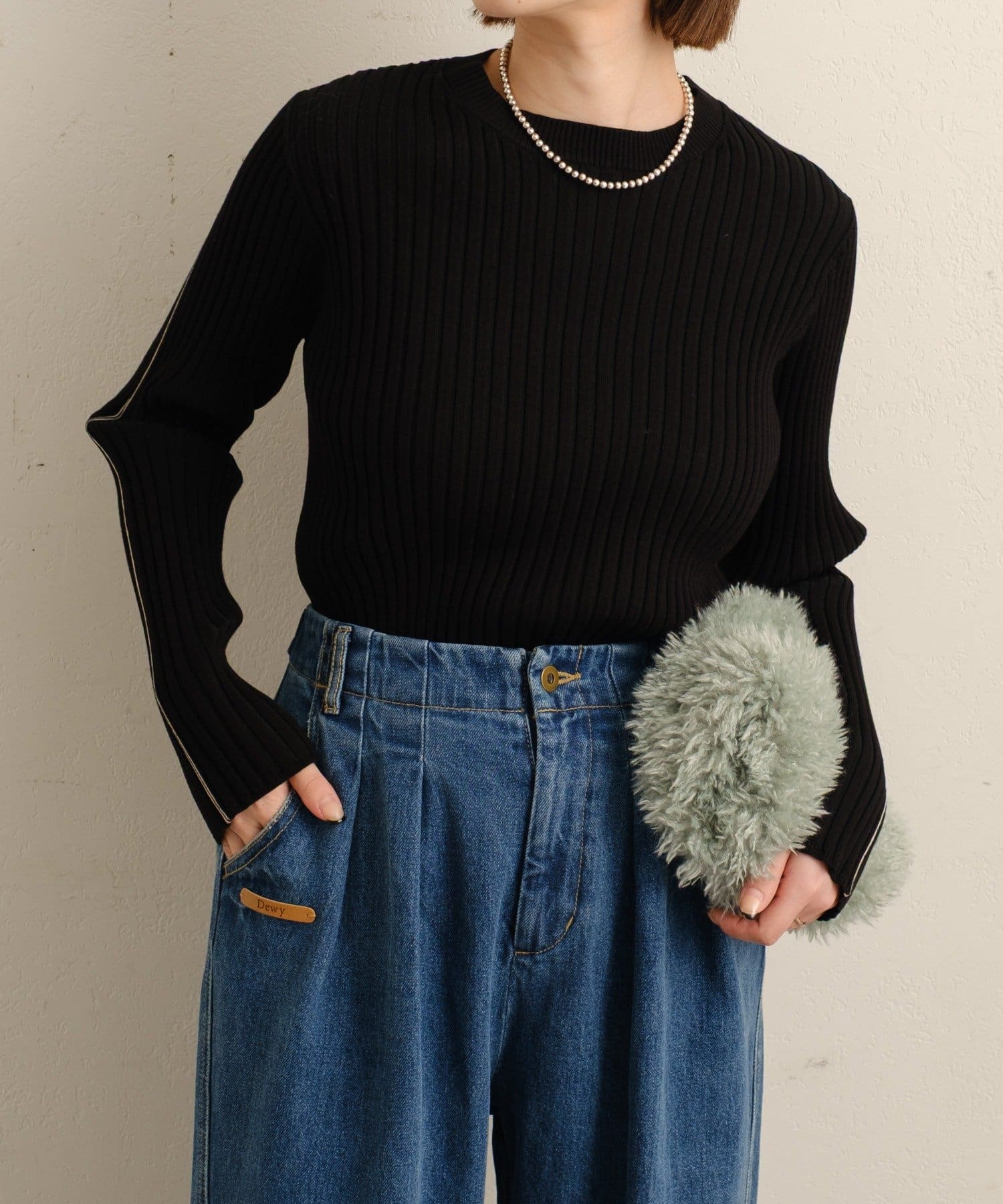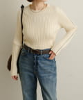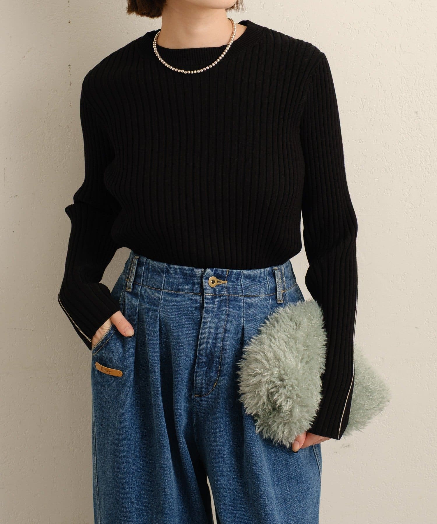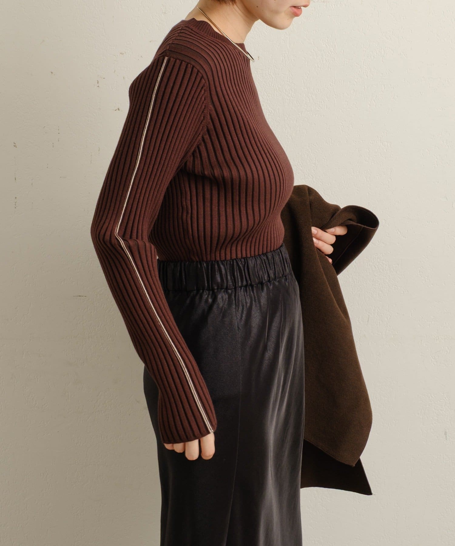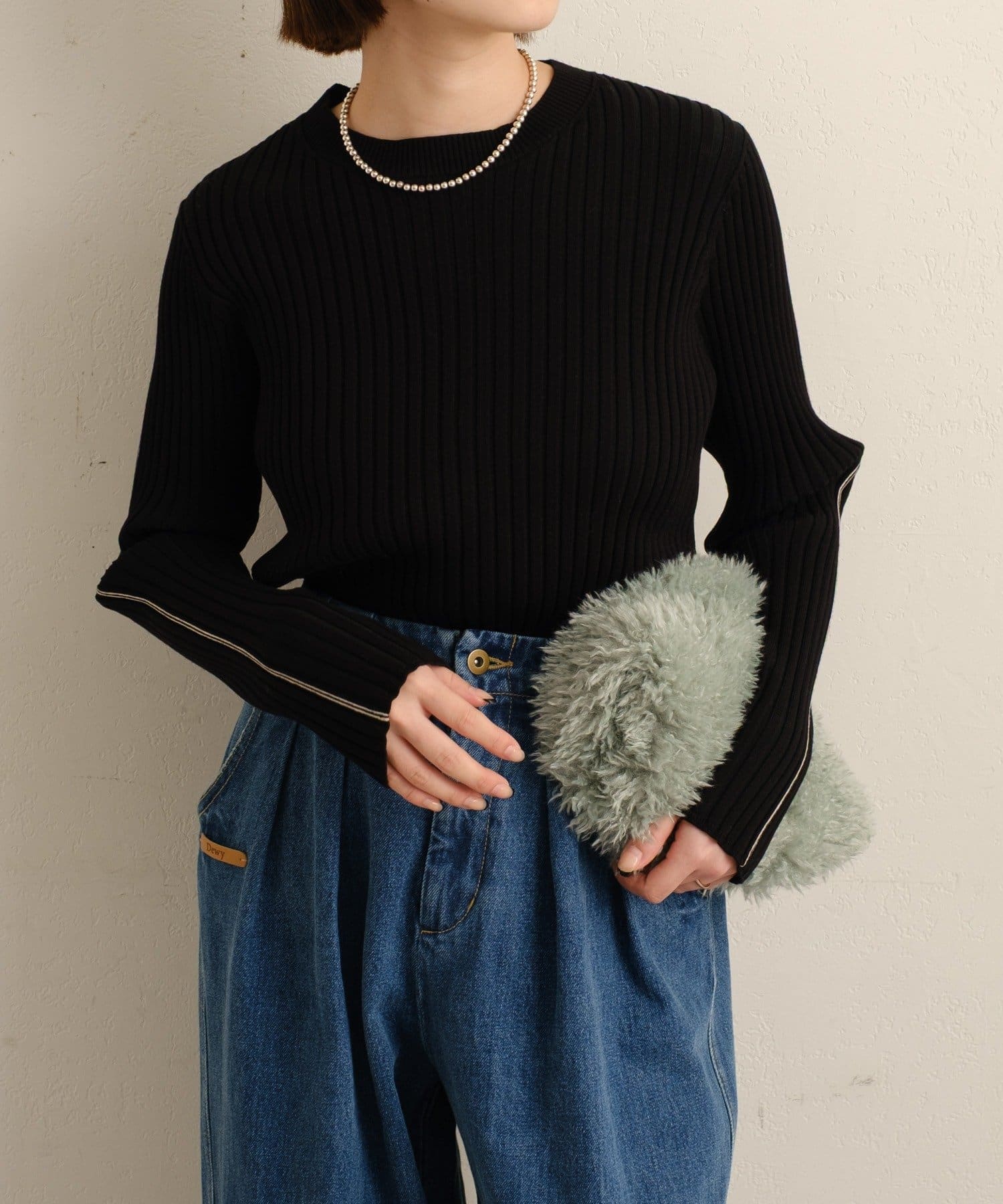 ・リブニット特有の「リブ編み」は伸縮性が高く、体にフィットしストレスフリーな着心地です。
