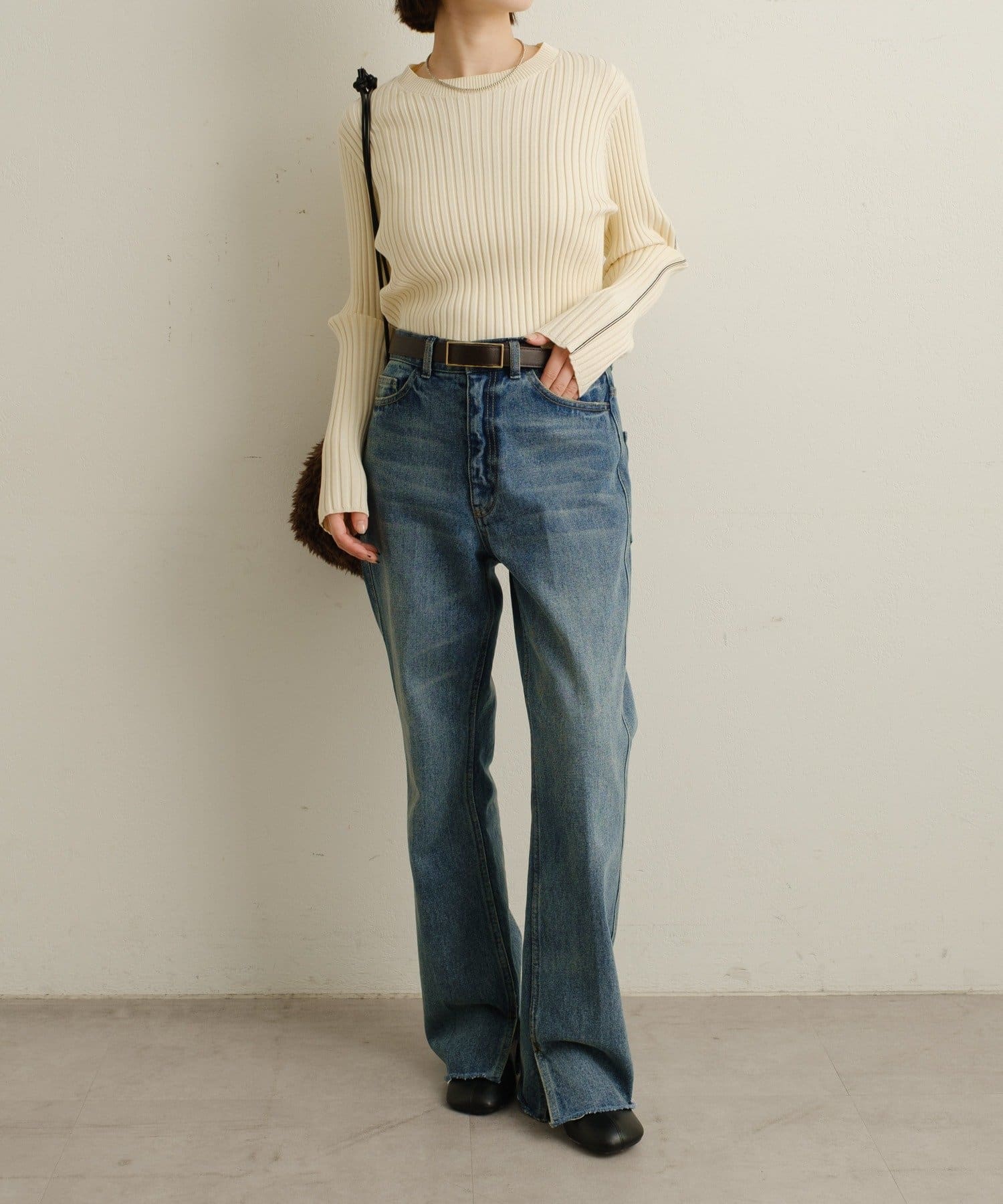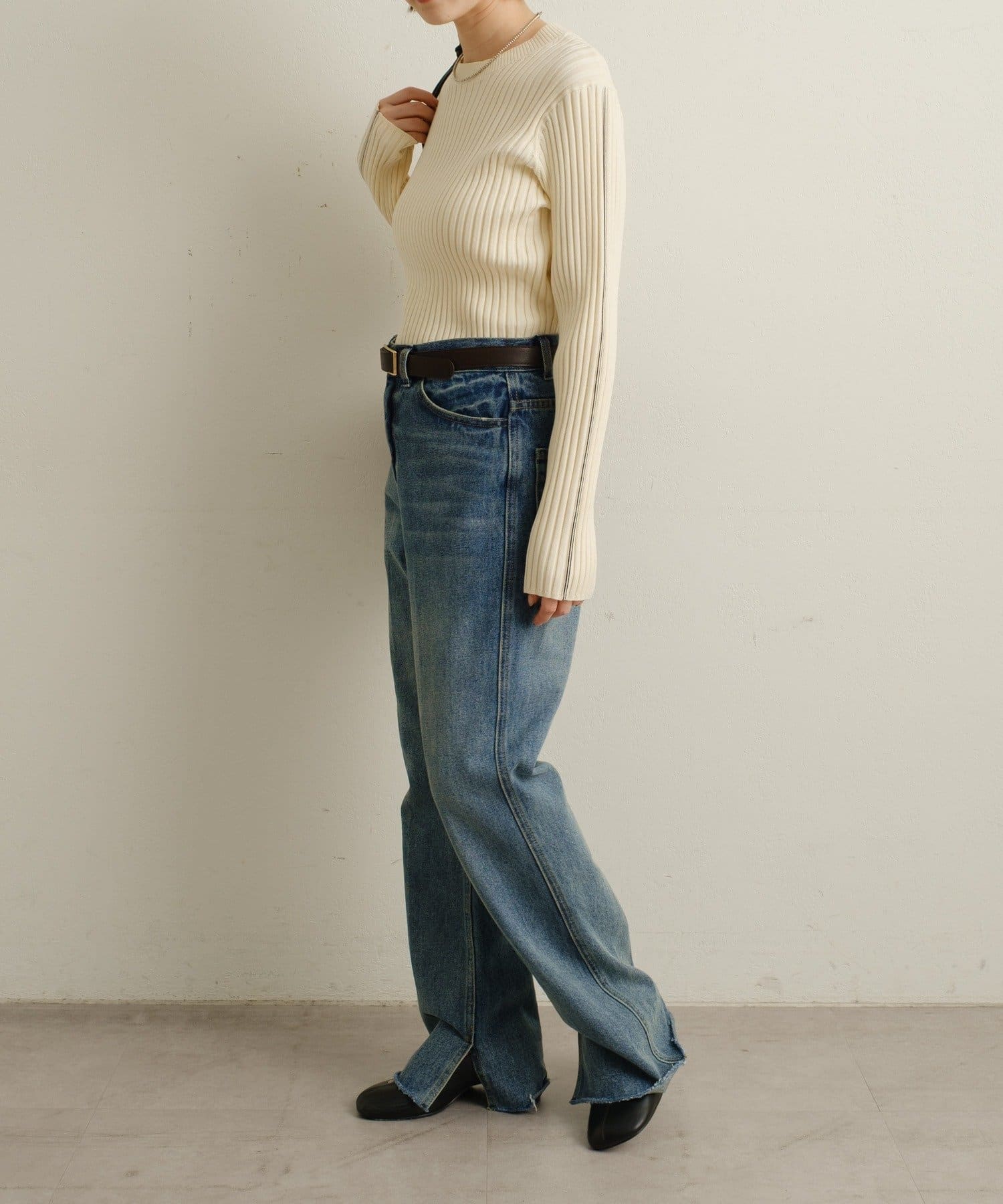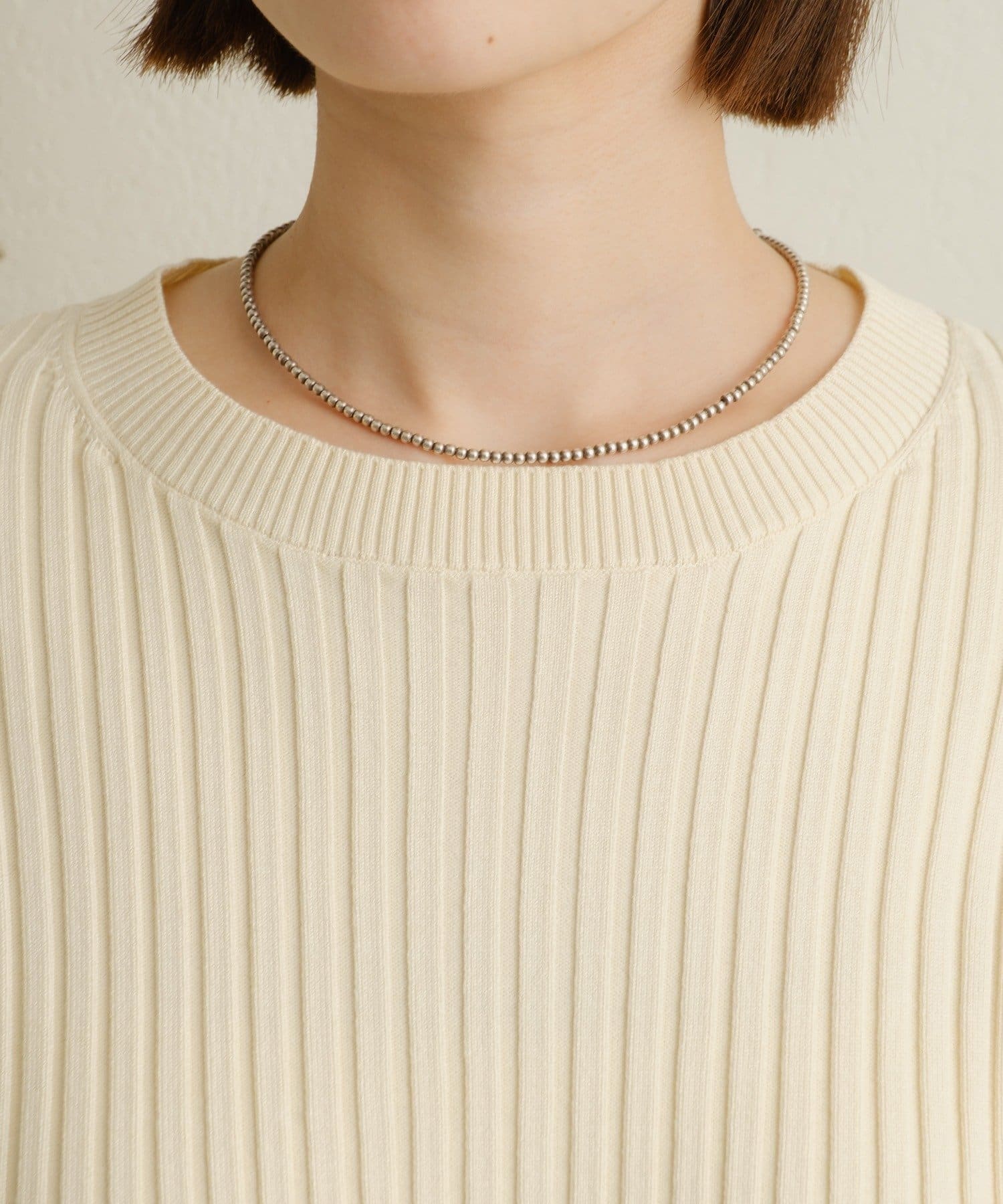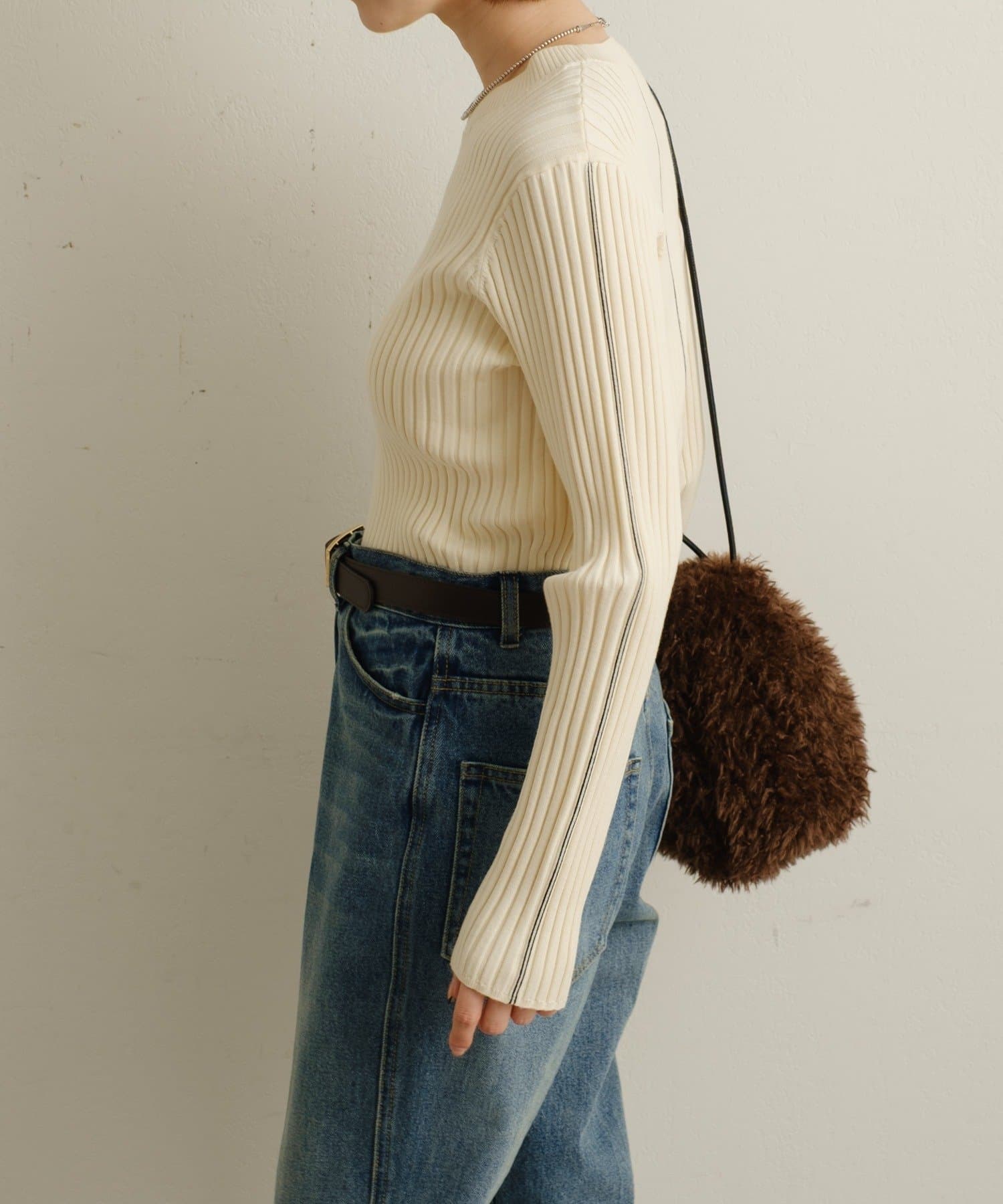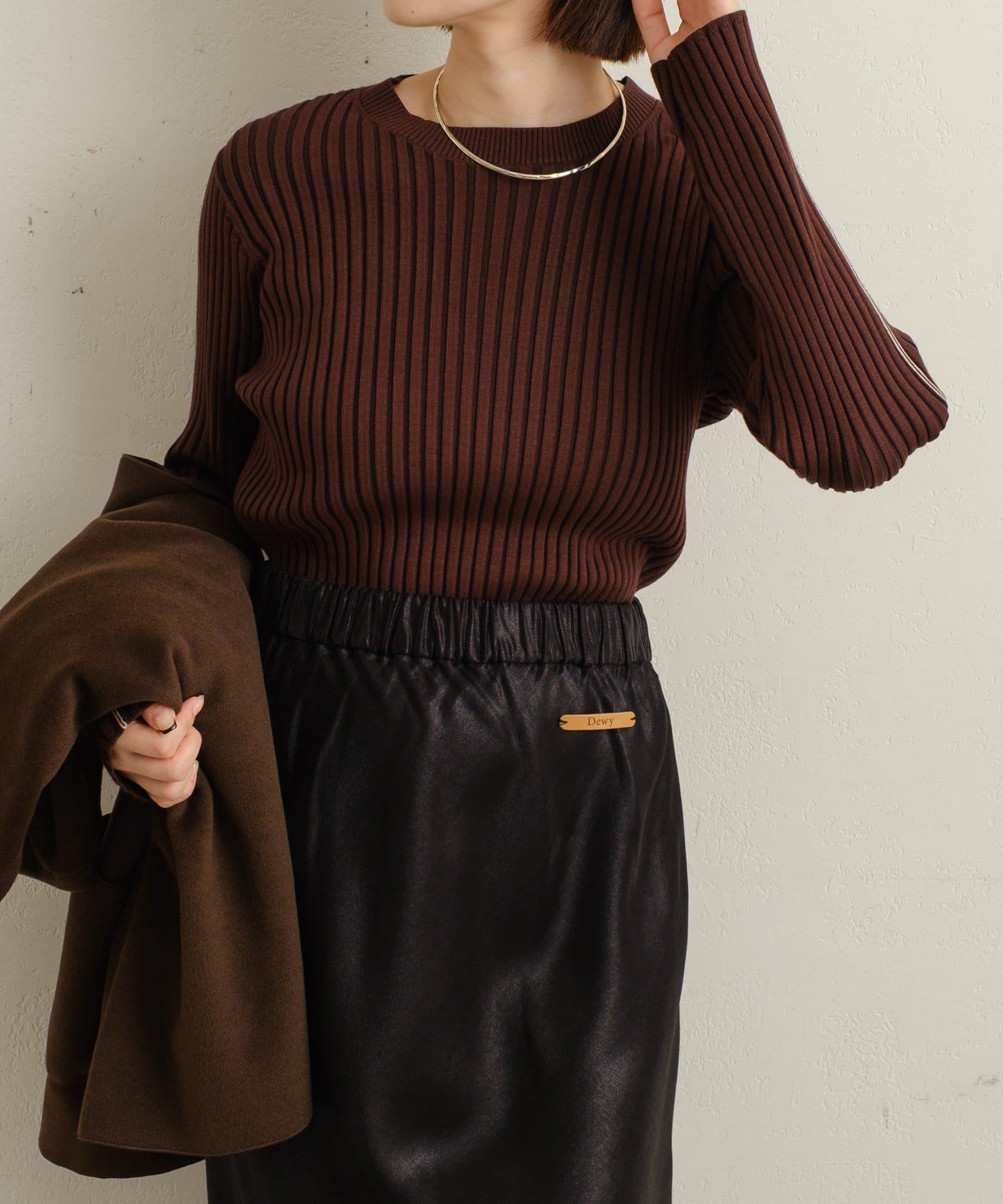 ・リブニット特有の「リブ編み」は伸縮性が高く、体にフィットしストレスフリーな着心地です。