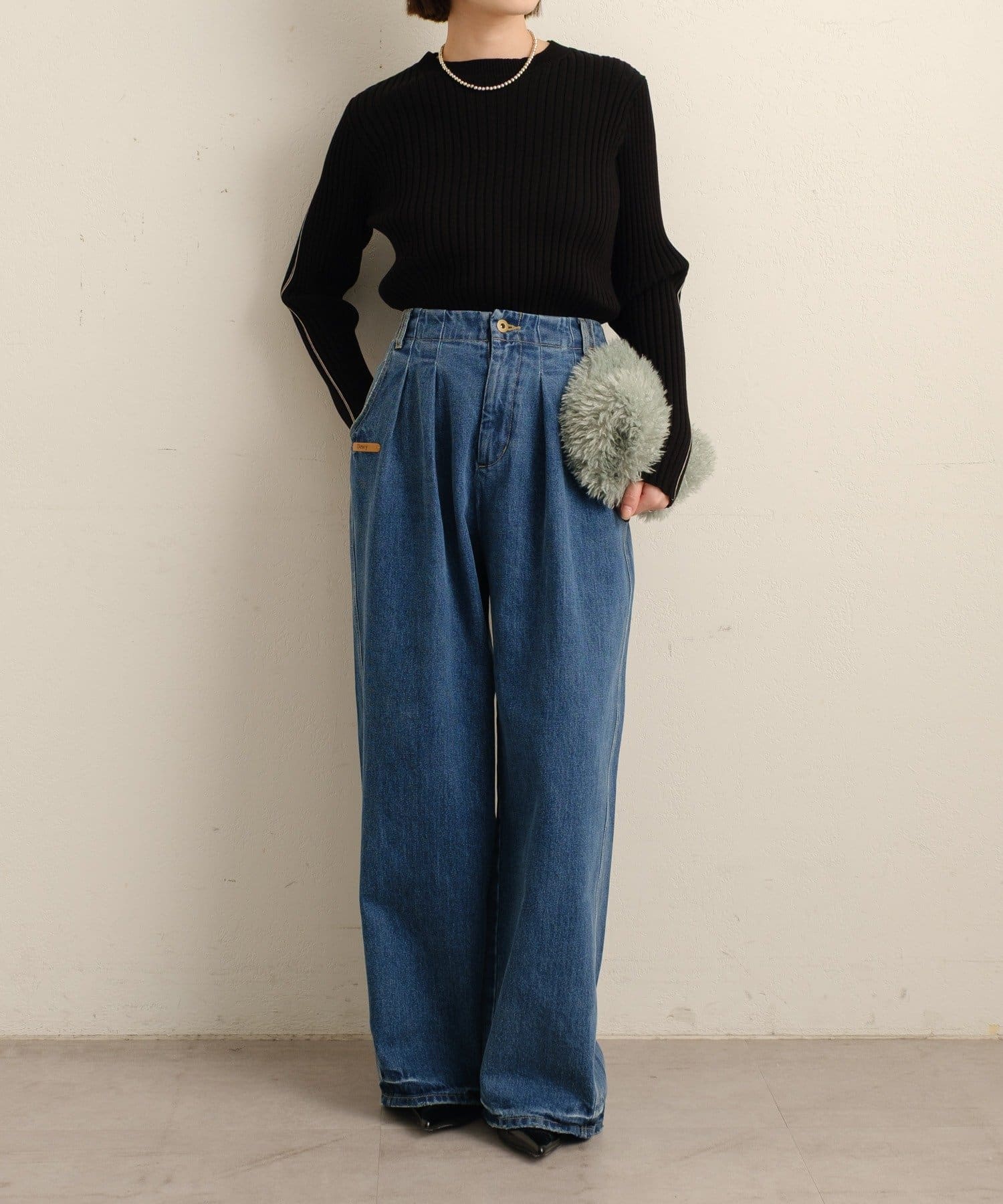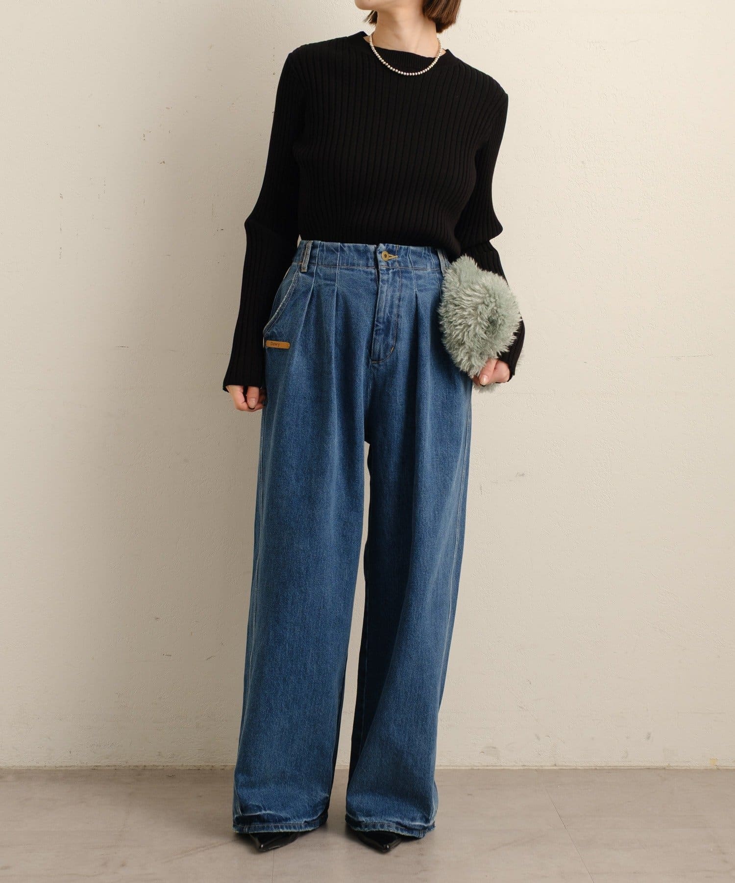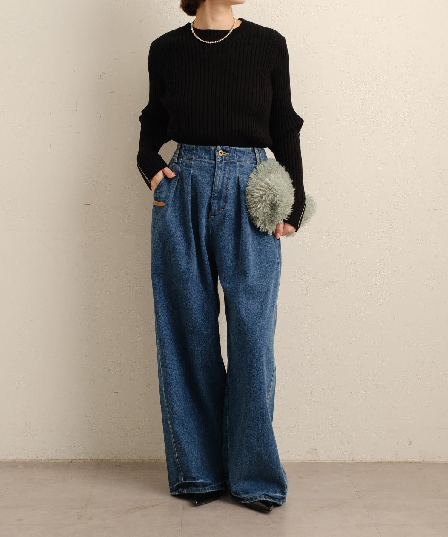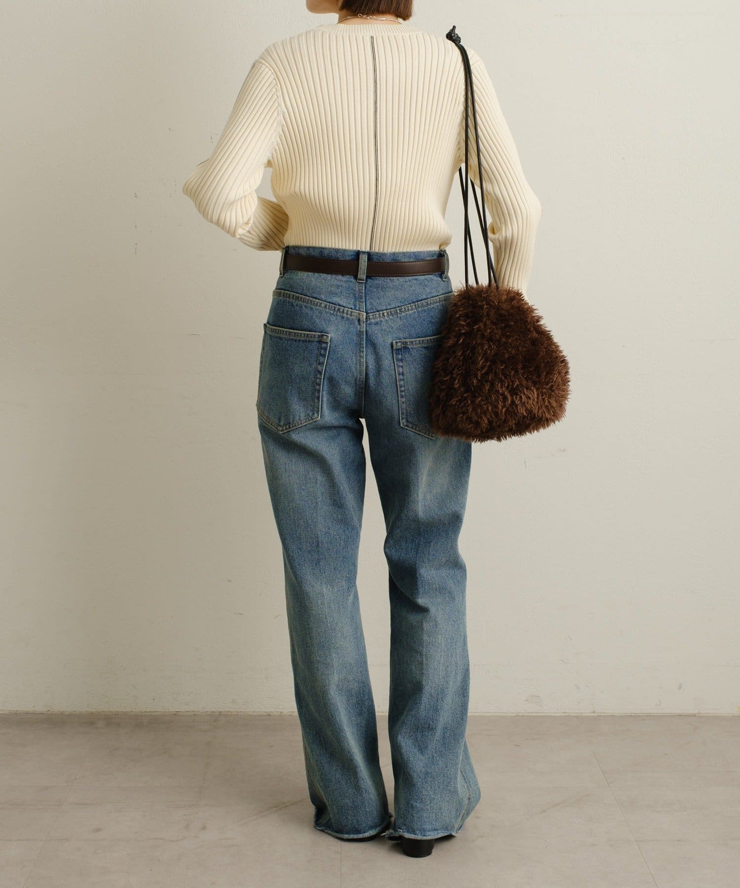 ・リブニット特有の「リブ編み」は伸縮性が高く、体にフィットしストレスフリーな着心地です。