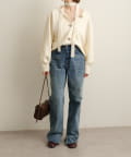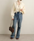 ・深めのVネックがデコルテラインをきれいに見せてくれて、カジュアルながらも女性らしい抜け感も◎