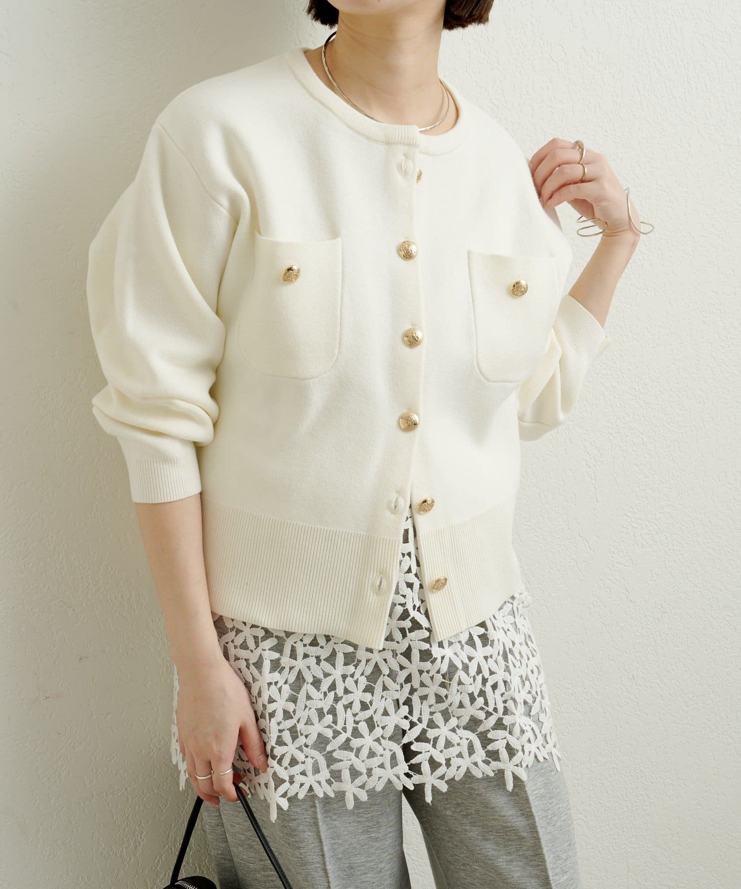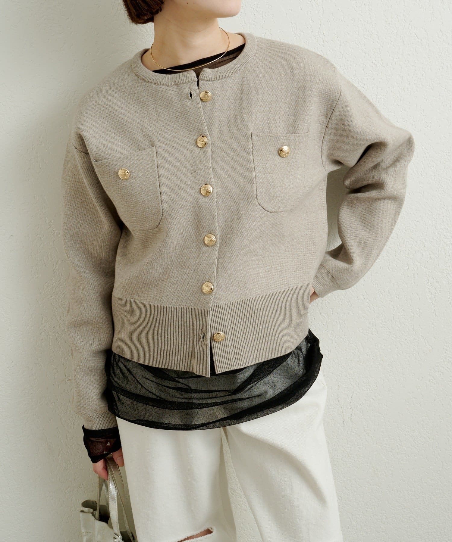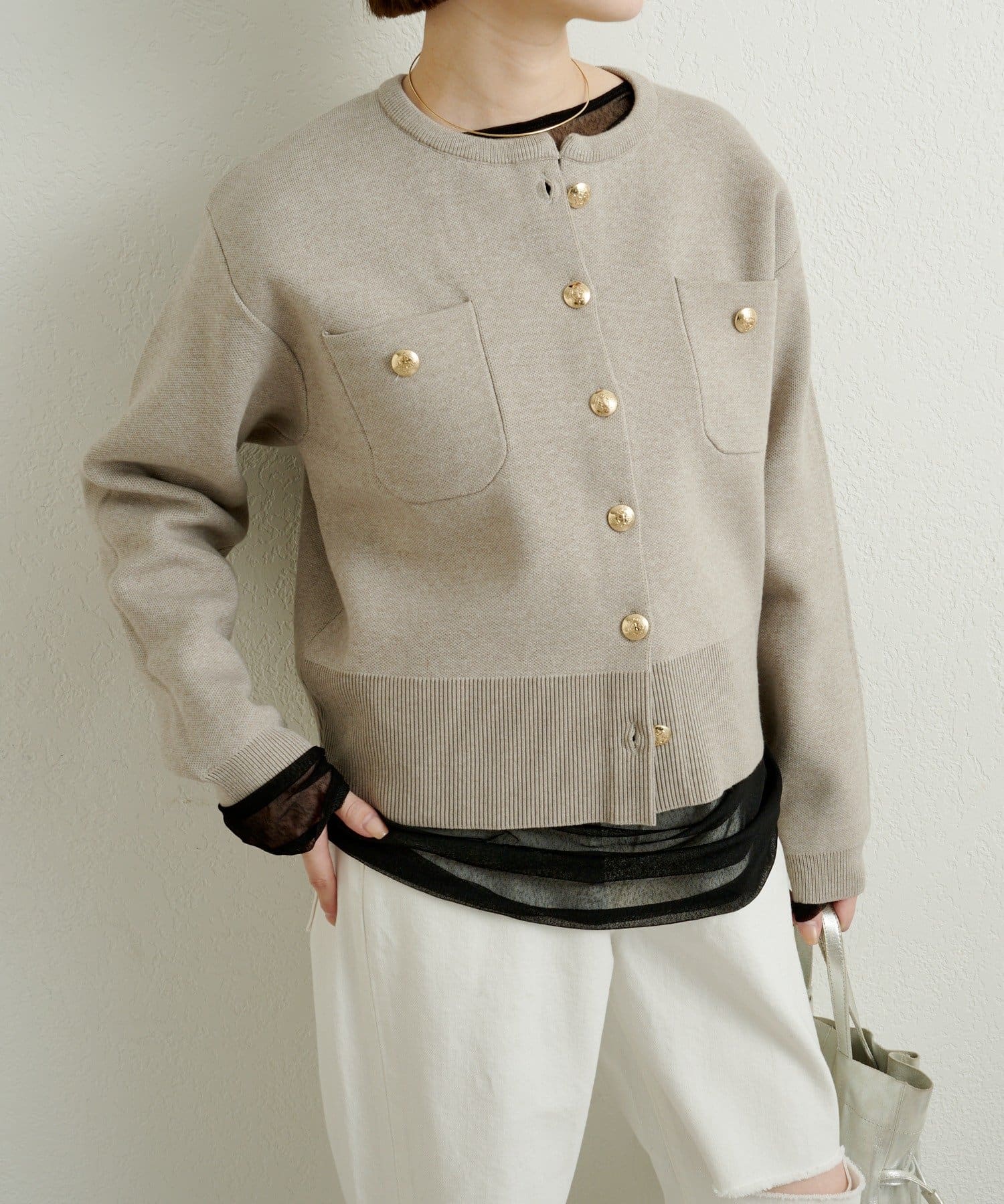 金ボタンがアクセントの上品カーディガン