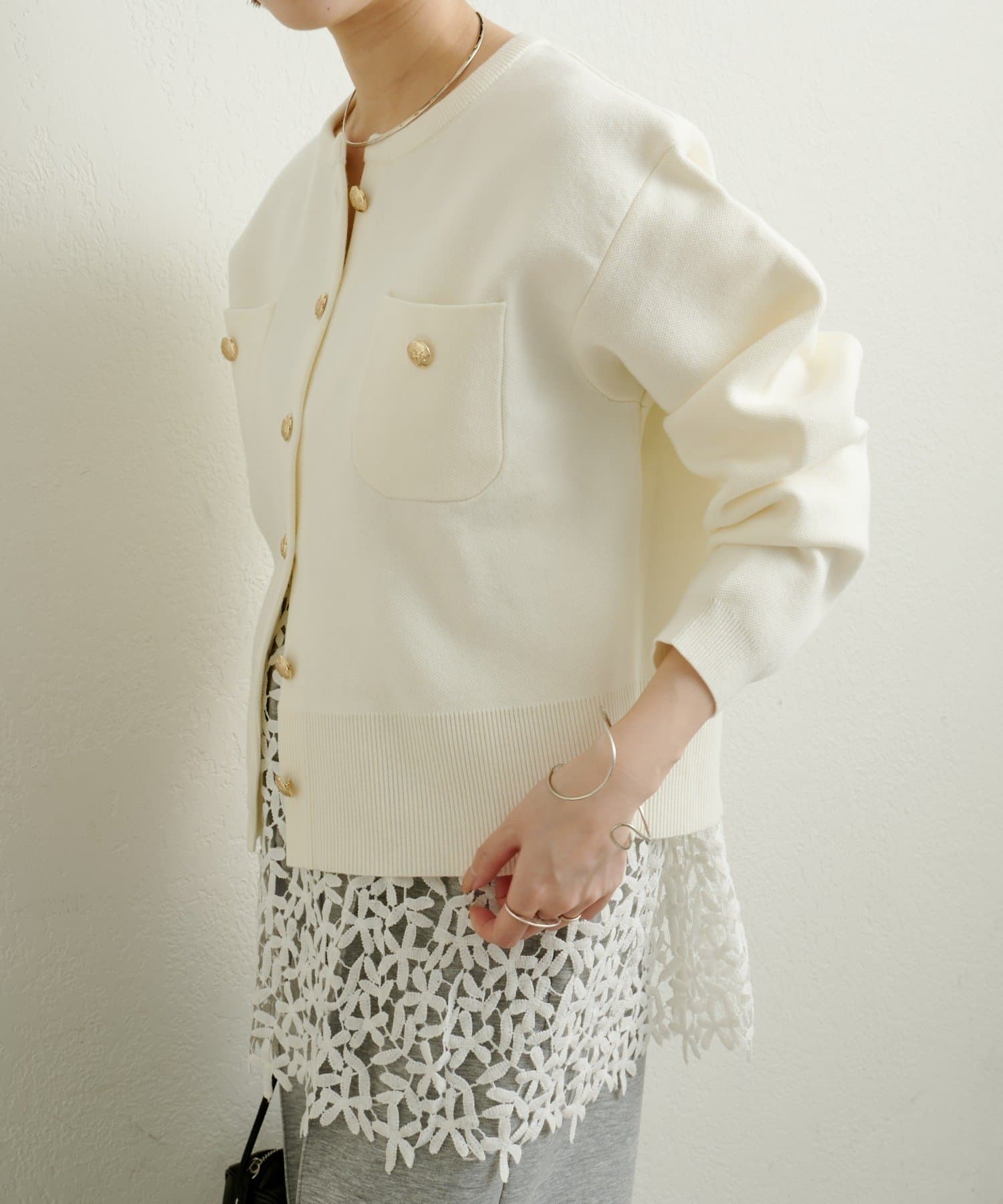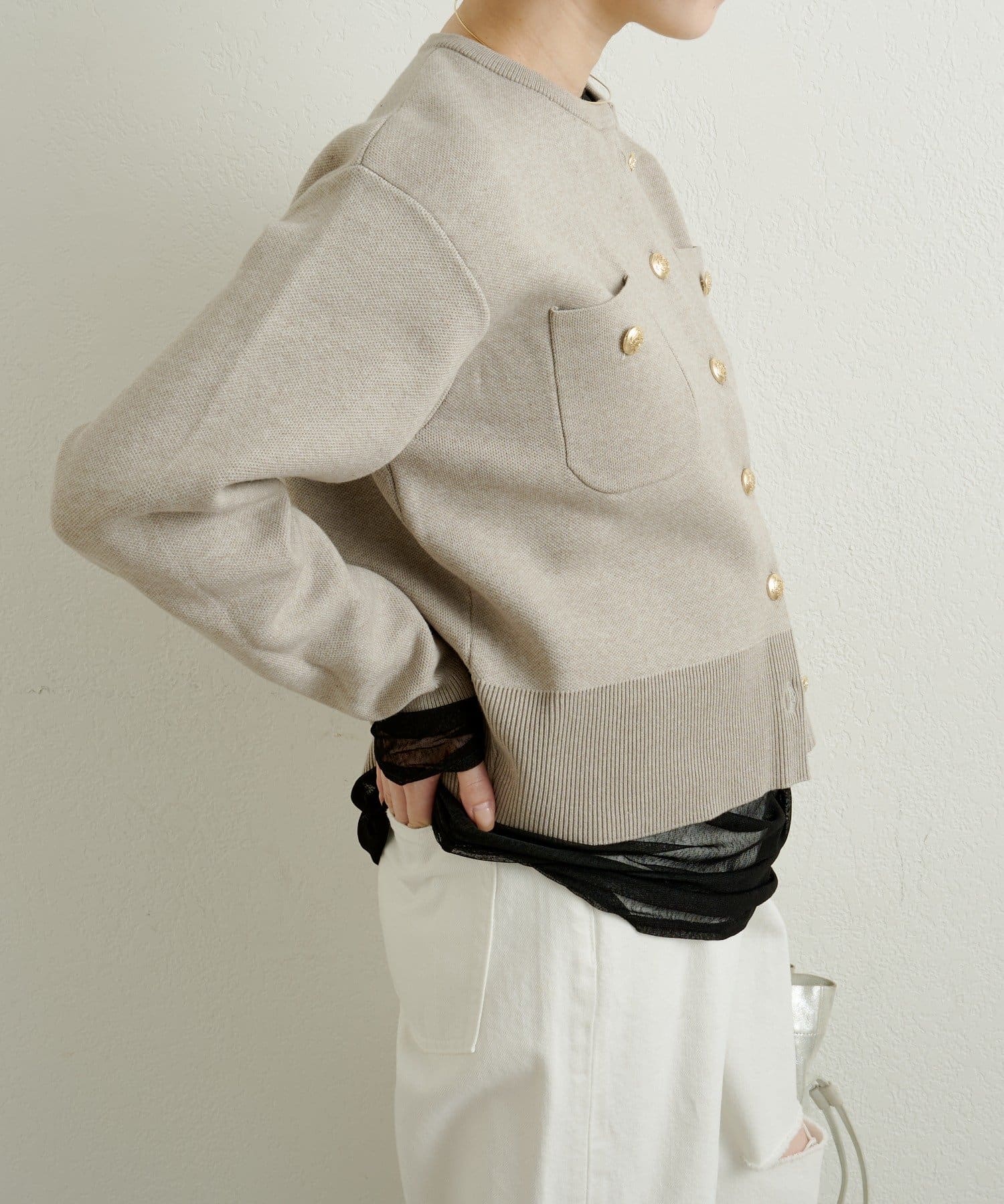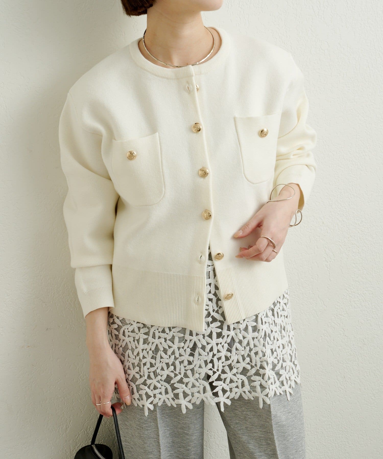 金ボタンがアクセントの上品カーディガン