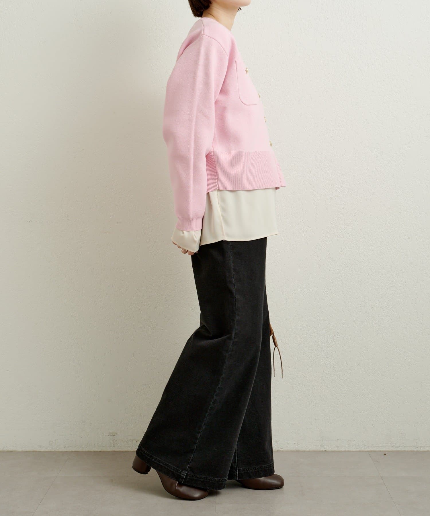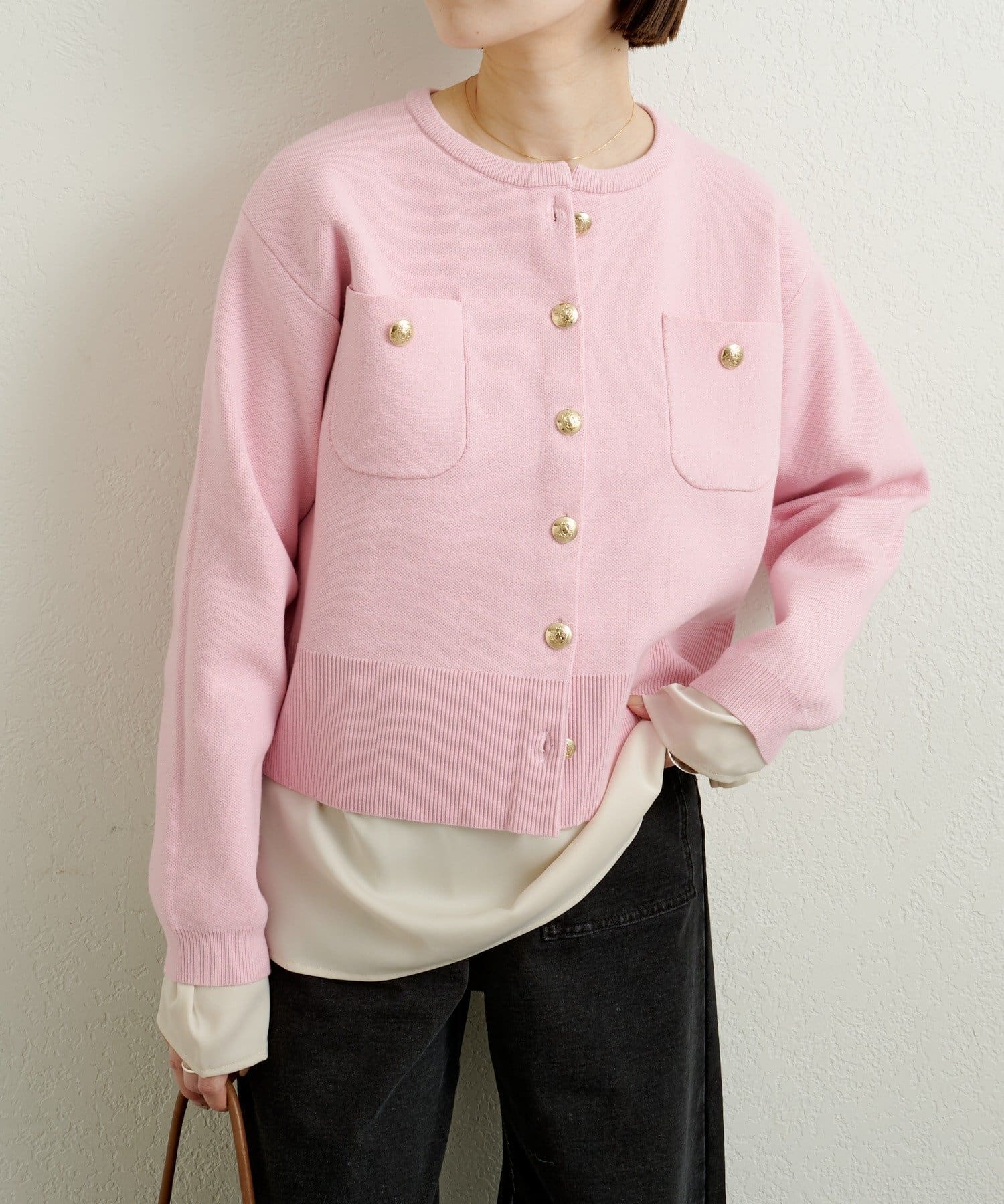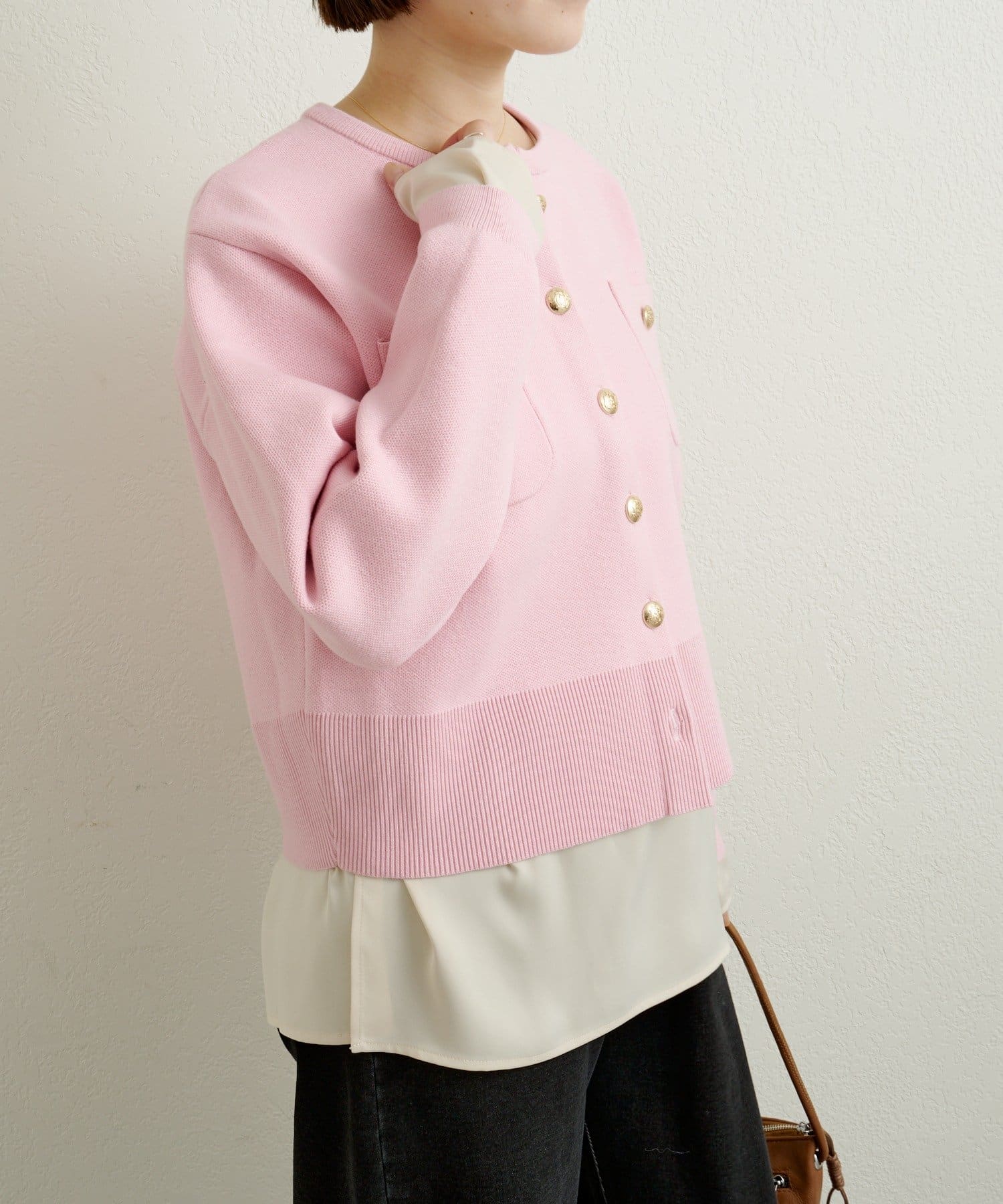 【新色追加/オフホワイト・グレー・ピンク】スウェットライクボタンカーディガン