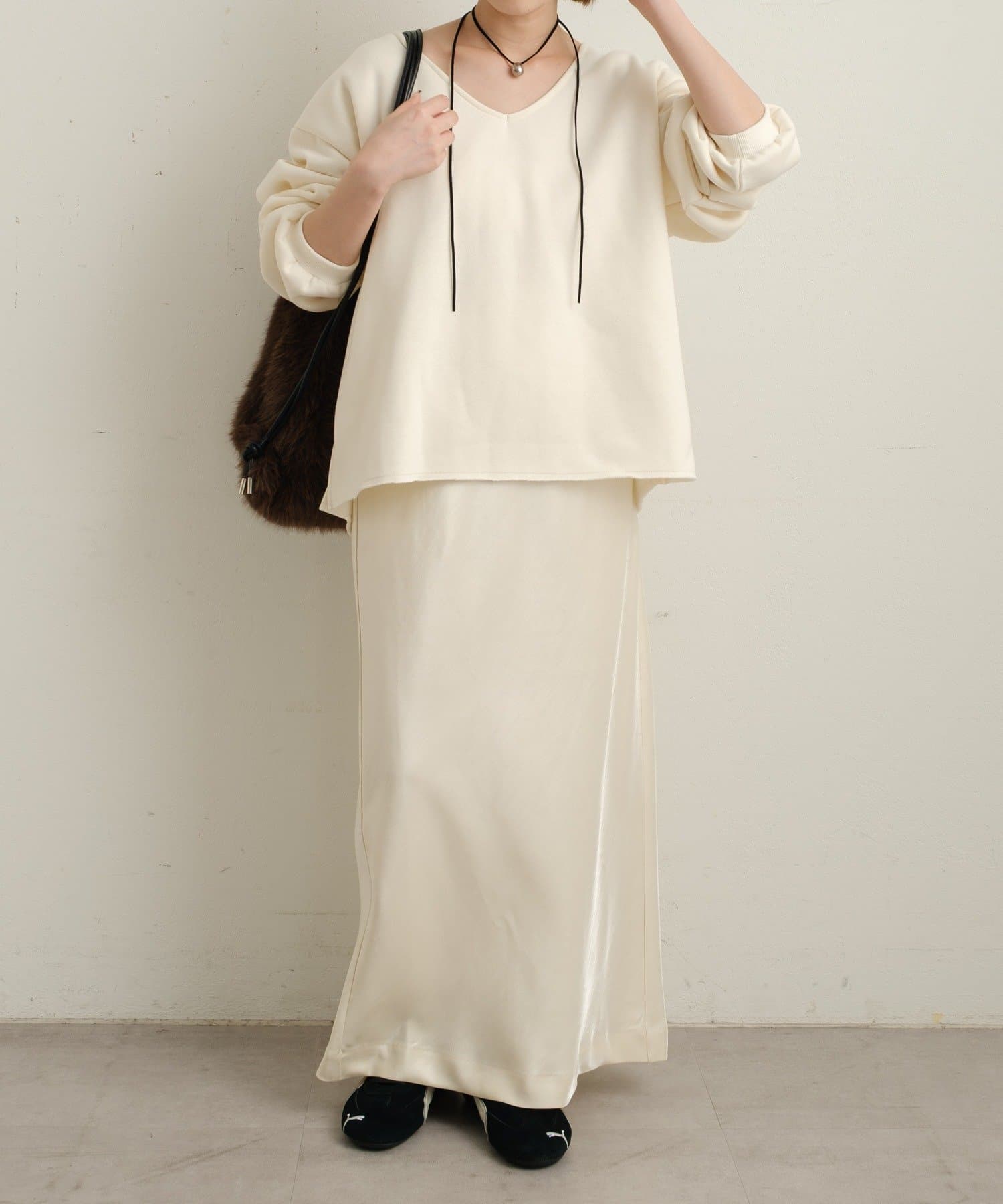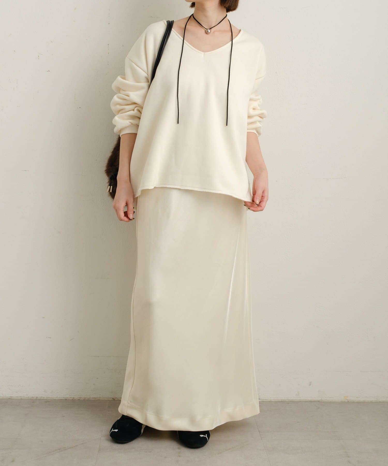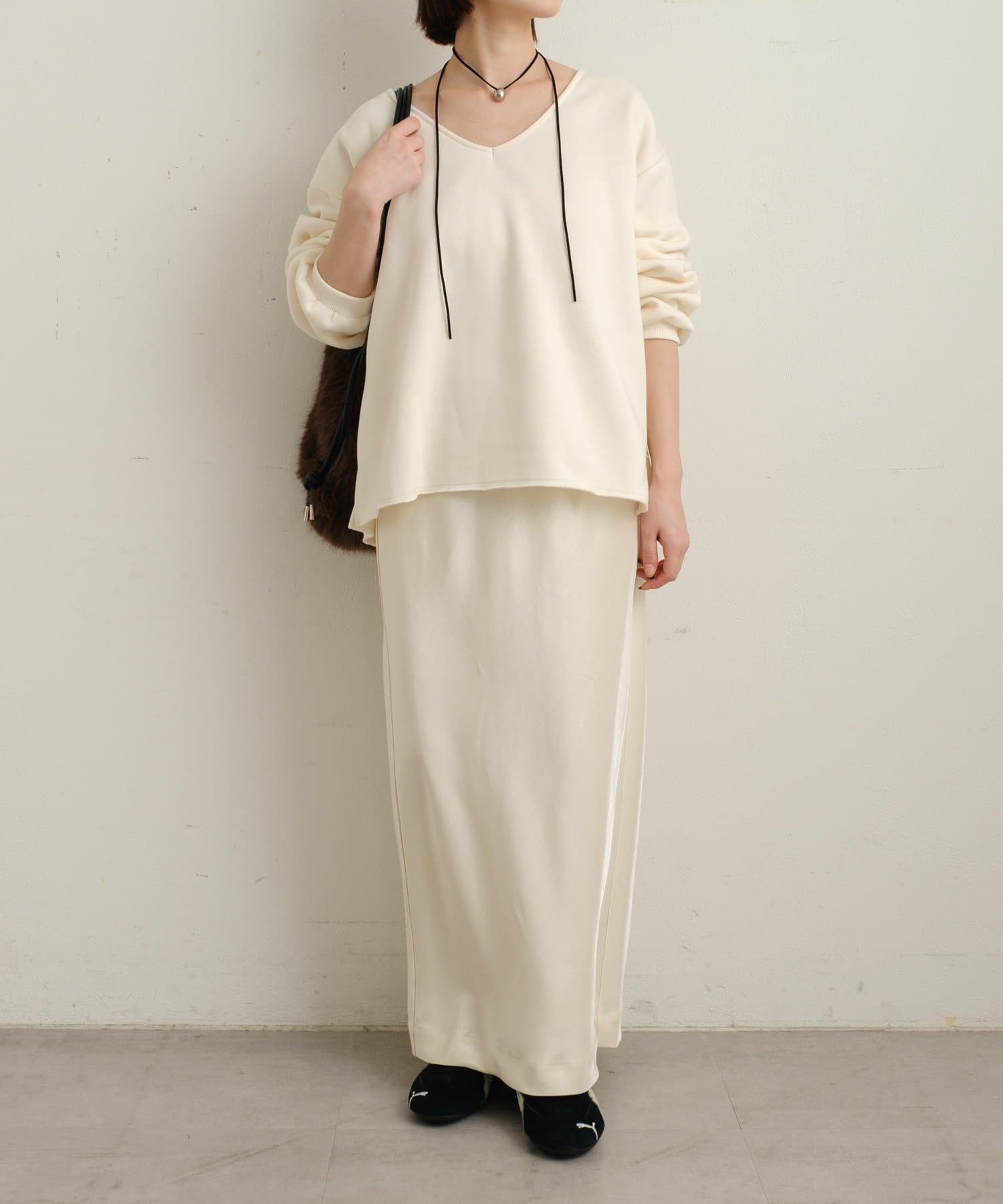 【オフホワイト】サテンイージースカート