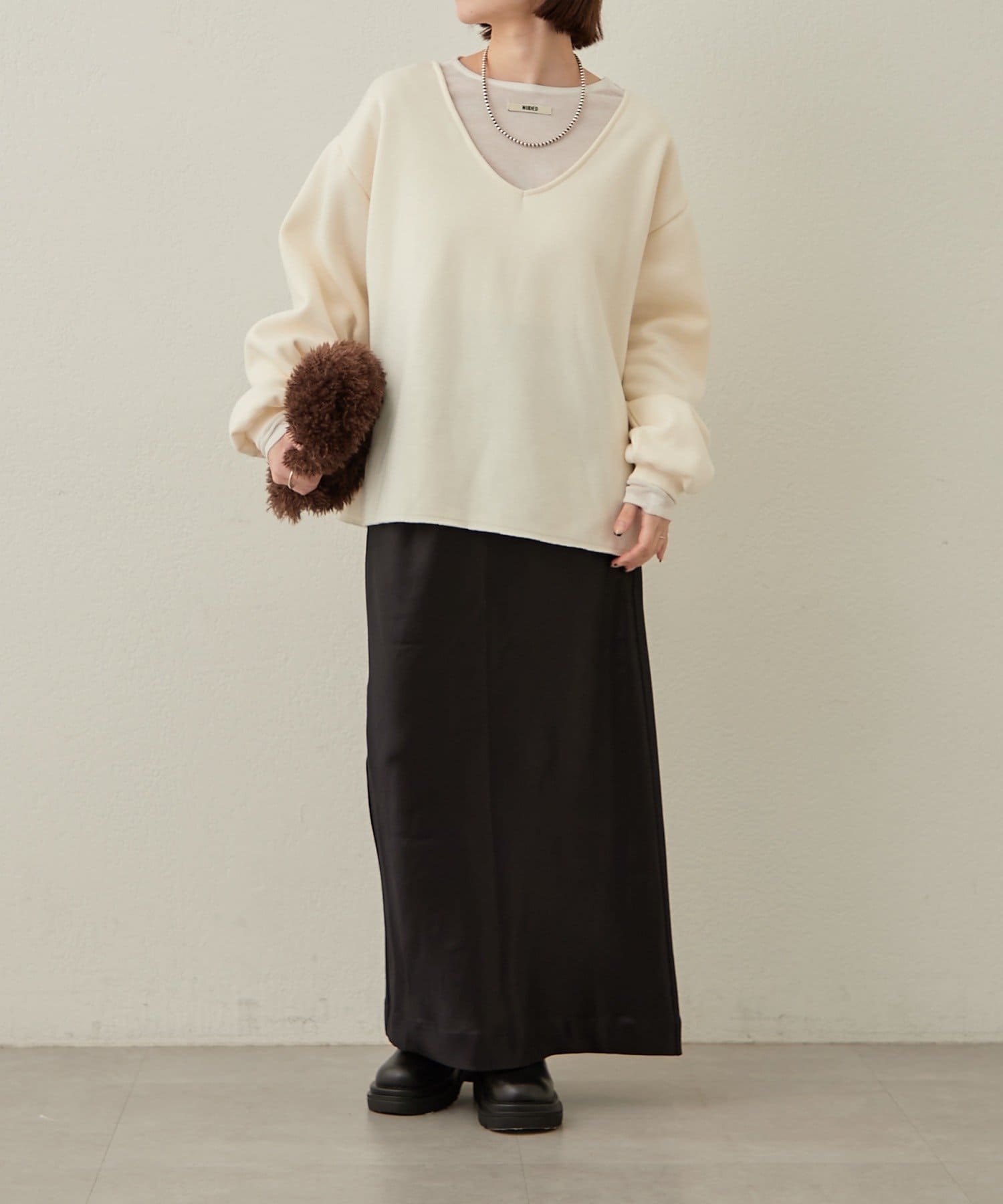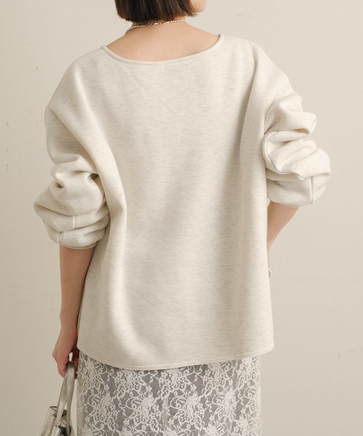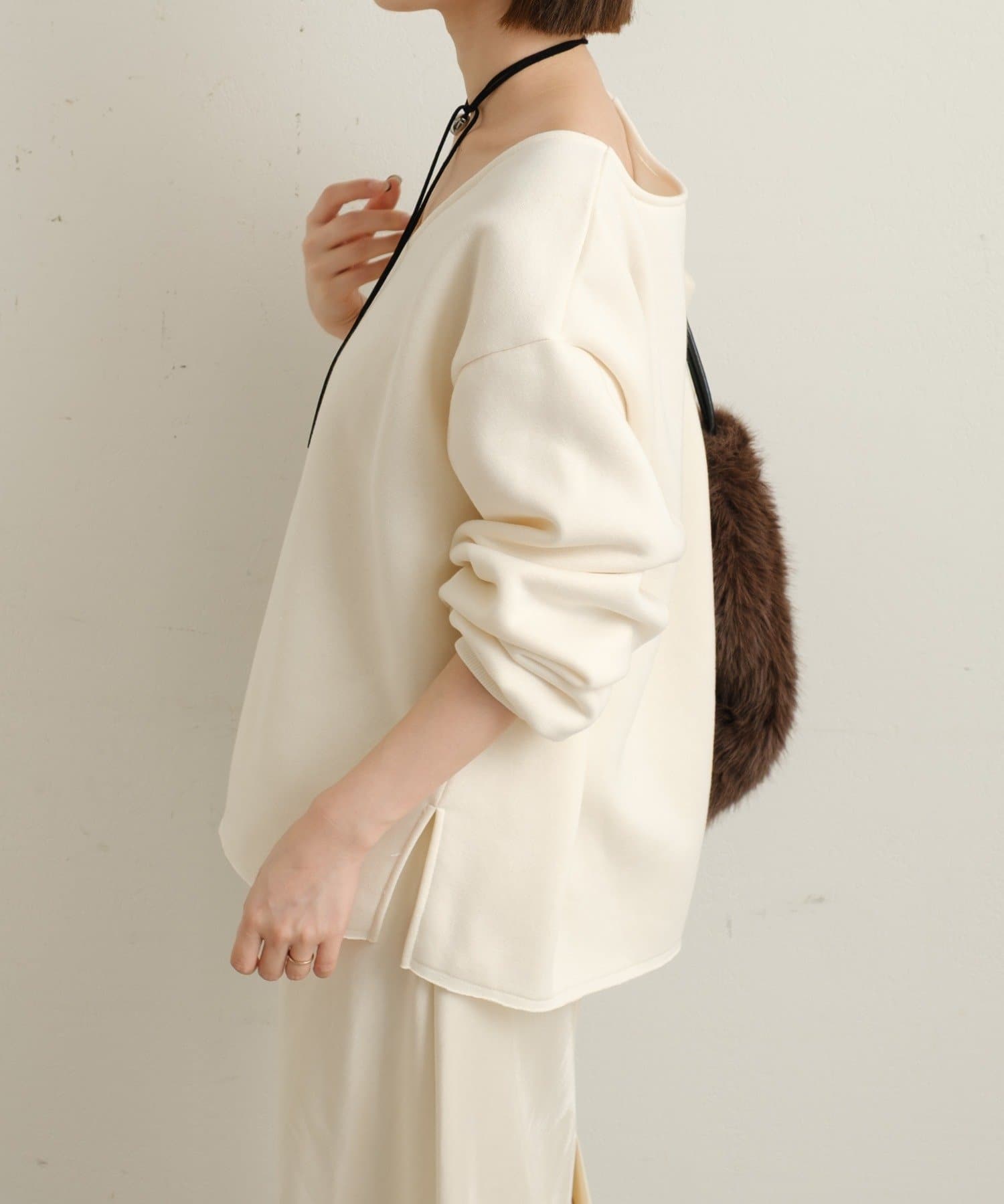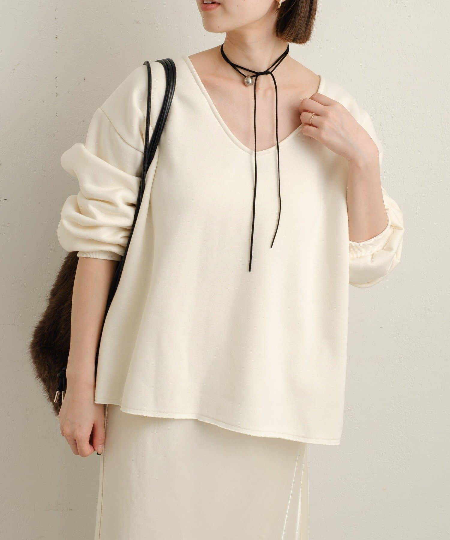 ・深めのVネックが顔周りをスッキリ見せてくれるルーズVネックスウェット。
