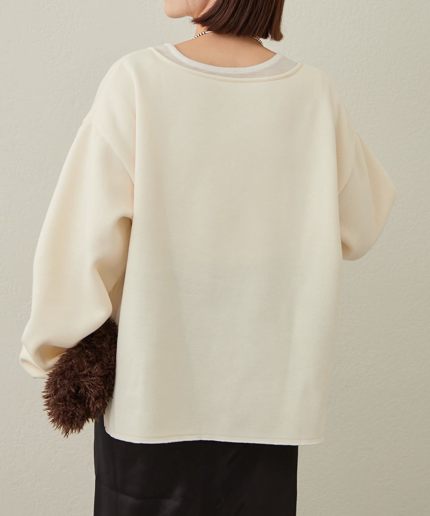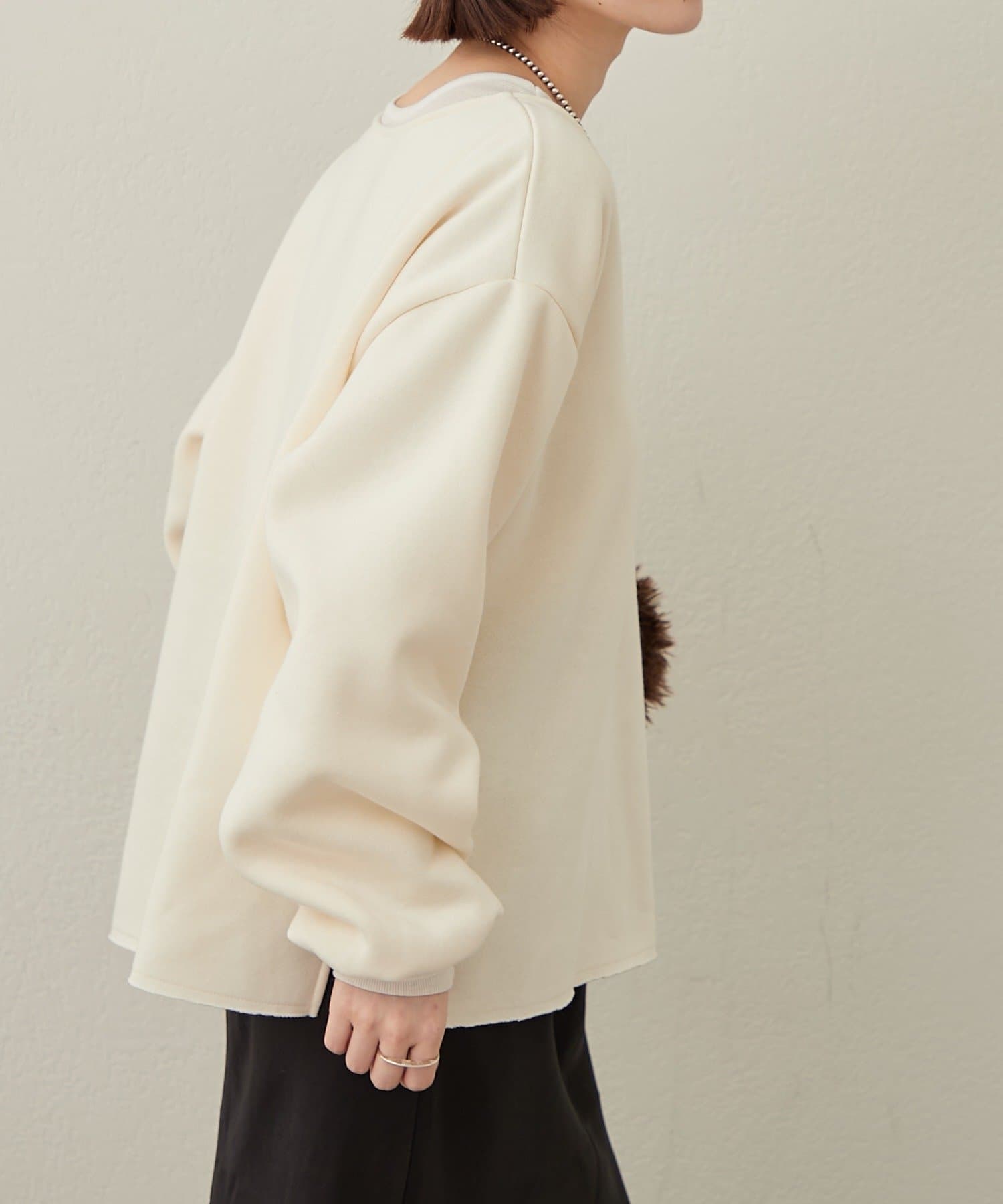 ・裏起毛で暖かく、もっちりとした肌触りが着心地の良い一枚。