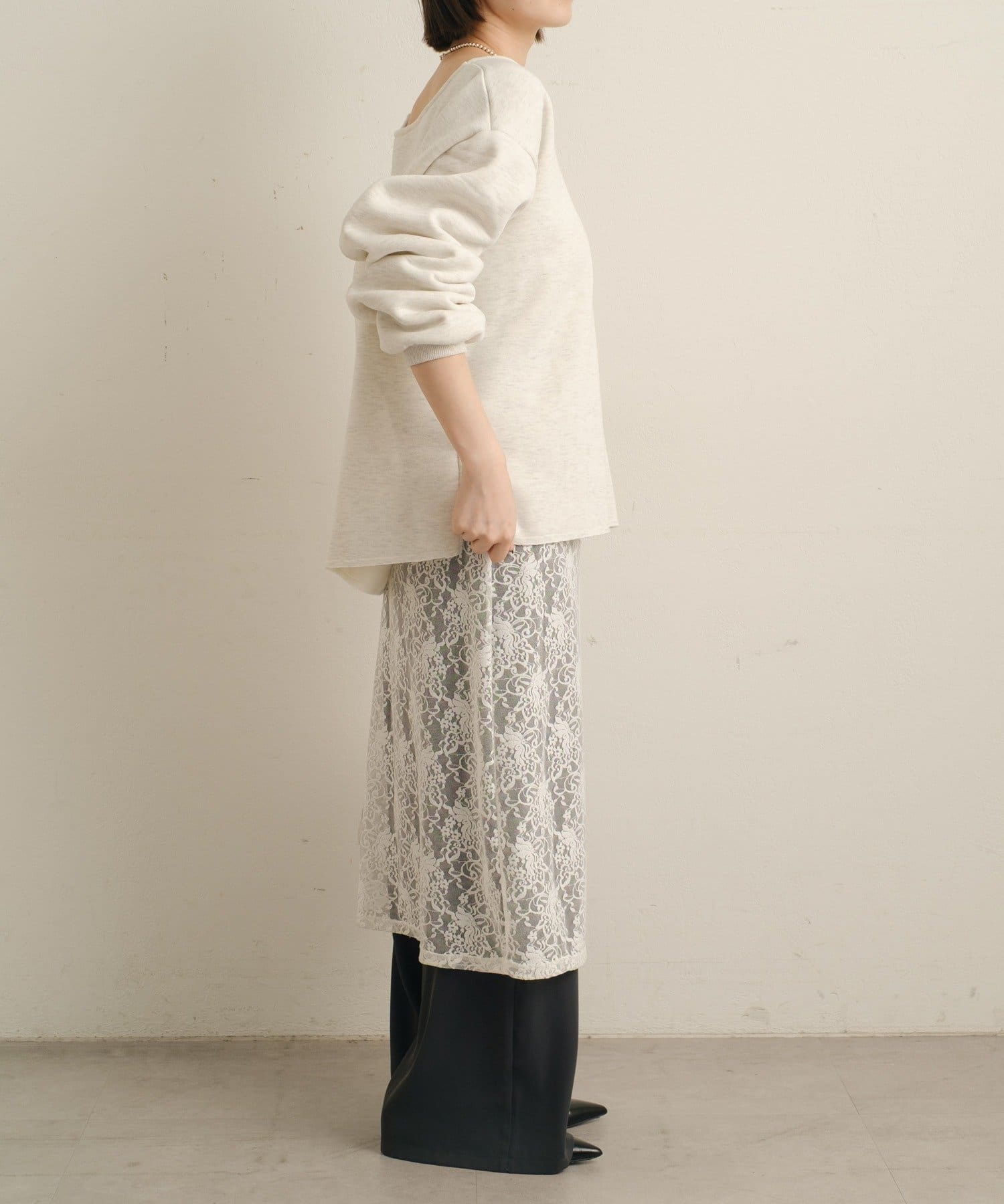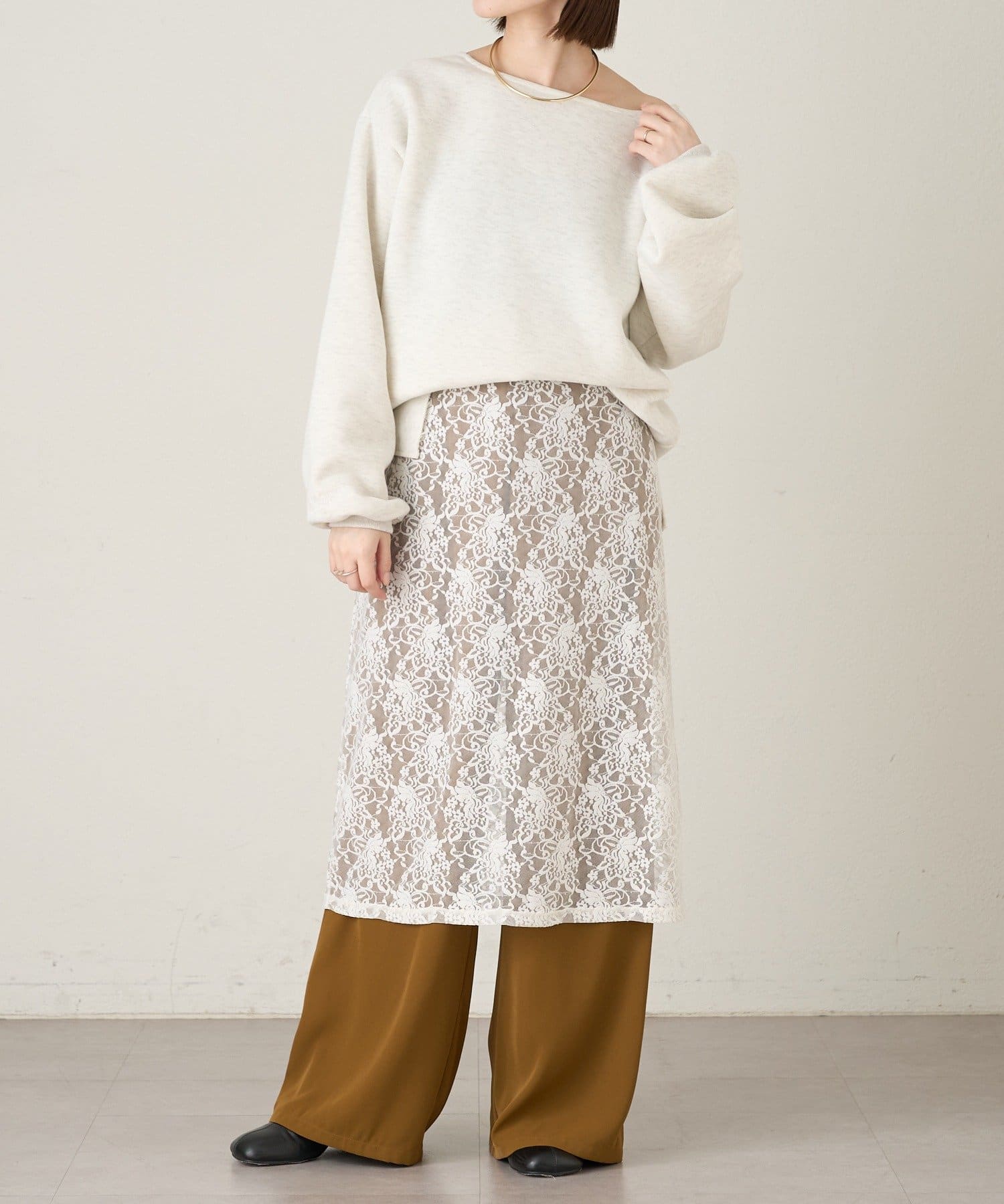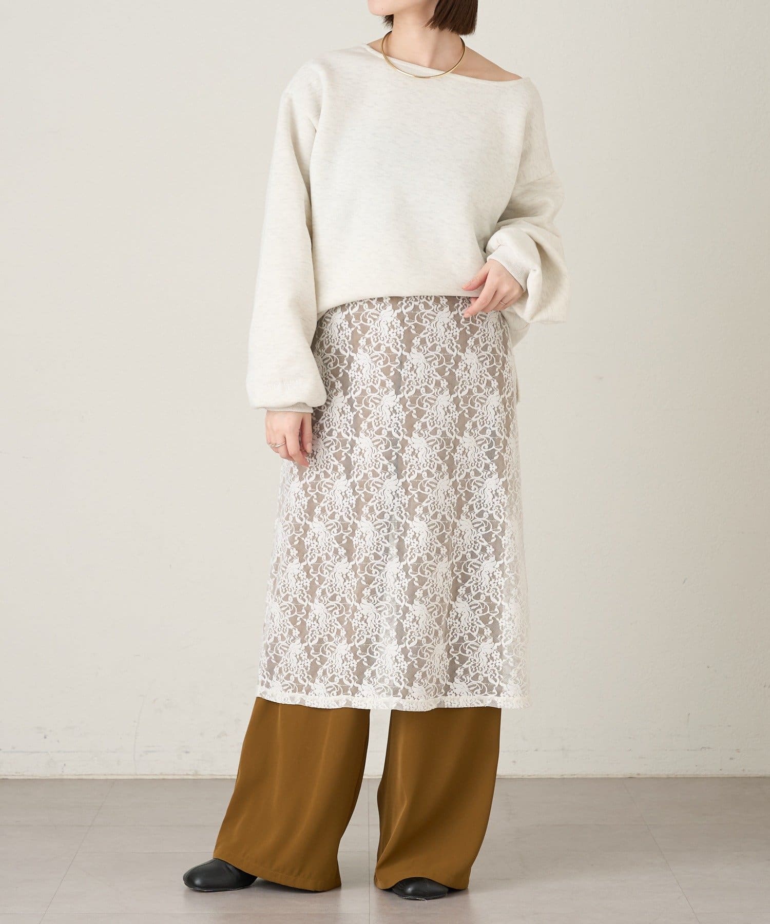 【アイボリー】ストレッチレーススカート