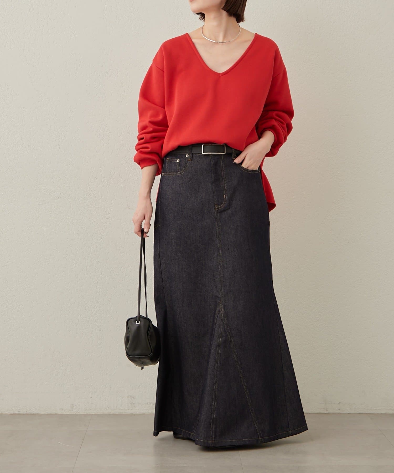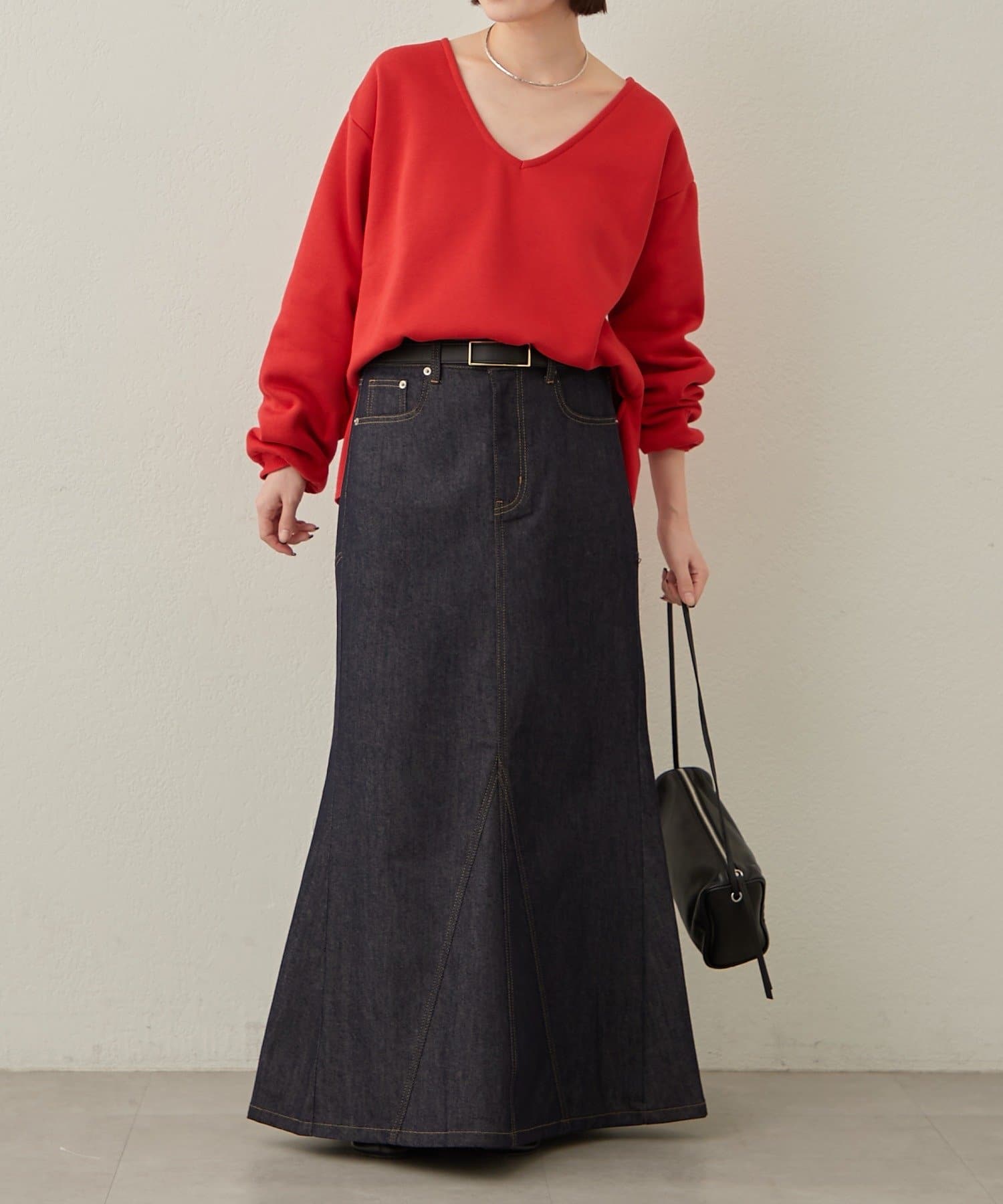 【レッド】デニムマーメイドスカート