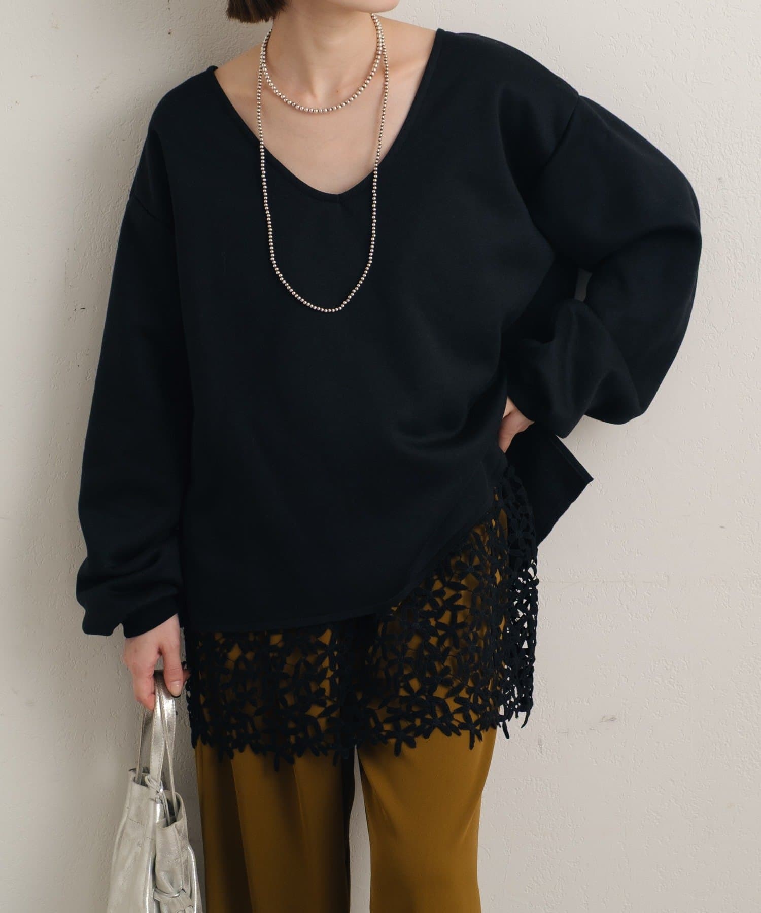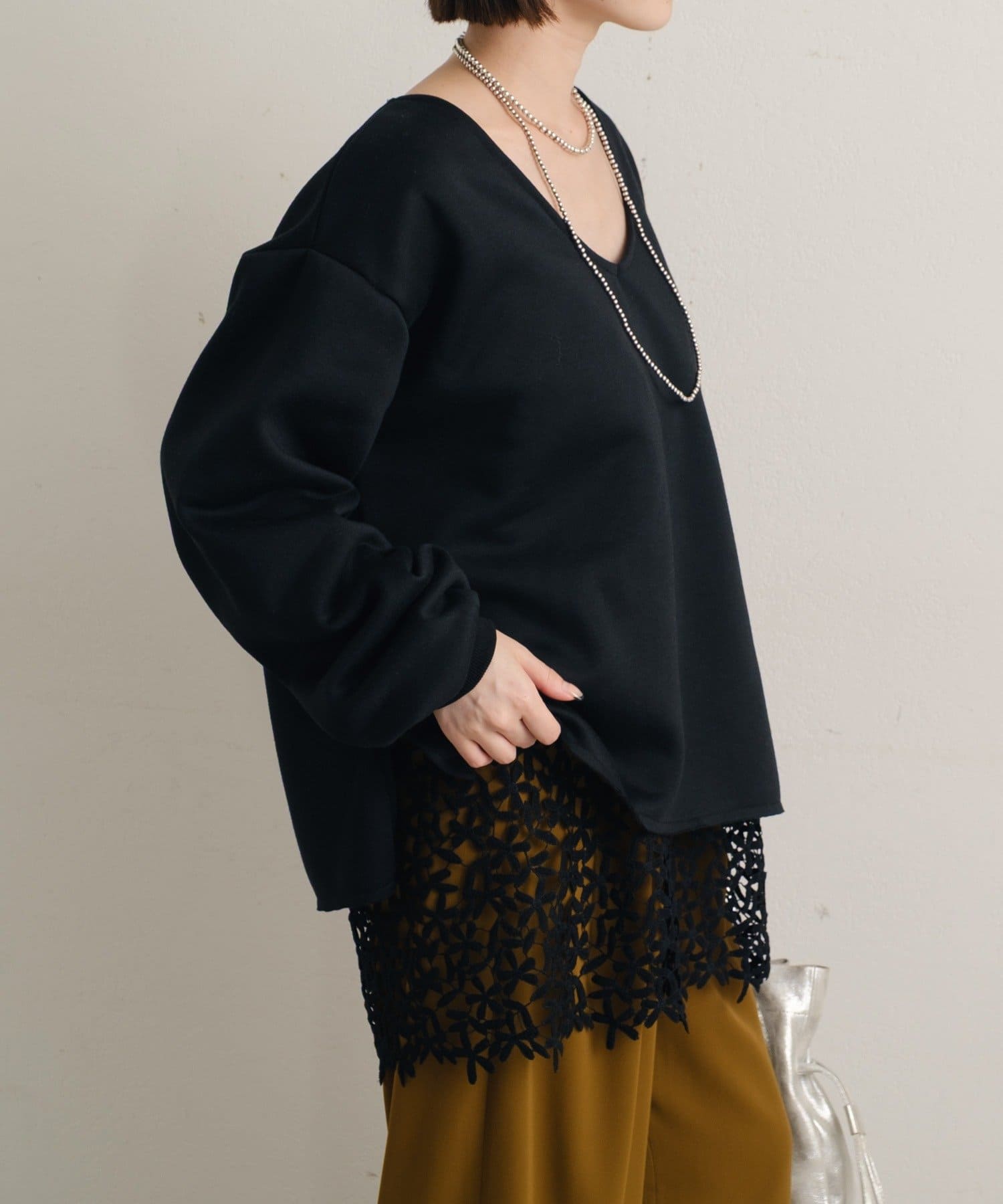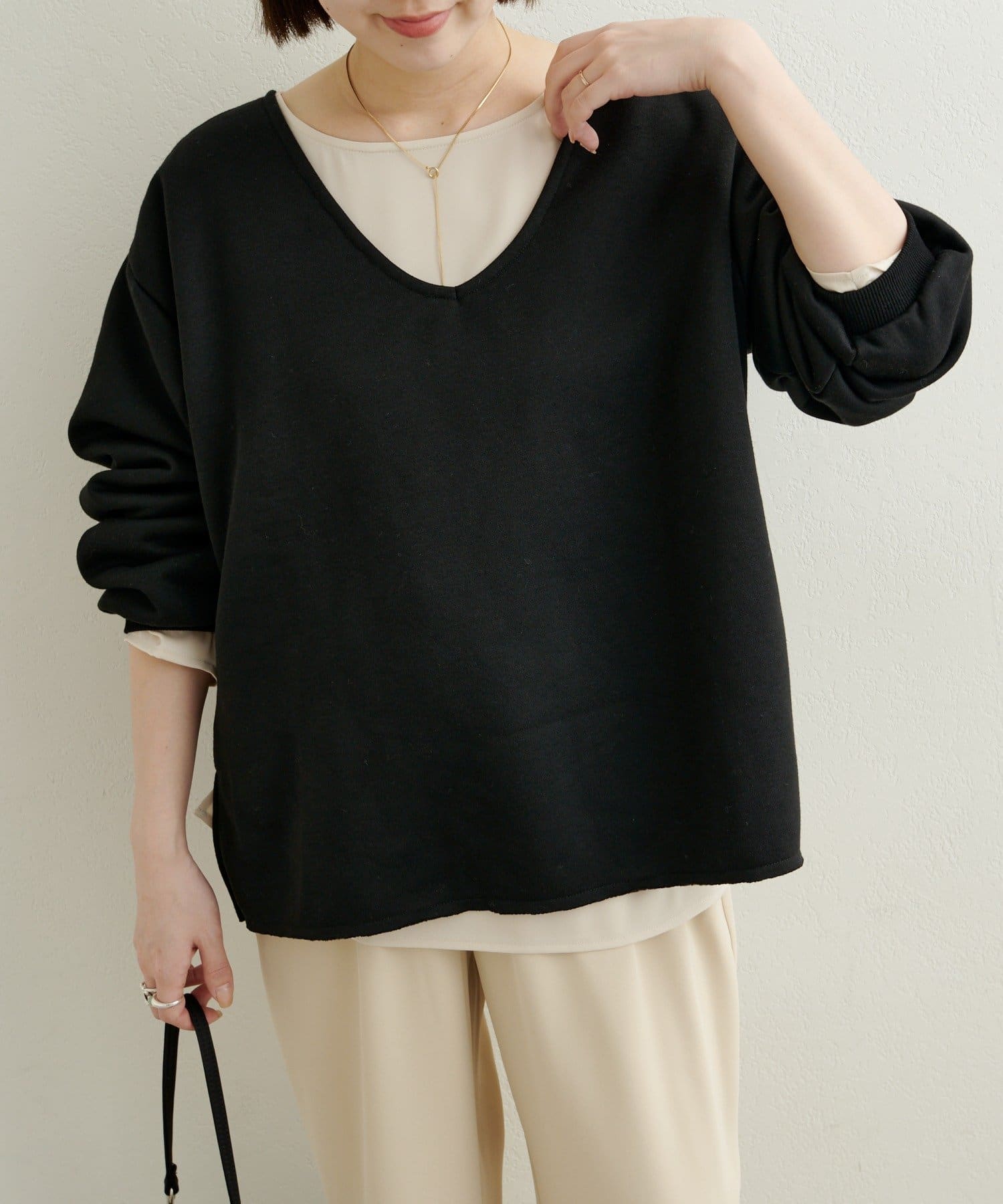 ・深めのVネックが顔周りをスッキリ見せてくれるルーズVネックスウェット。