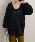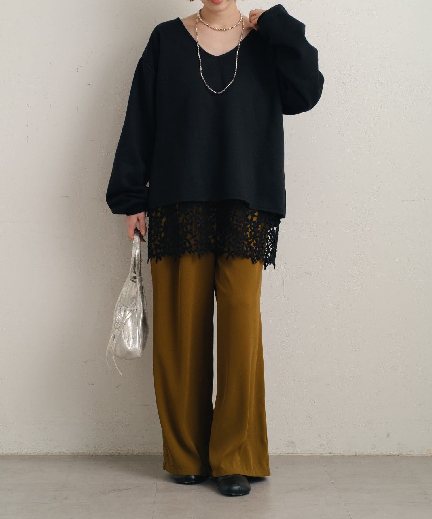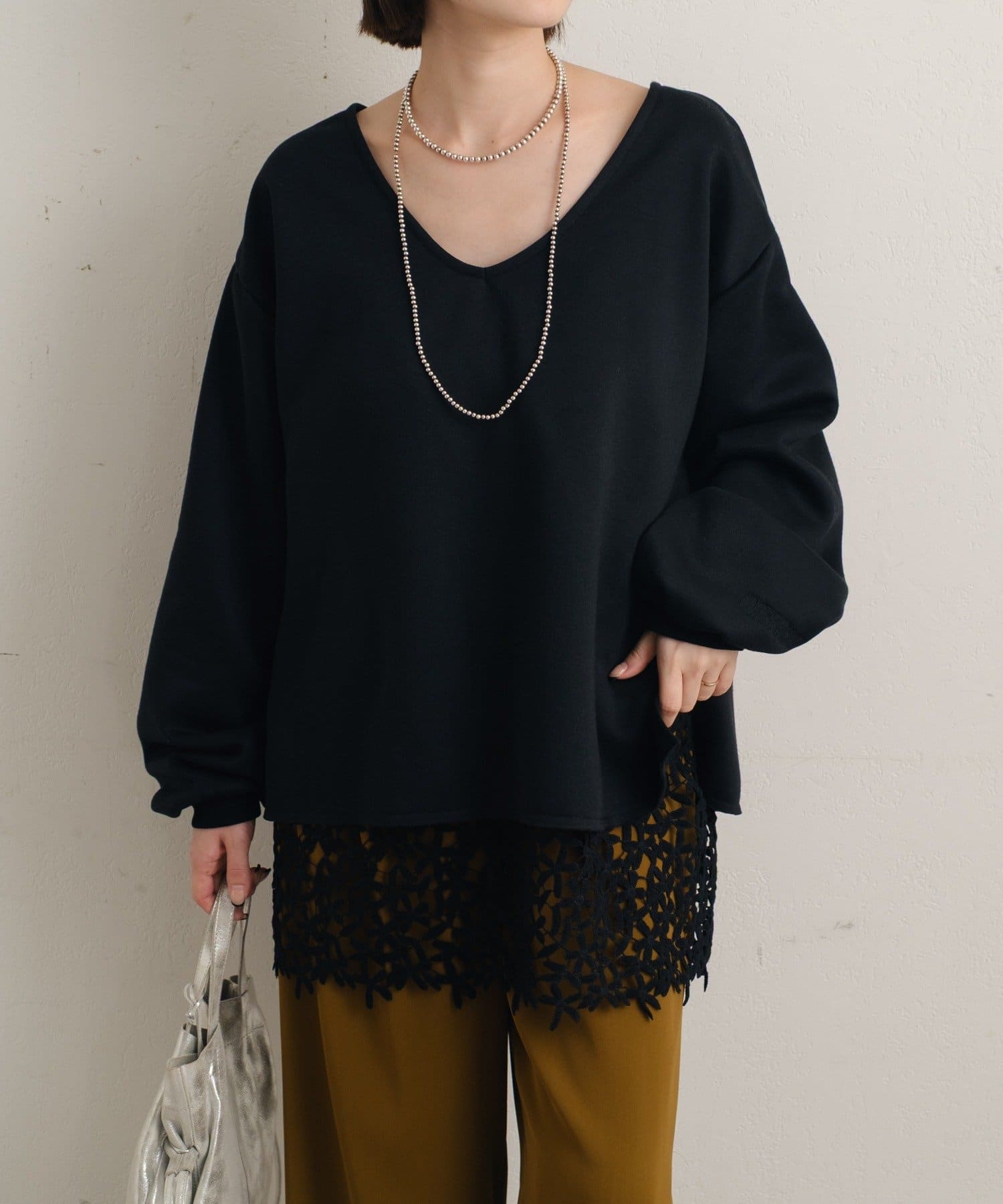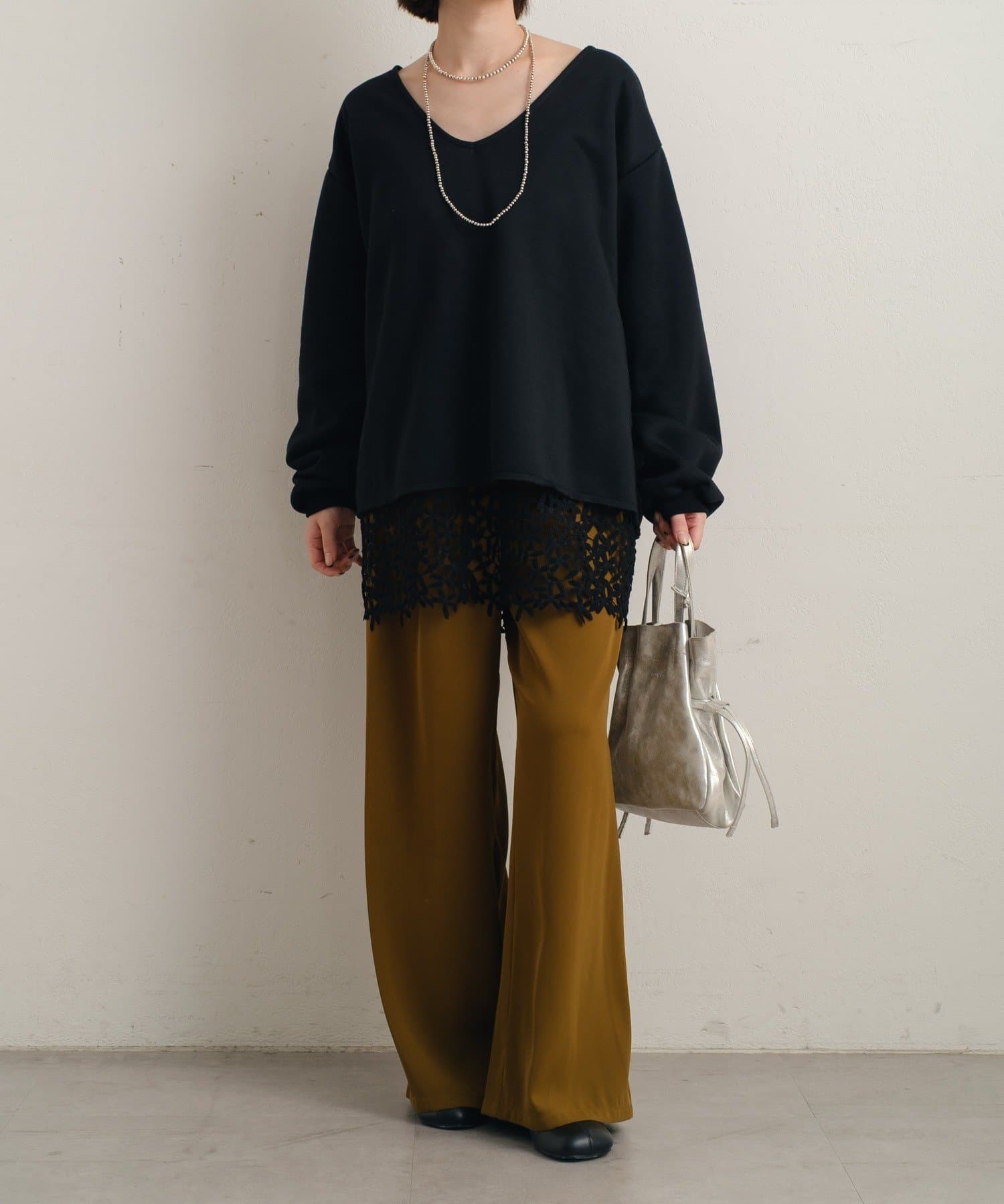 ・深めのVネックが顔周りをスッキリ見せてくれるルーズVネックスウェット。