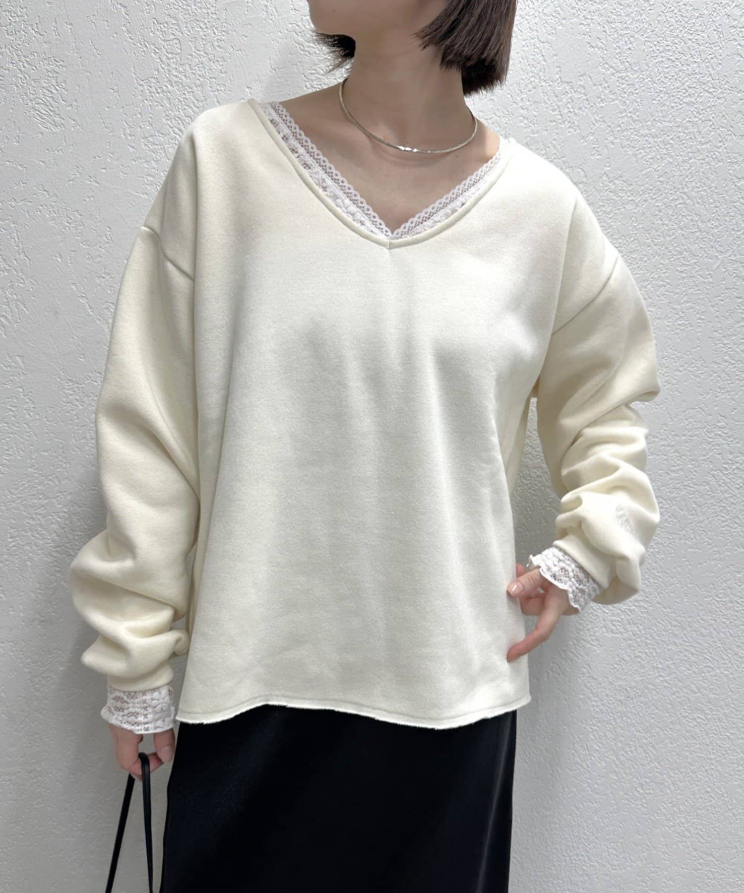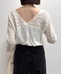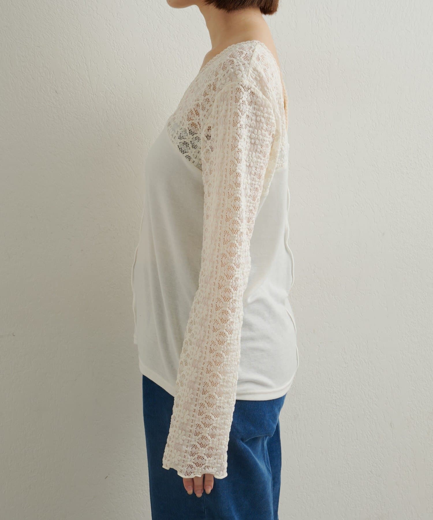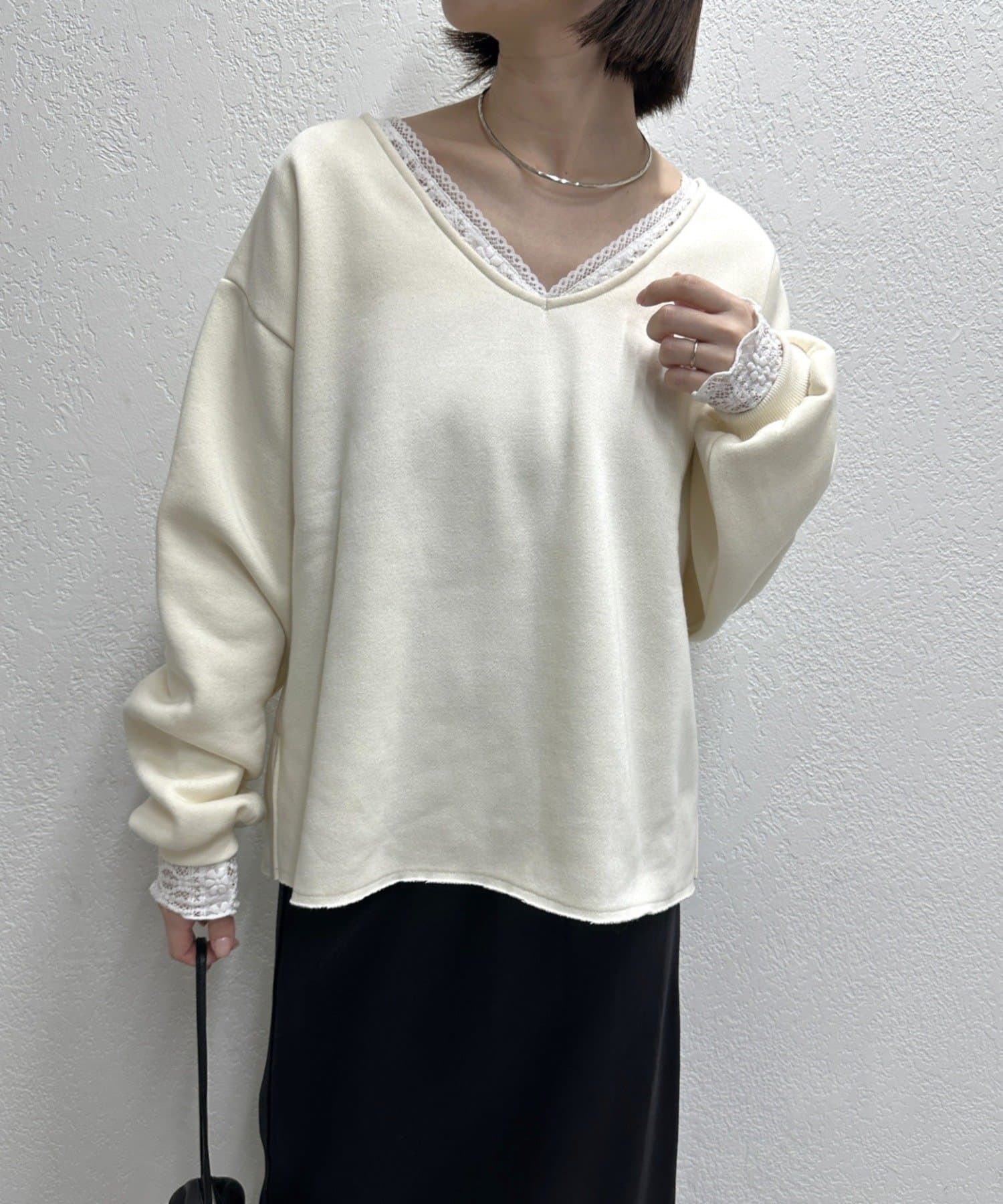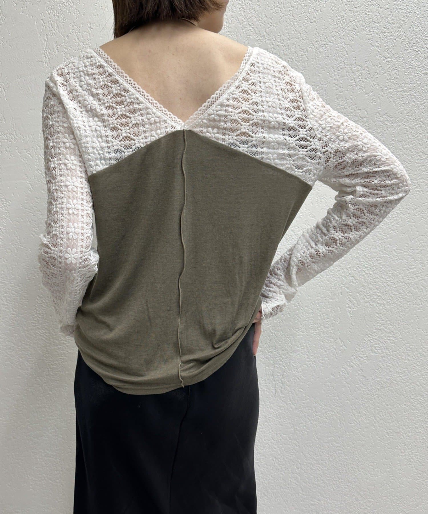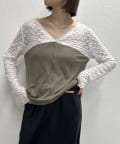 ・首回りのレース素材が女性らしいニットソー