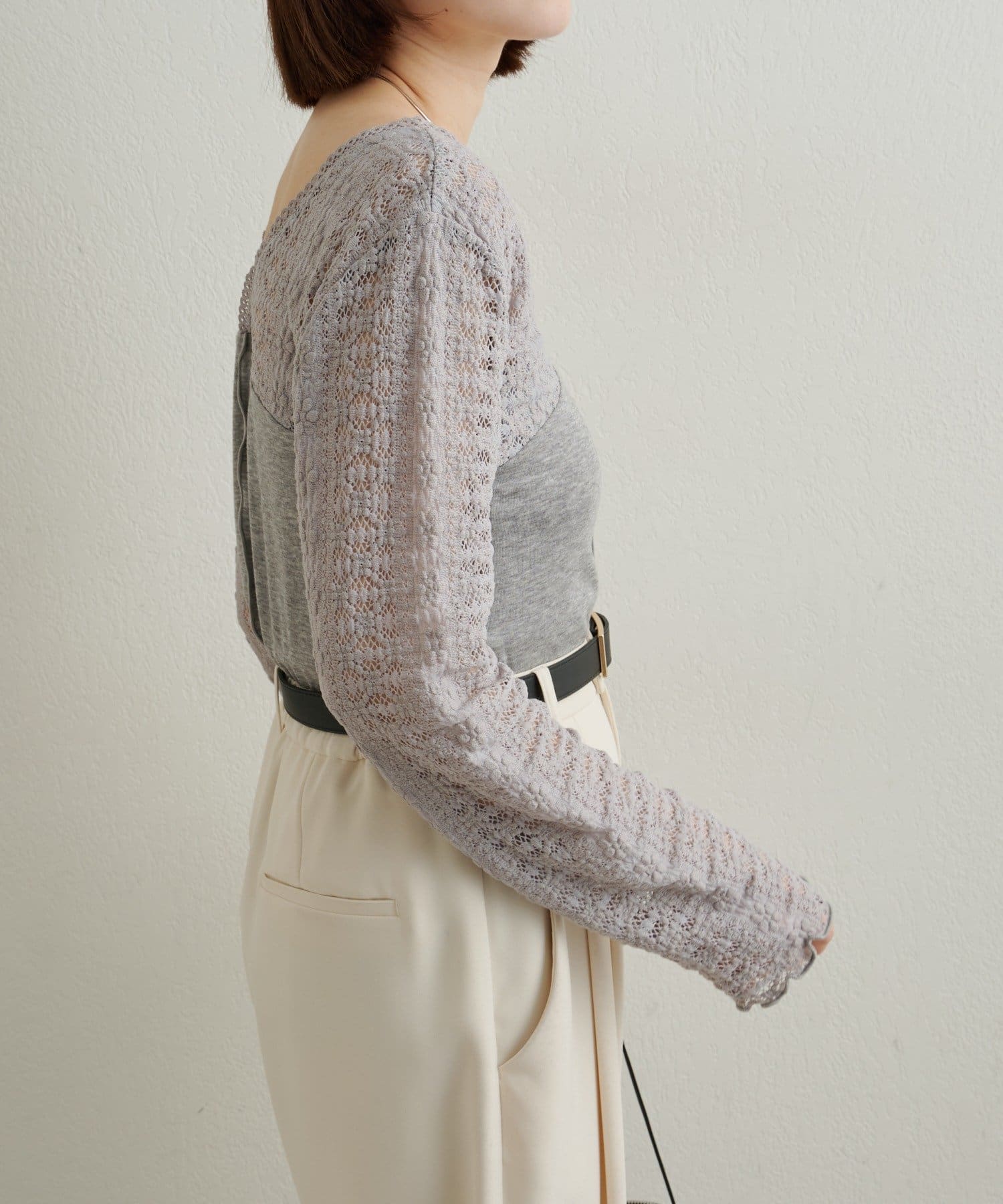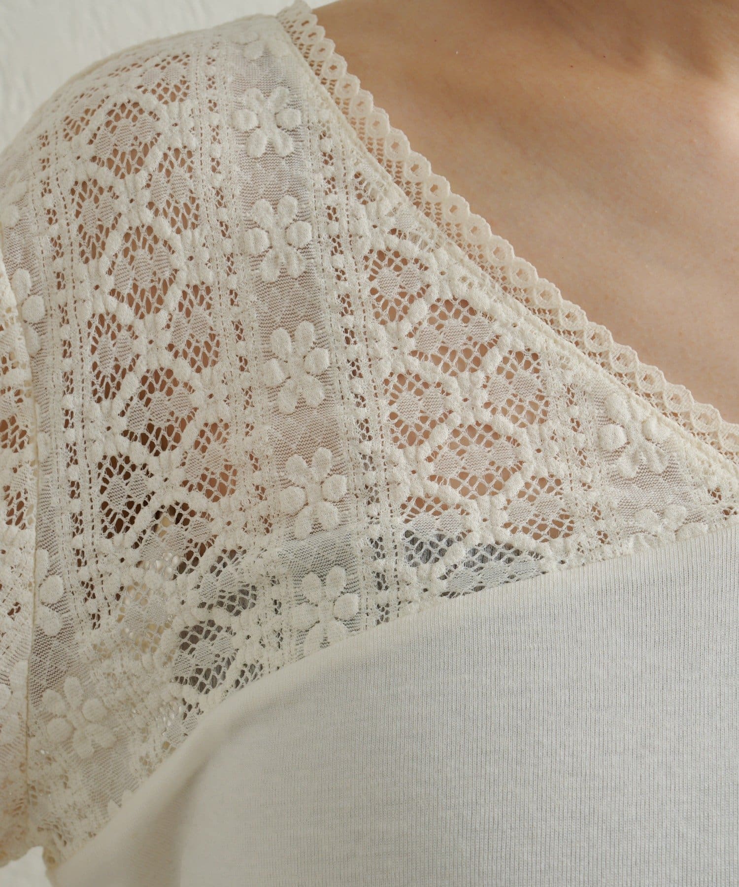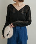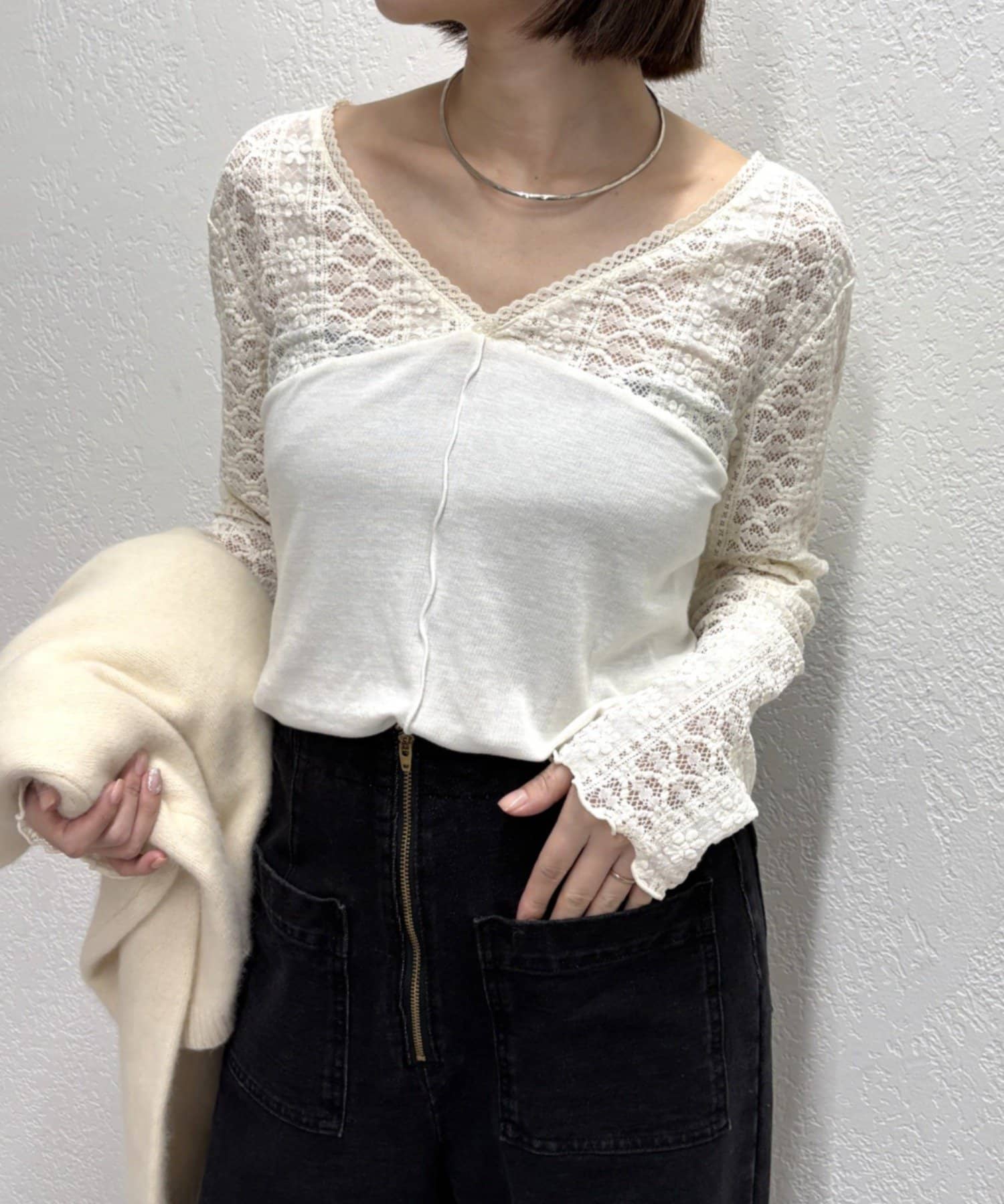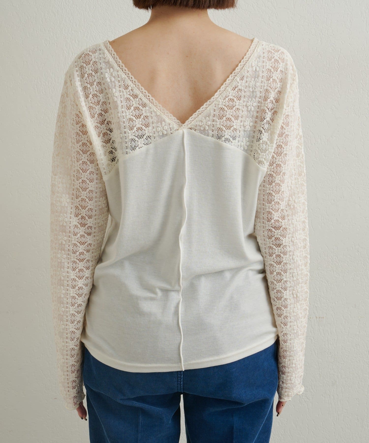 ・首回りのレース素材が女性らしいニットソー