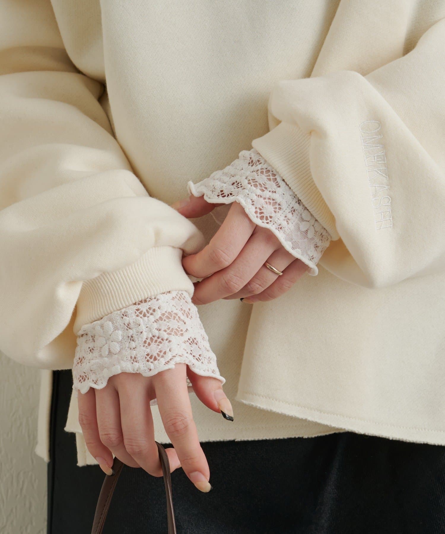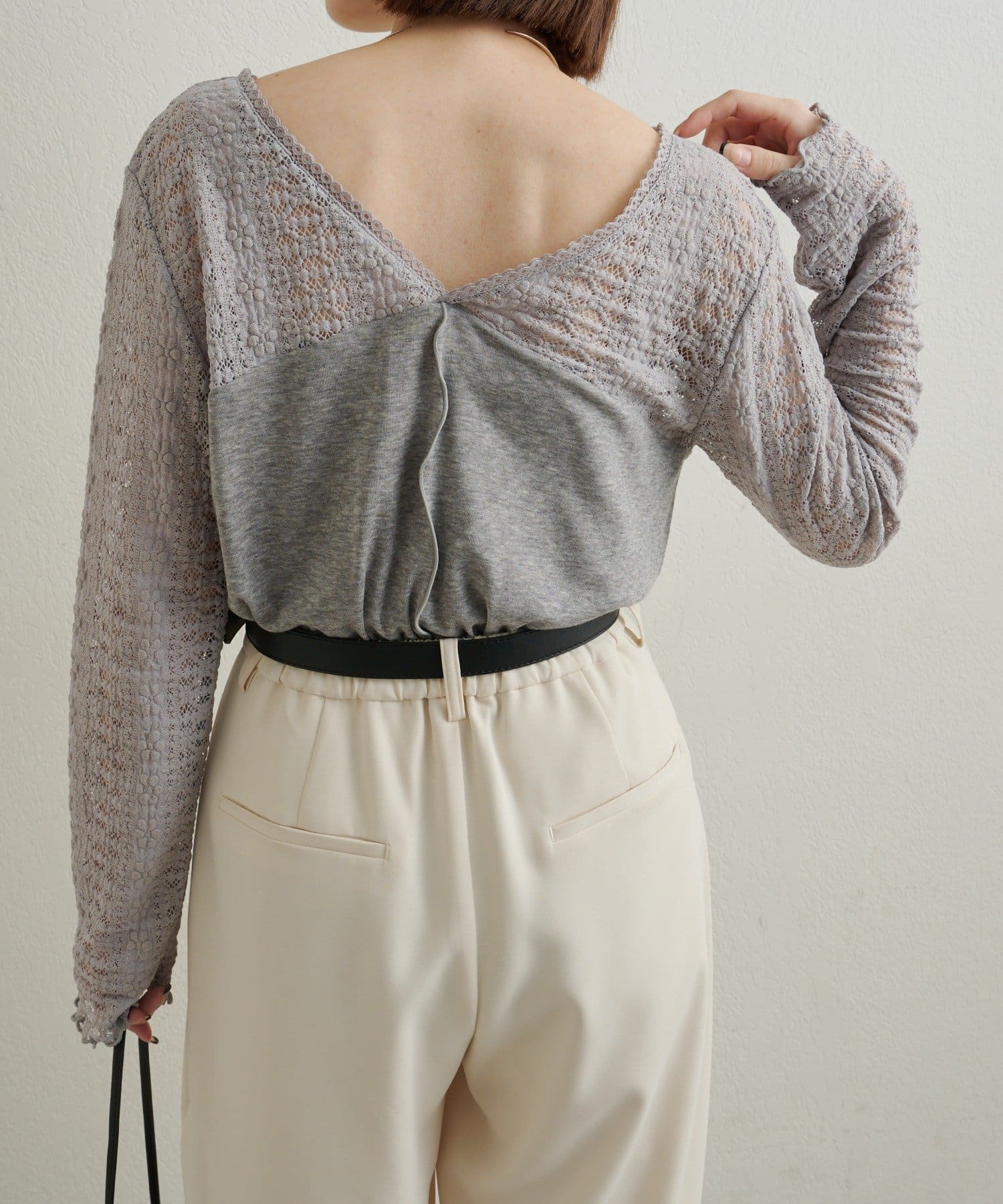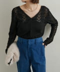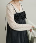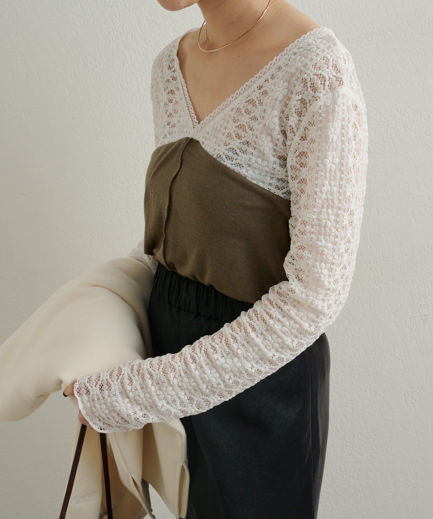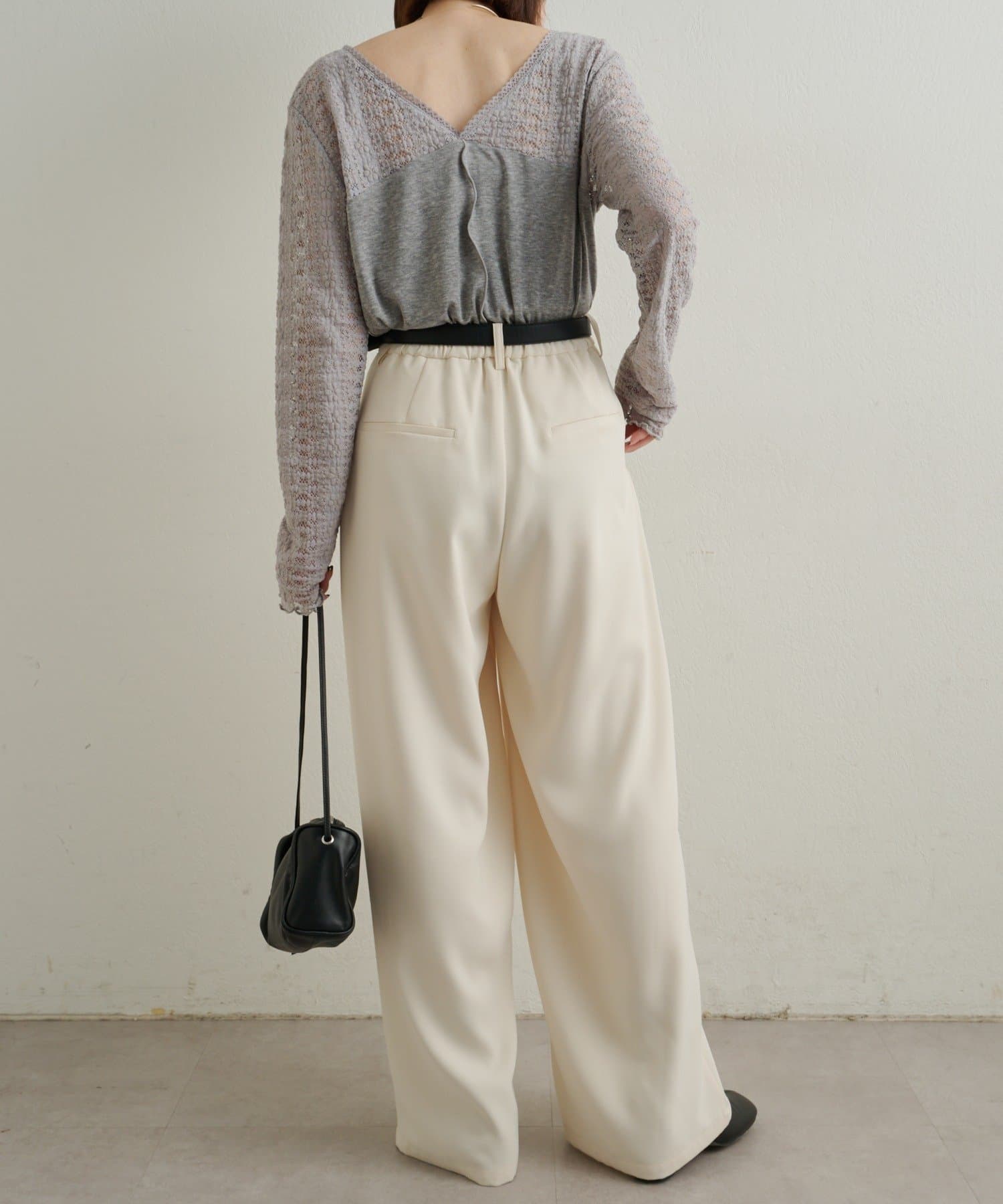 ・首回りのレース素材が女性らしいニットソー