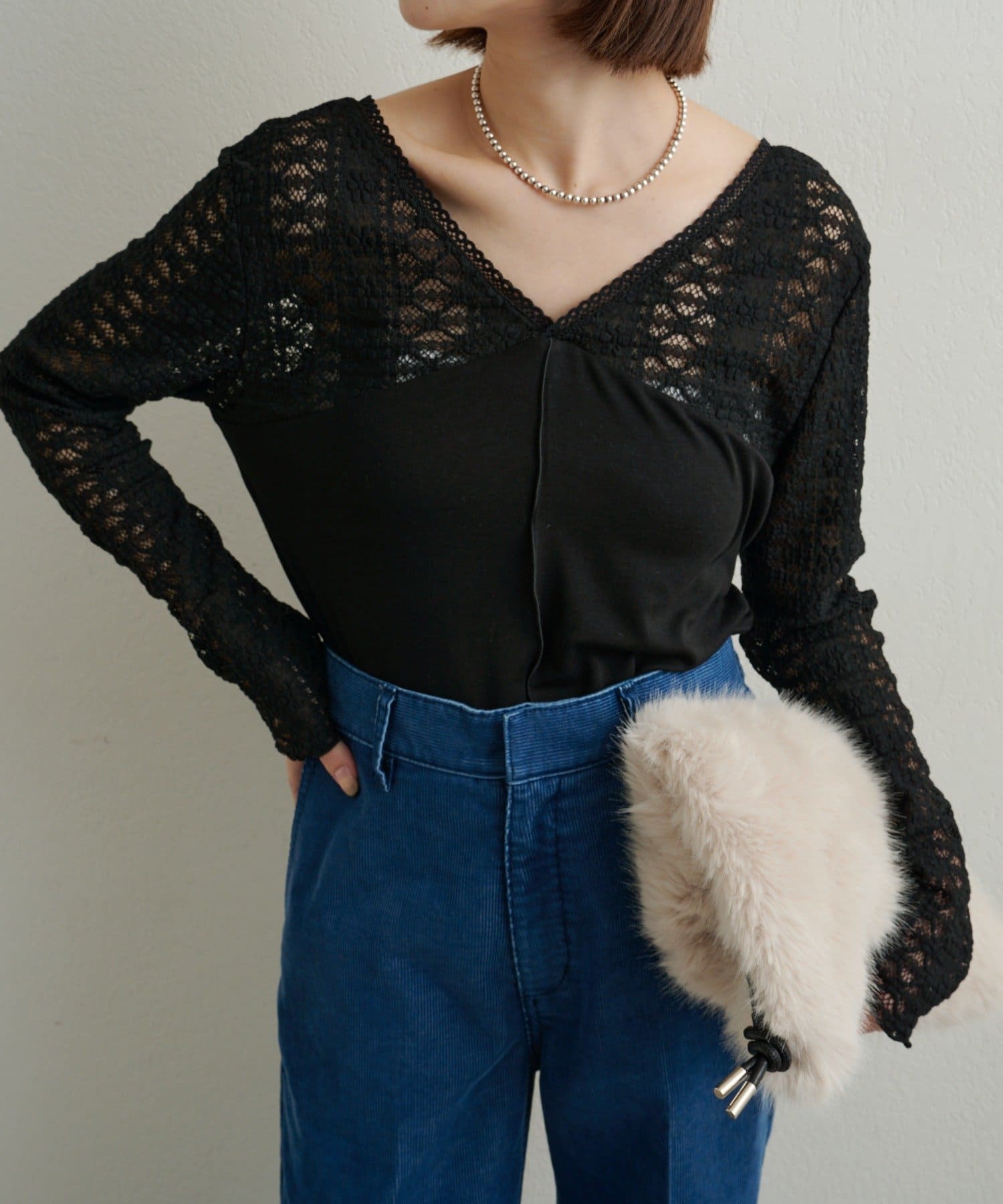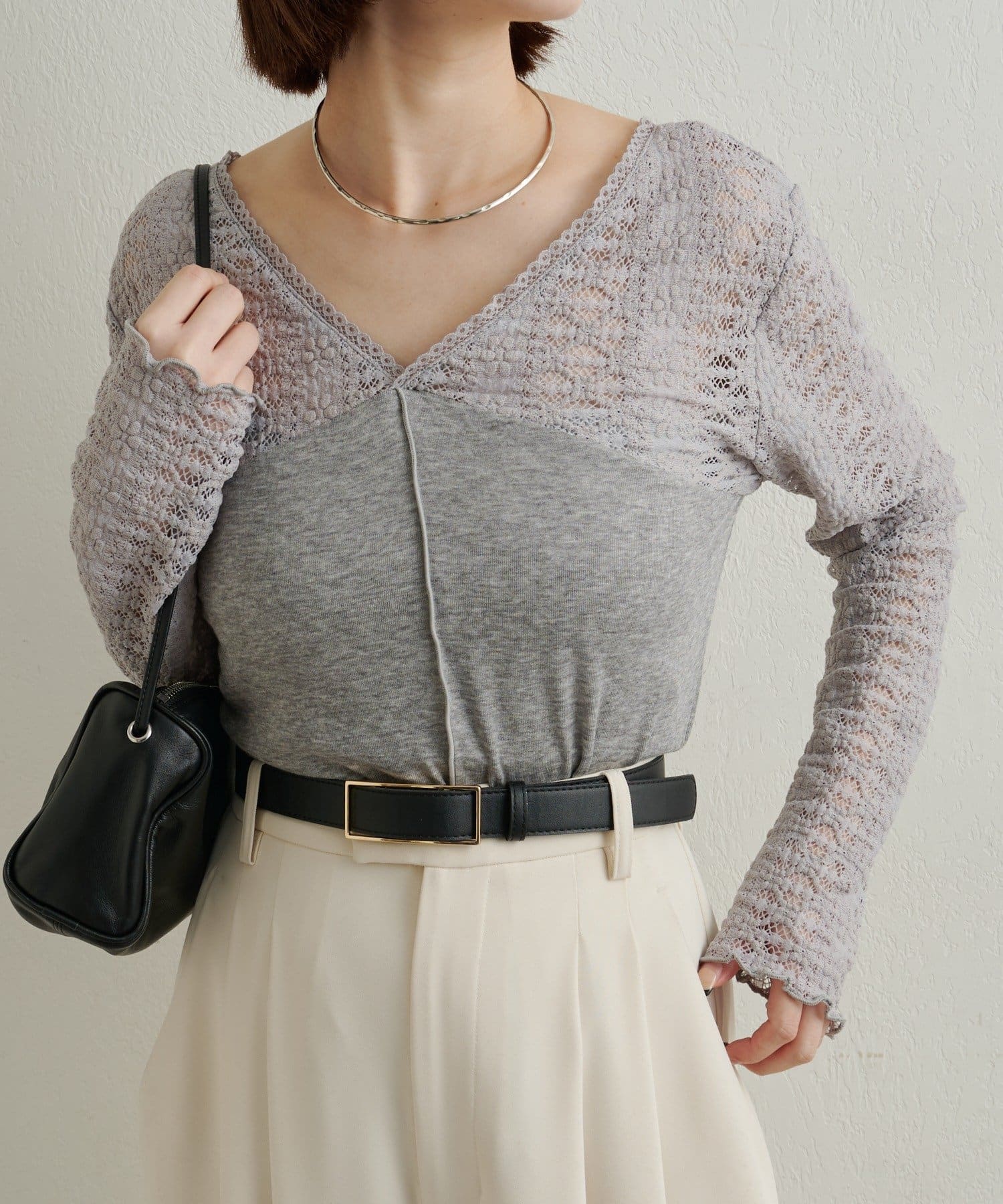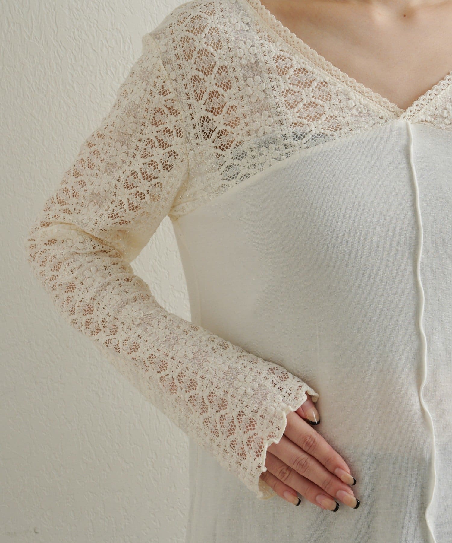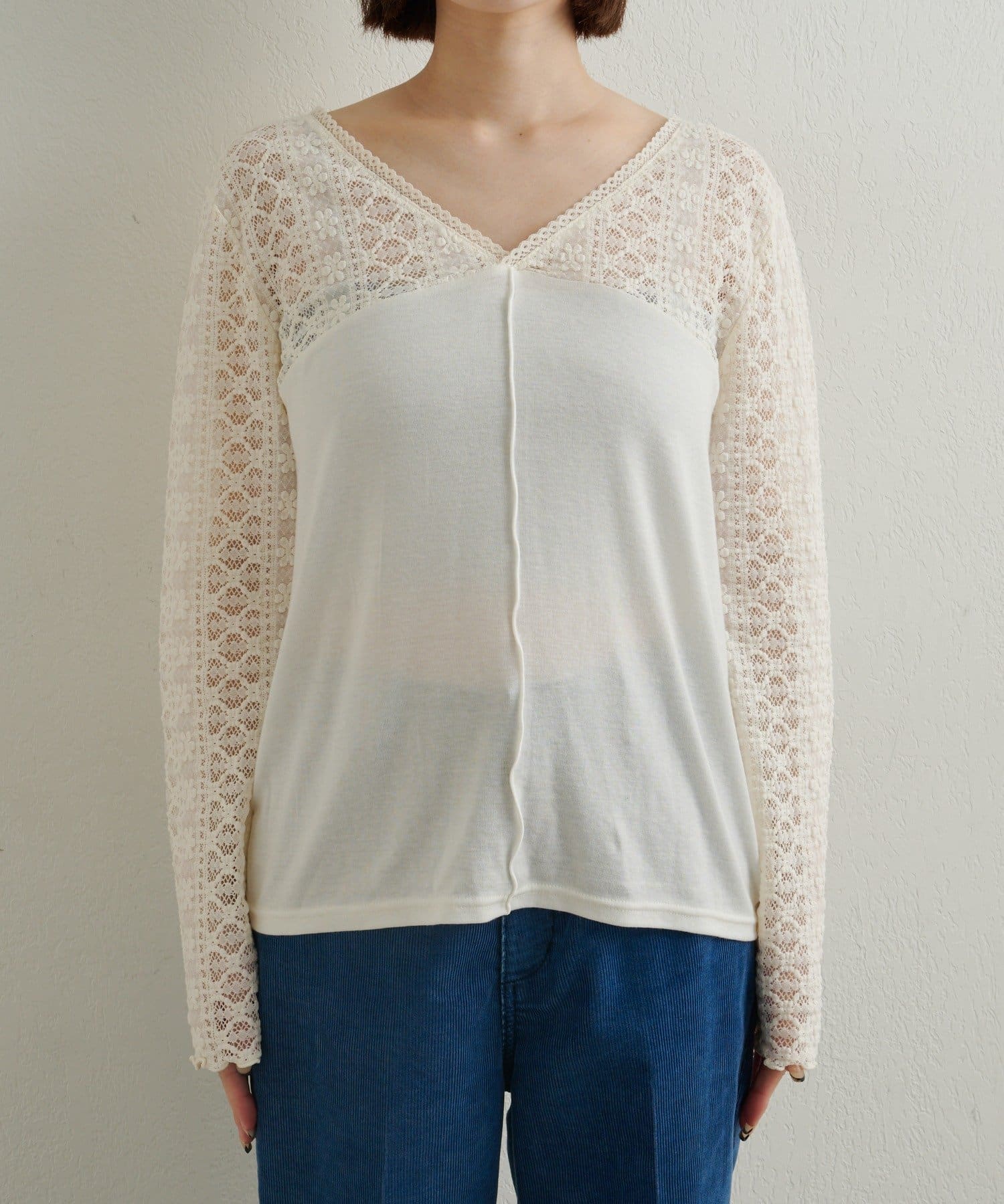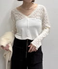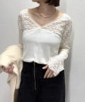 女性らしいアクセントを加えてくれるレース切替ニットソー