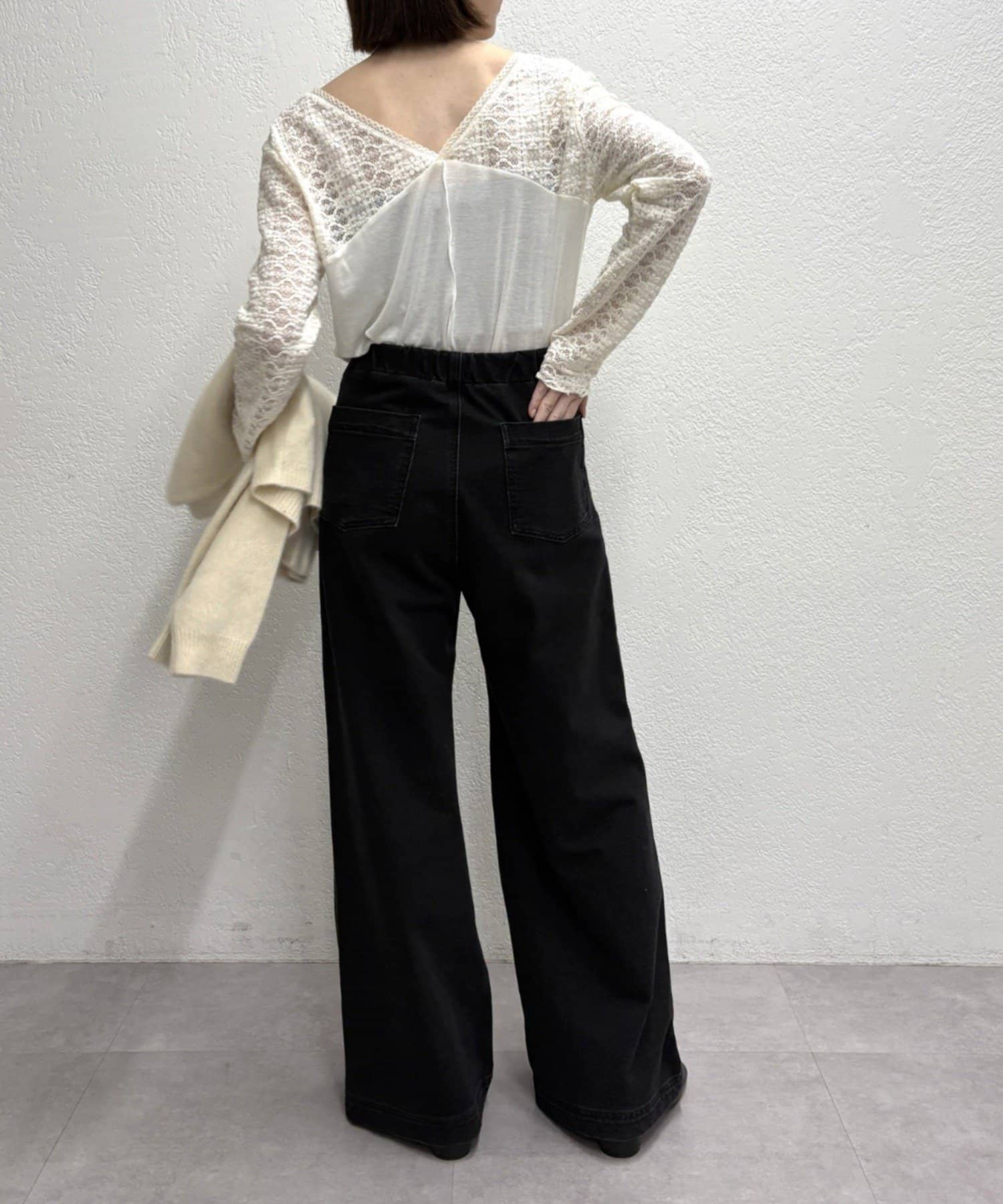 下身頃部分:再生繊維セルロース83%、ウール10%、ポリウレタン5%、カシミヤ2%