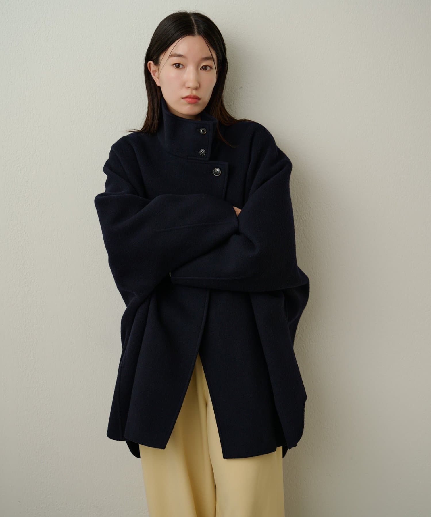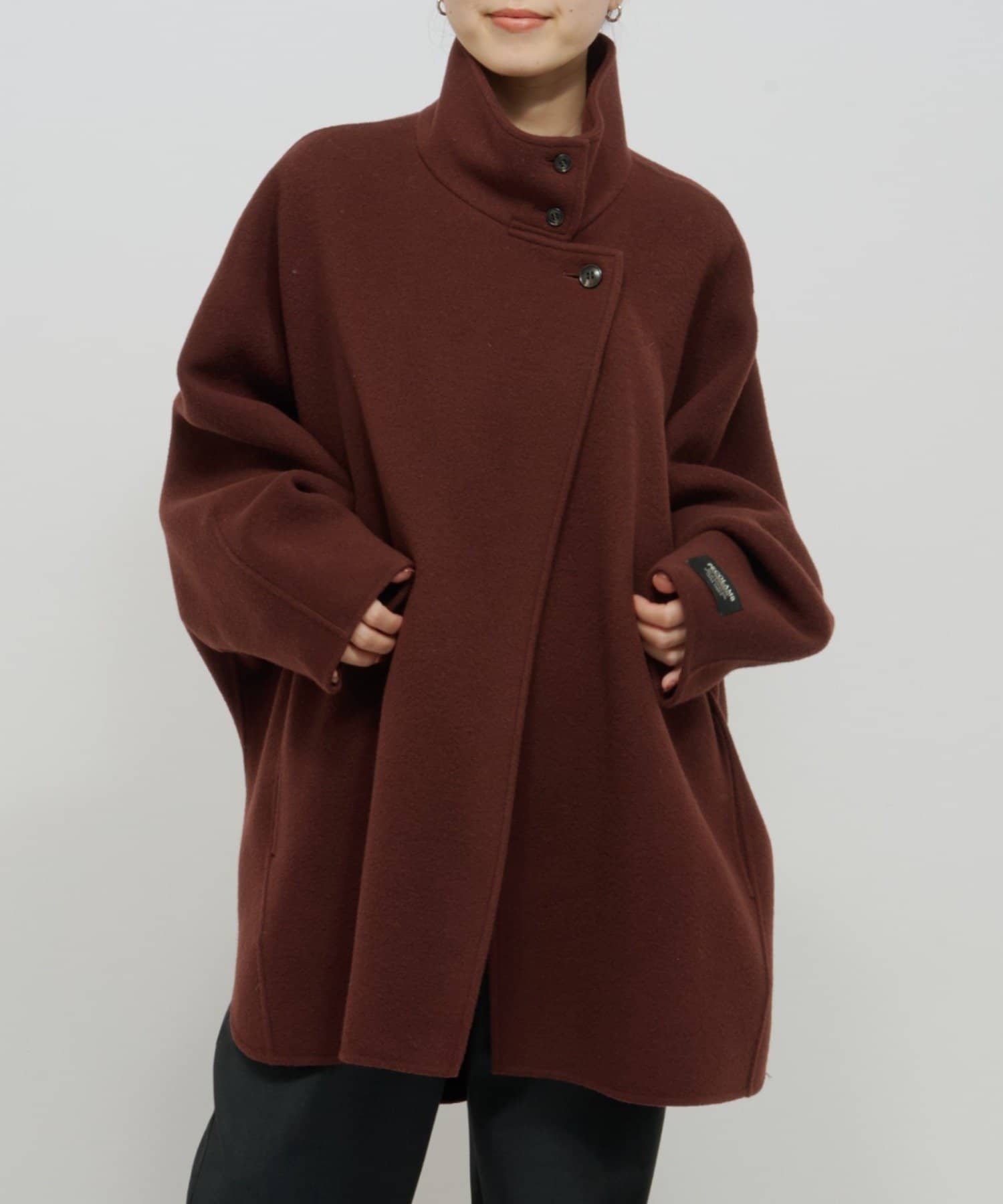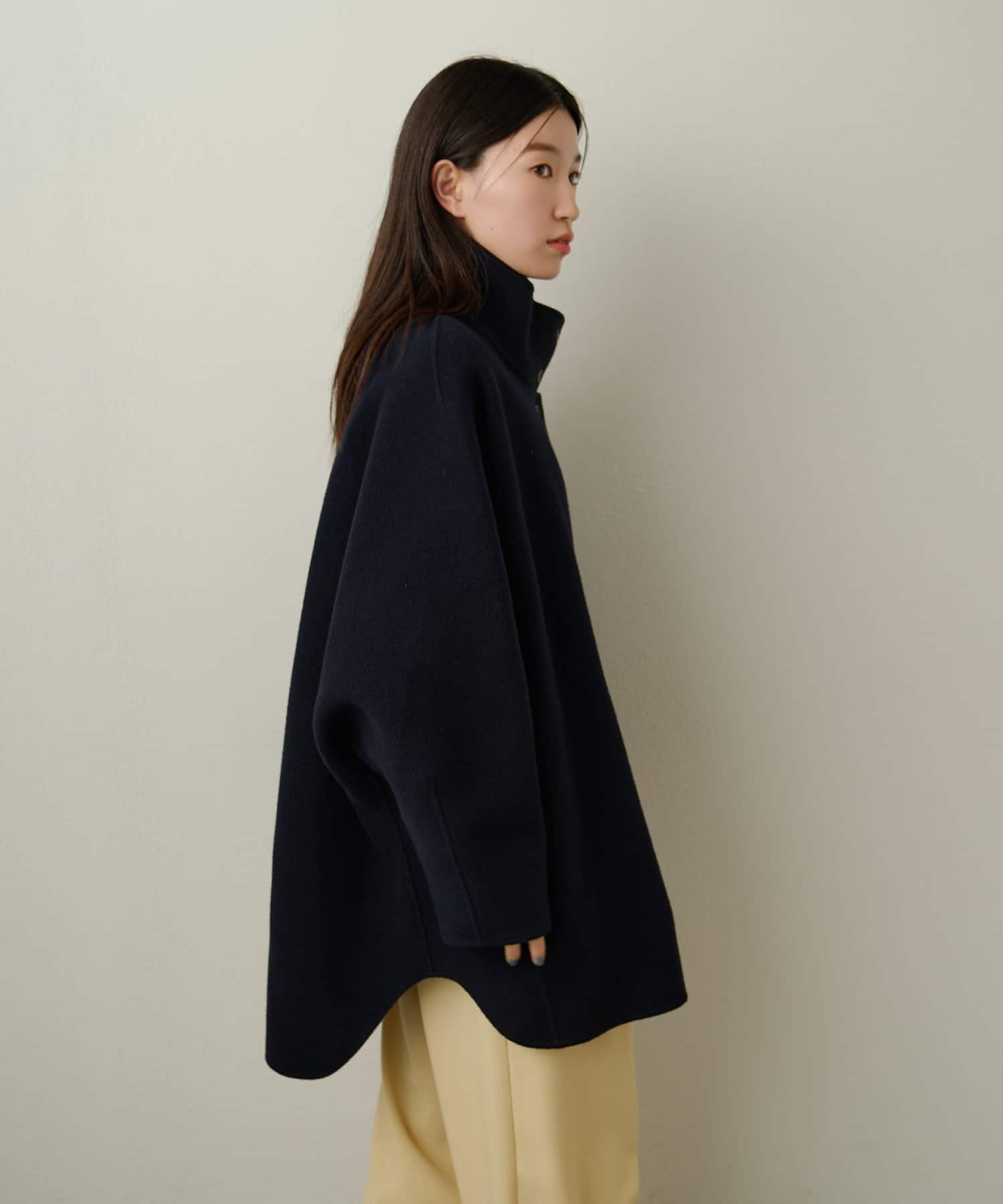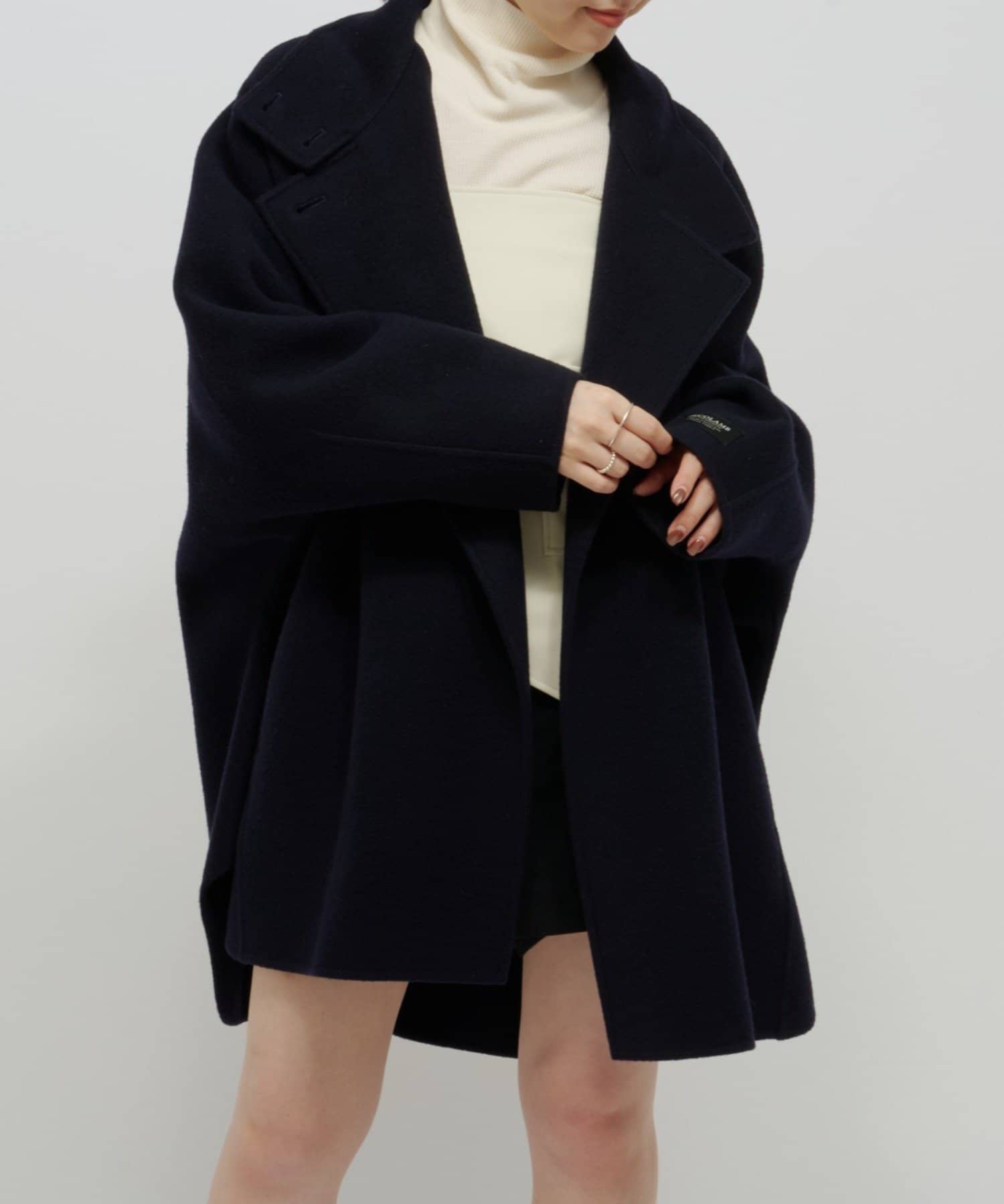 ・ドルマン袖のデザインとゆったりとしたシルエットがこなれ感のあるダブルフェイスドルマンコート。