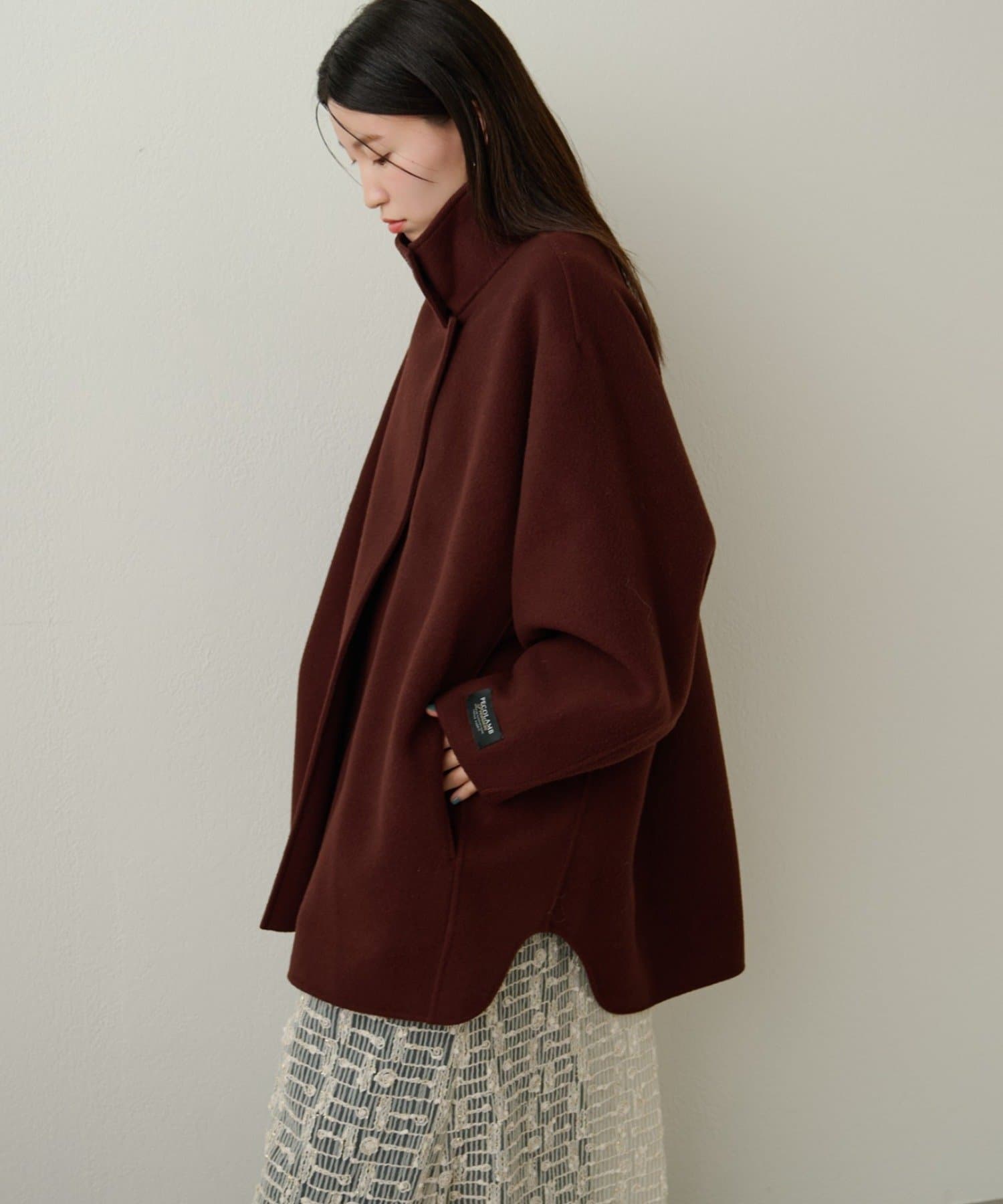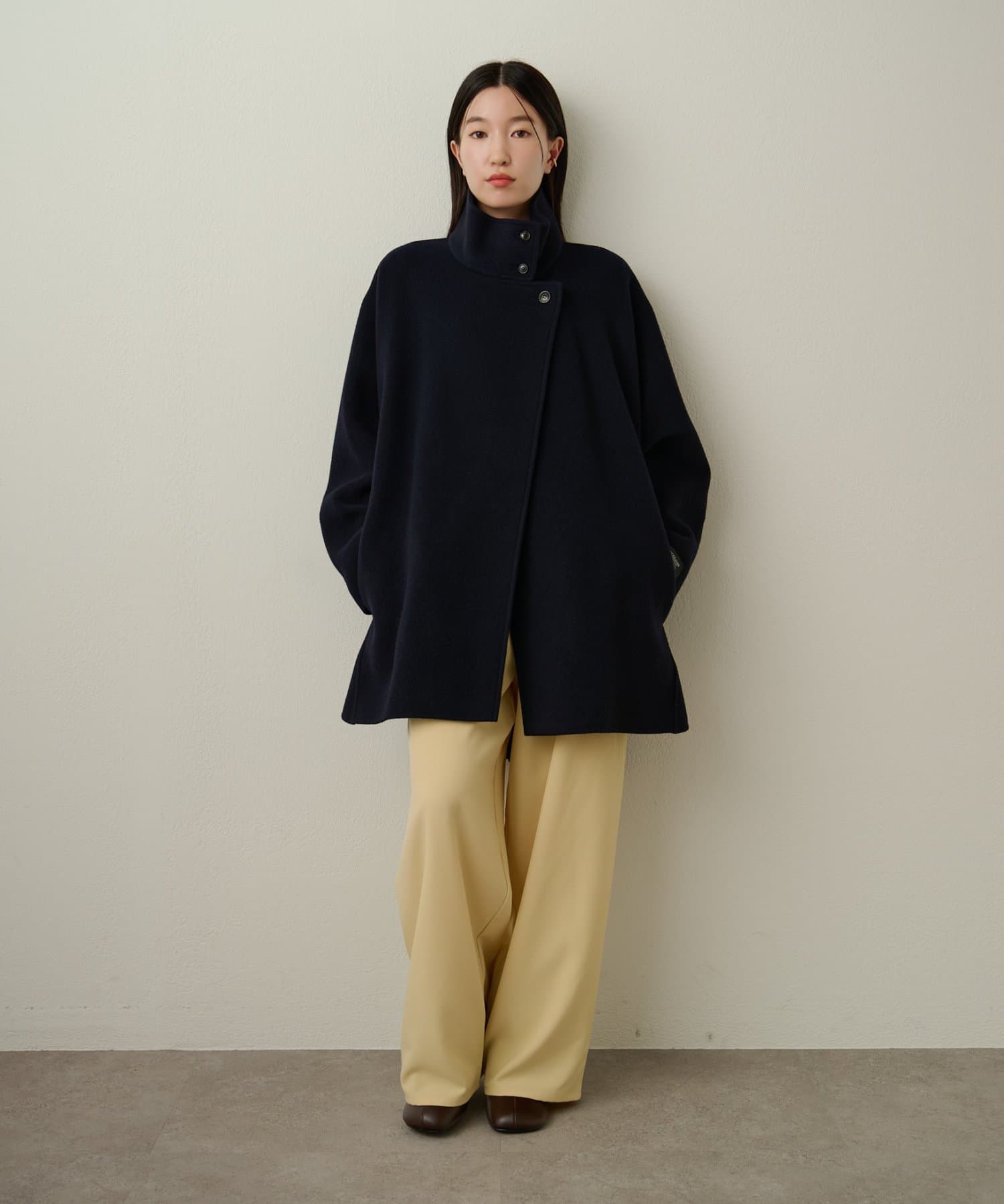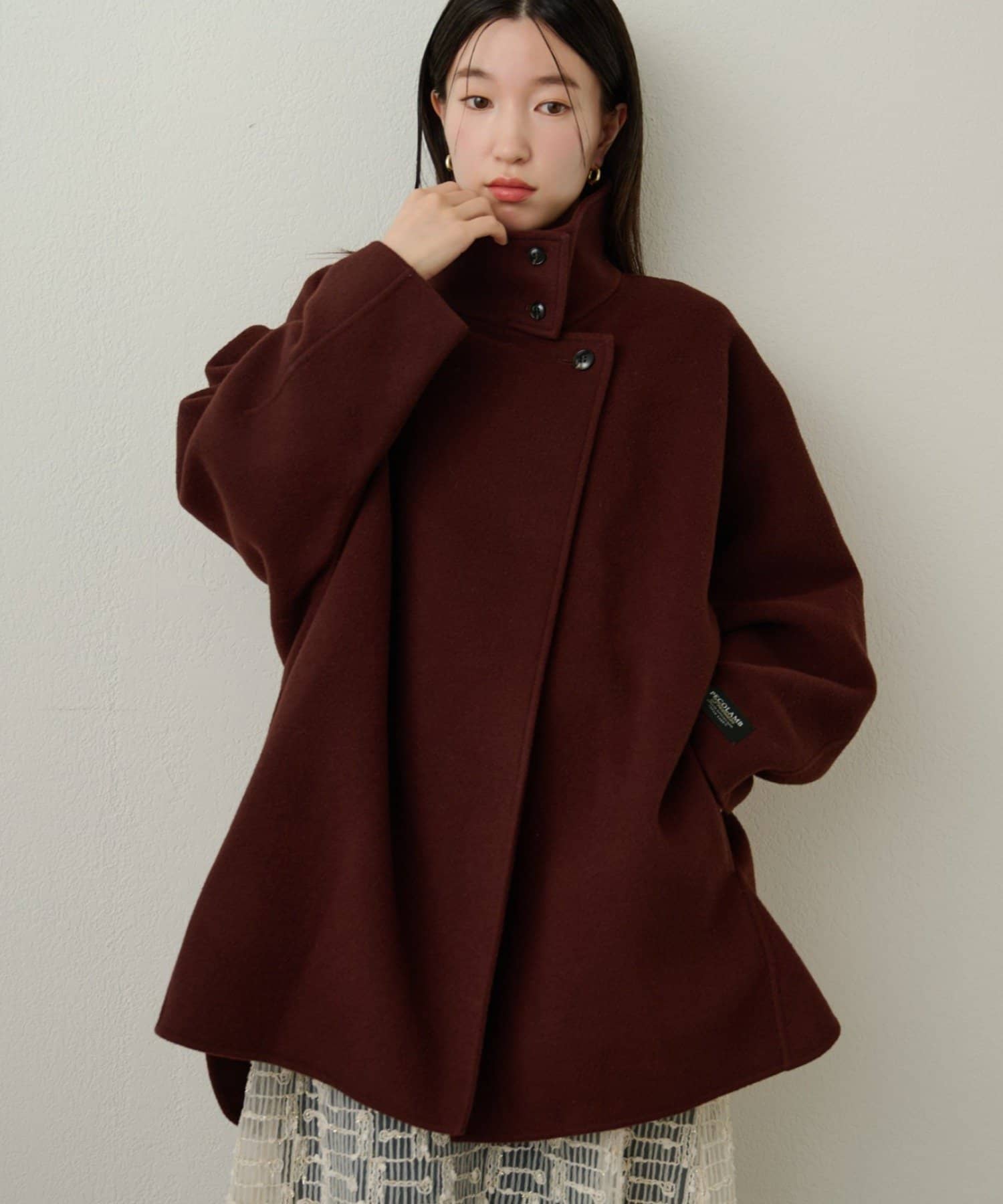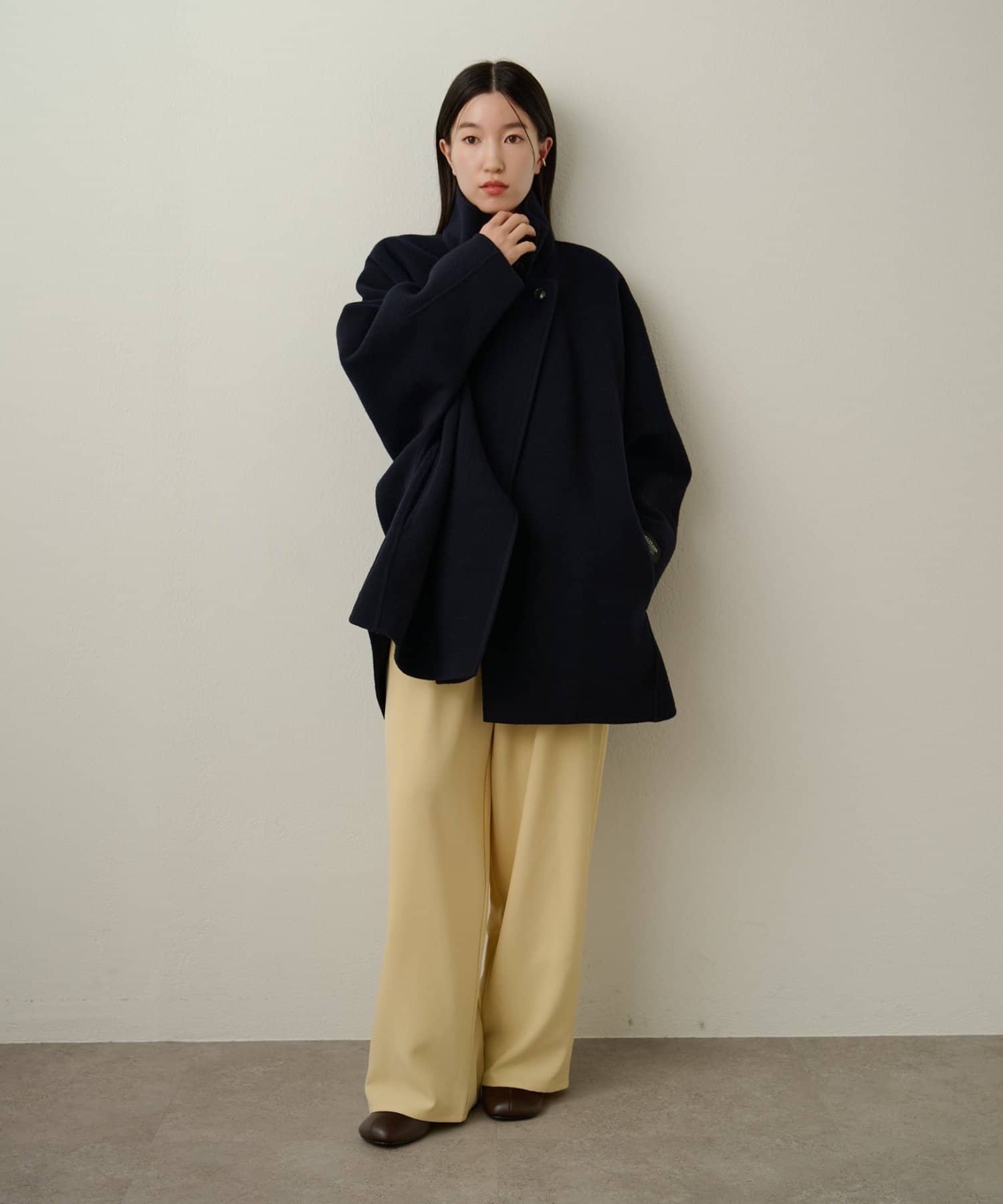 ・ドルマン袖のデザインとゆったりとしたシルエットがこなれ感のあるダブルフェイスドルマンコート。