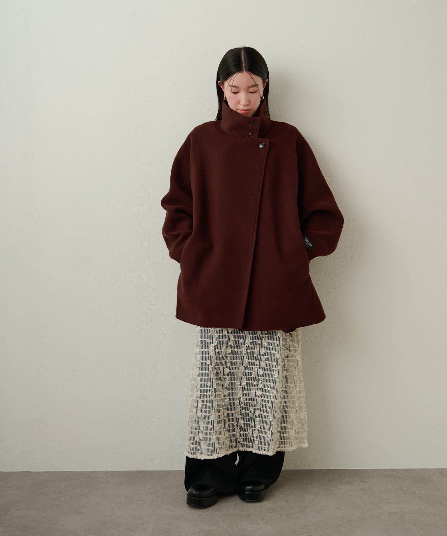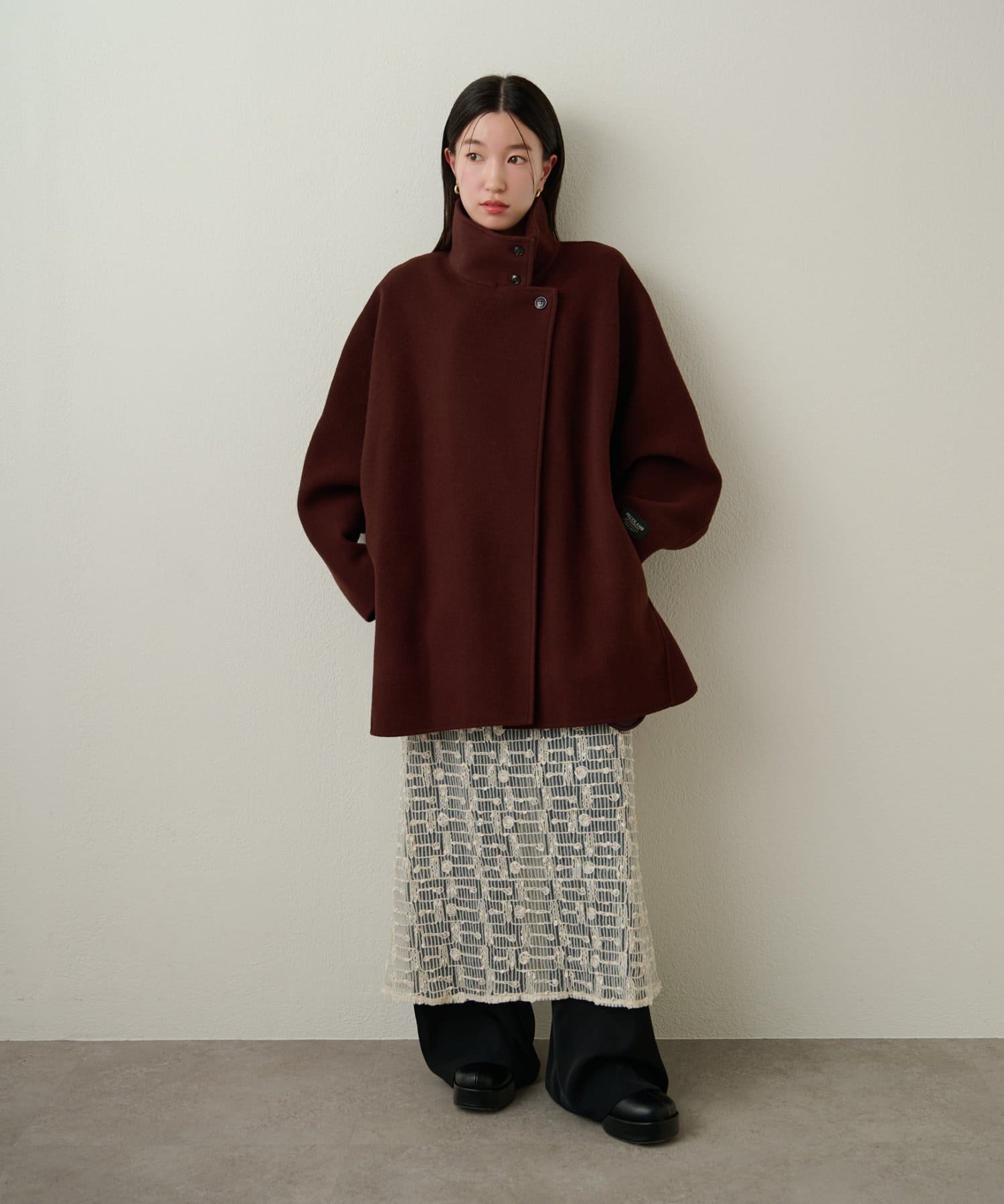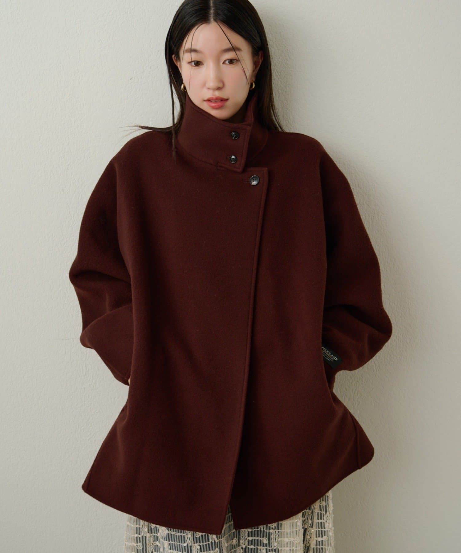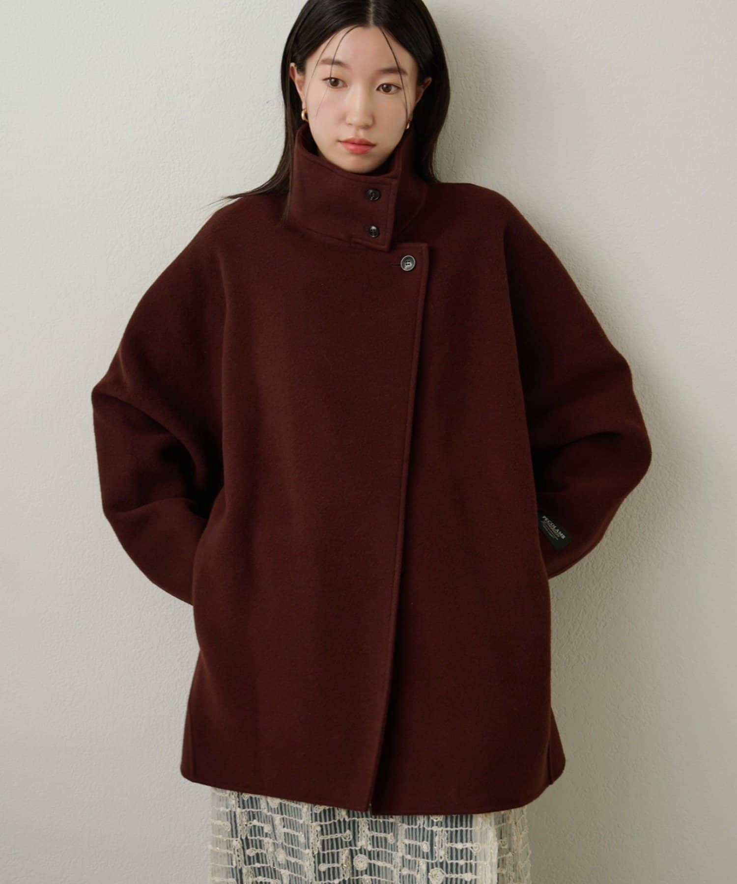 ・ドルマン袖のデザインとゆったりとしたシルエットがこなれ感のあるダブルフェイスドルマンコート。