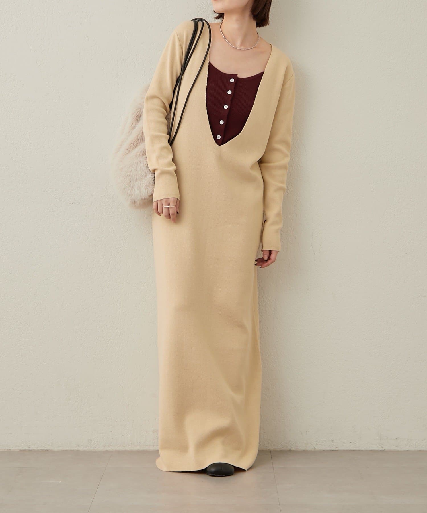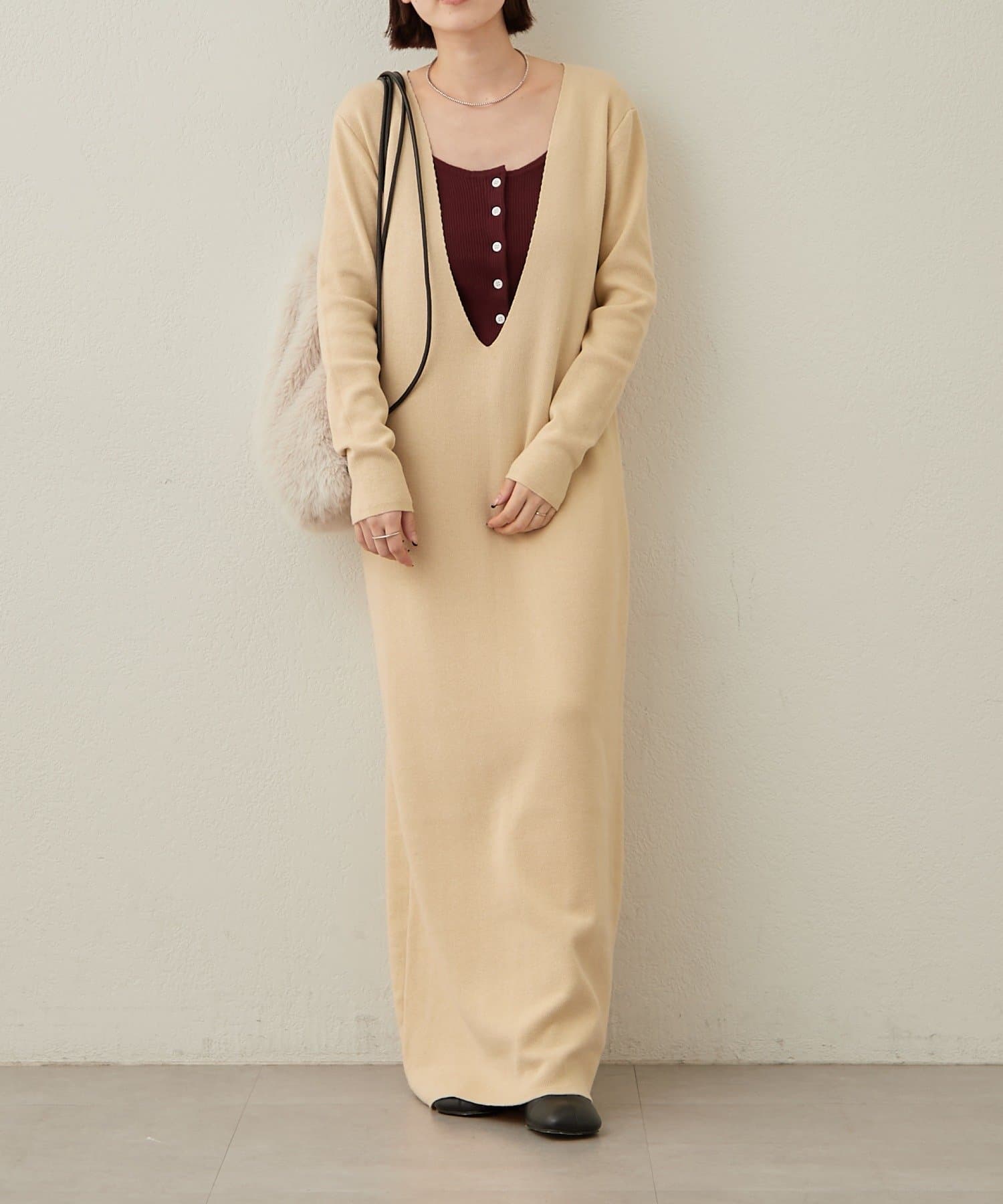 ・一枚でスタイリングが決まるニットワンピビスチェセット。