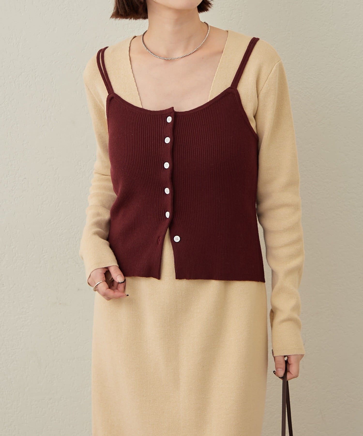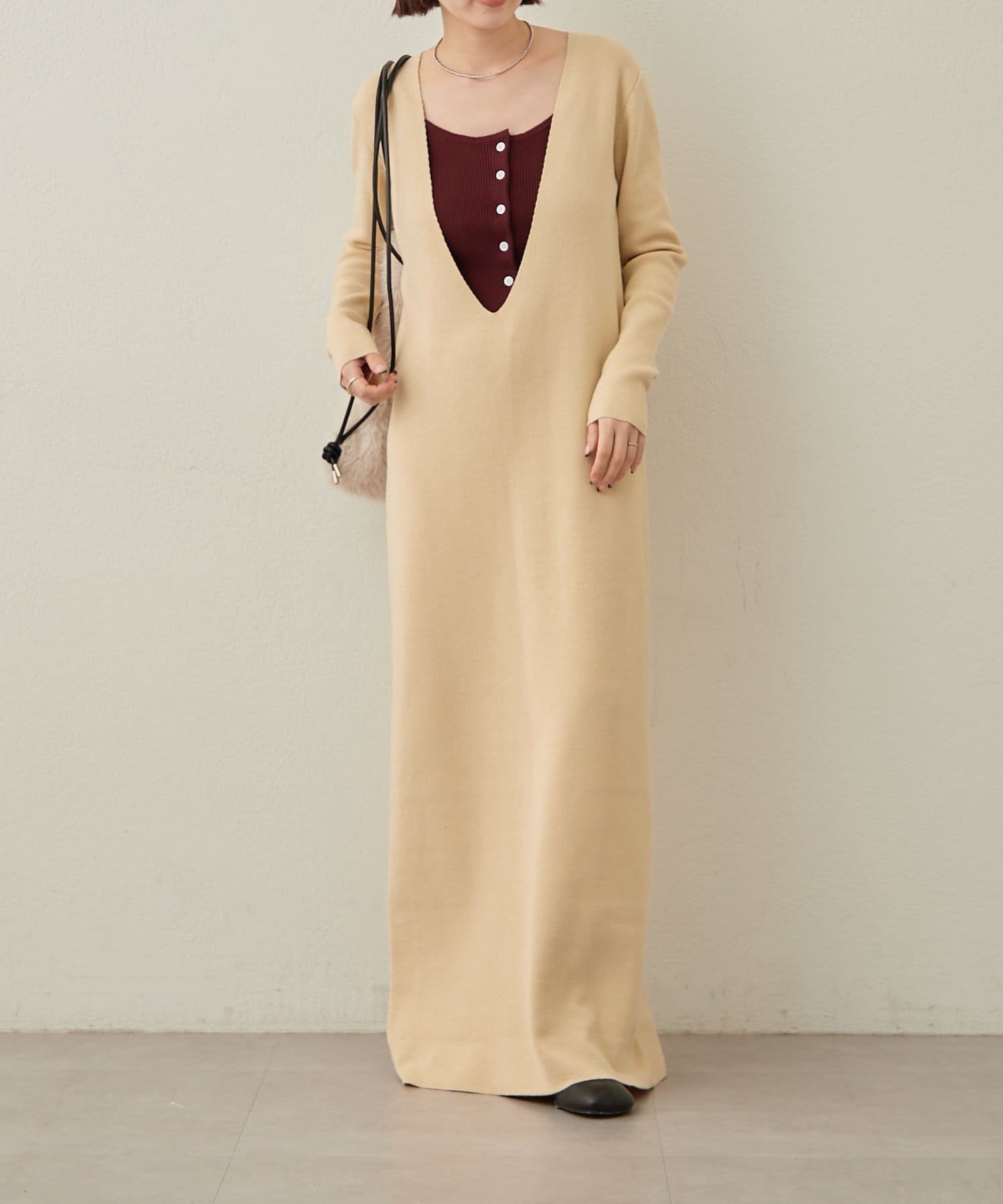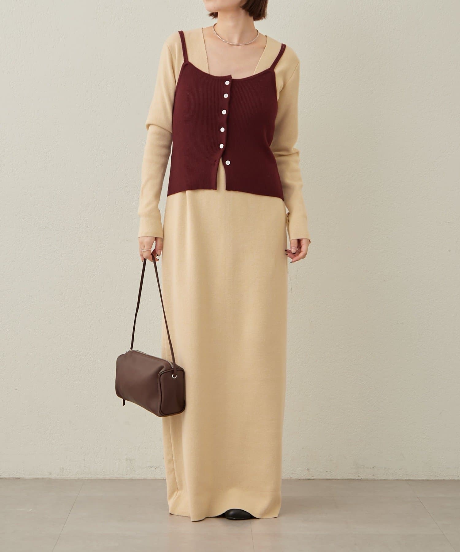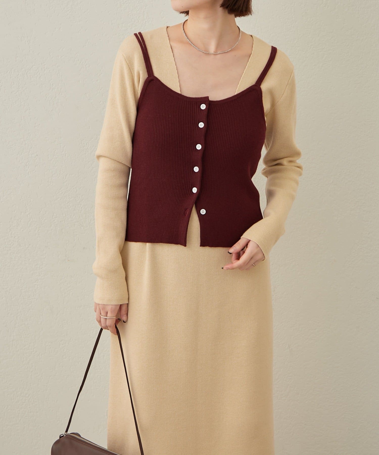 ・一枚でスタイリングが決まるニットワンピビスチェセット。