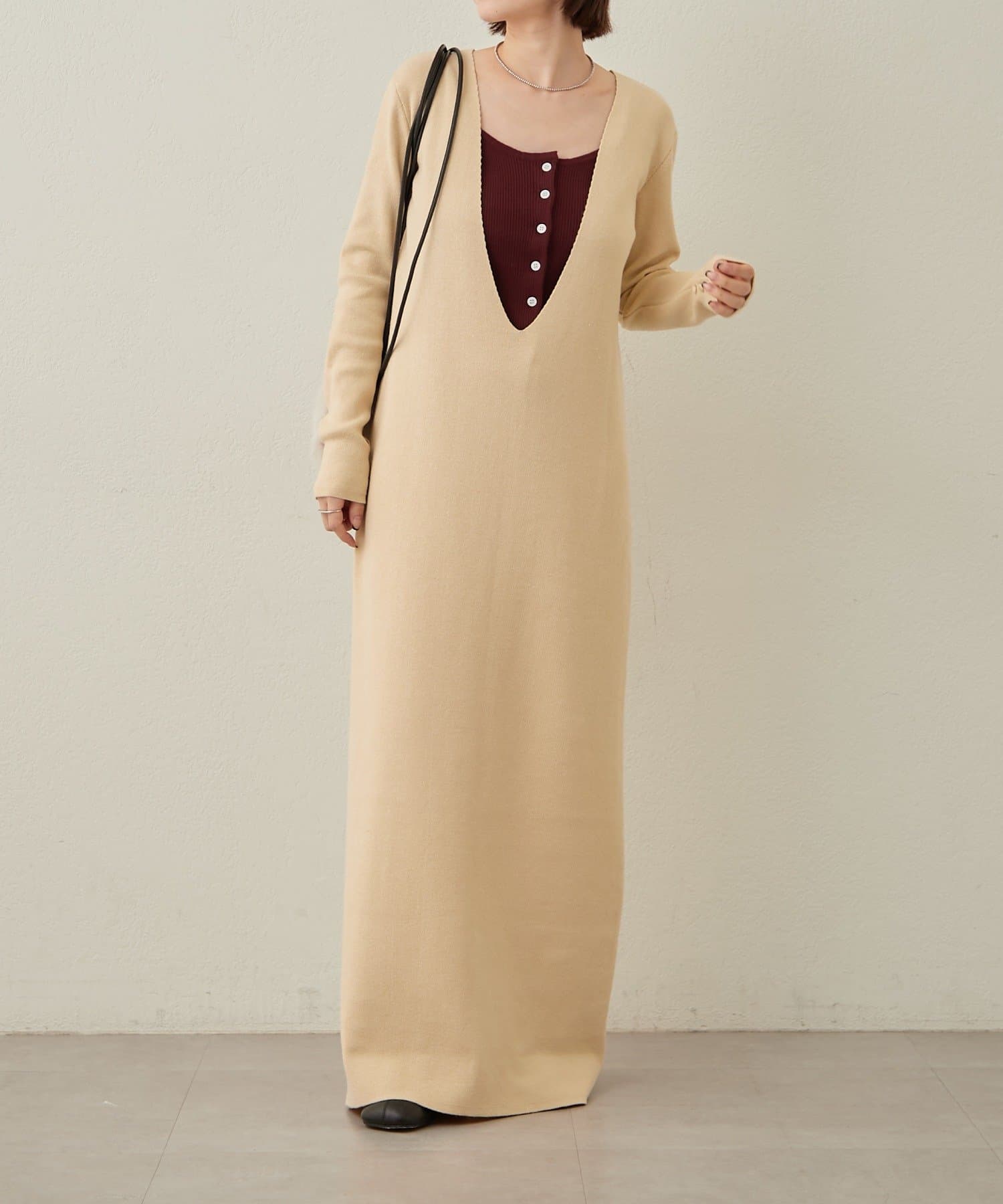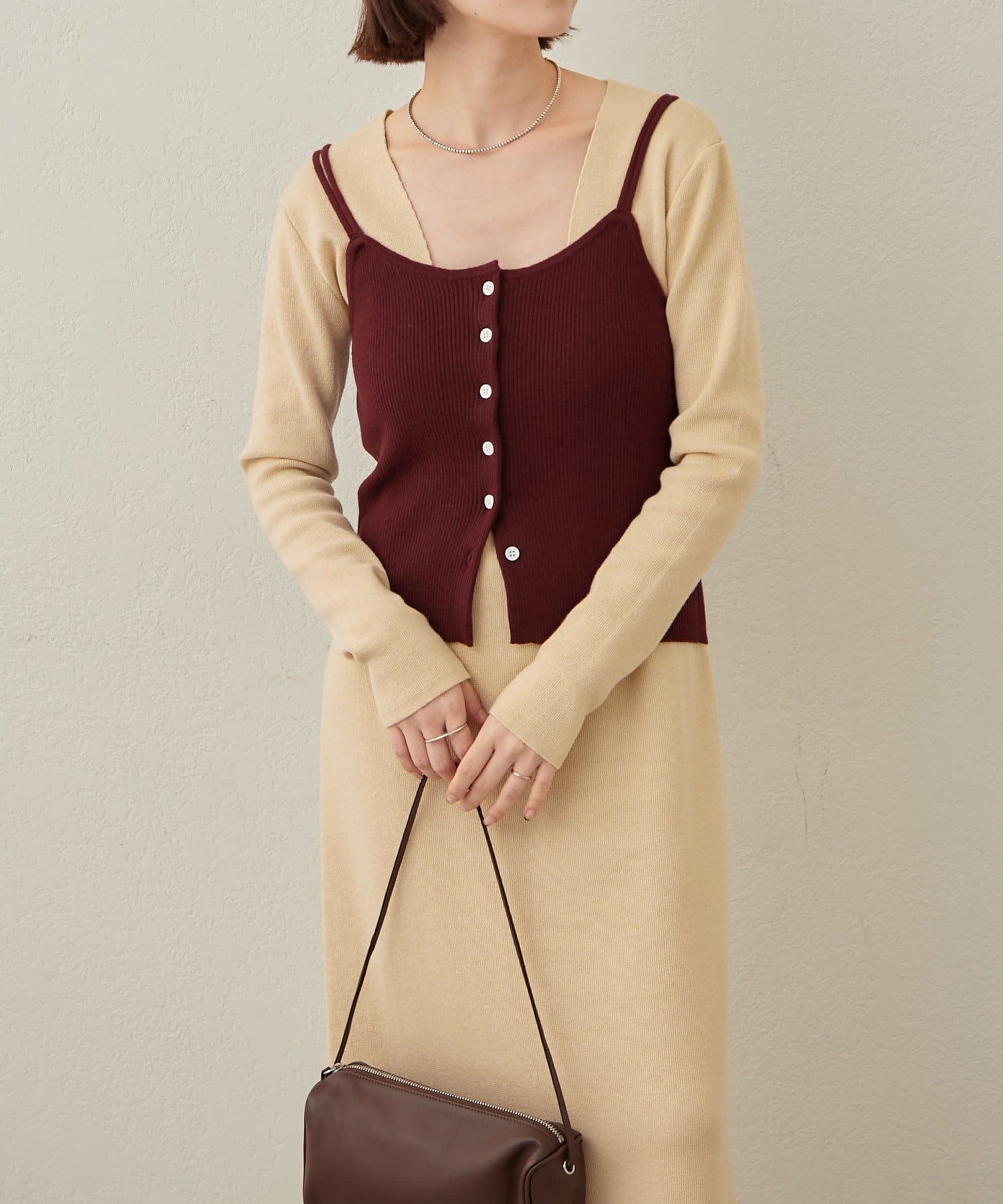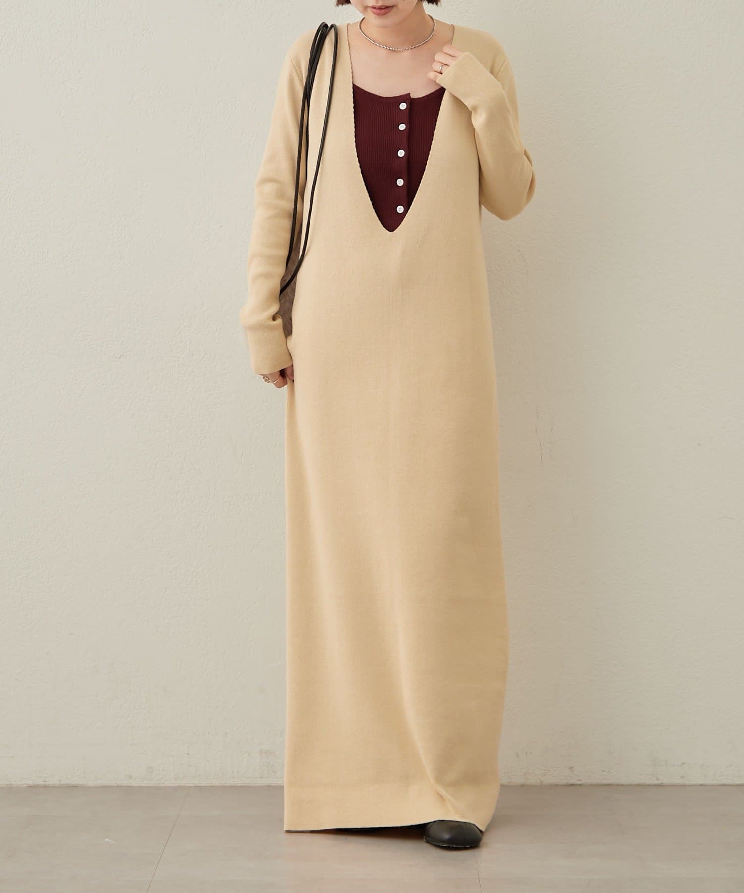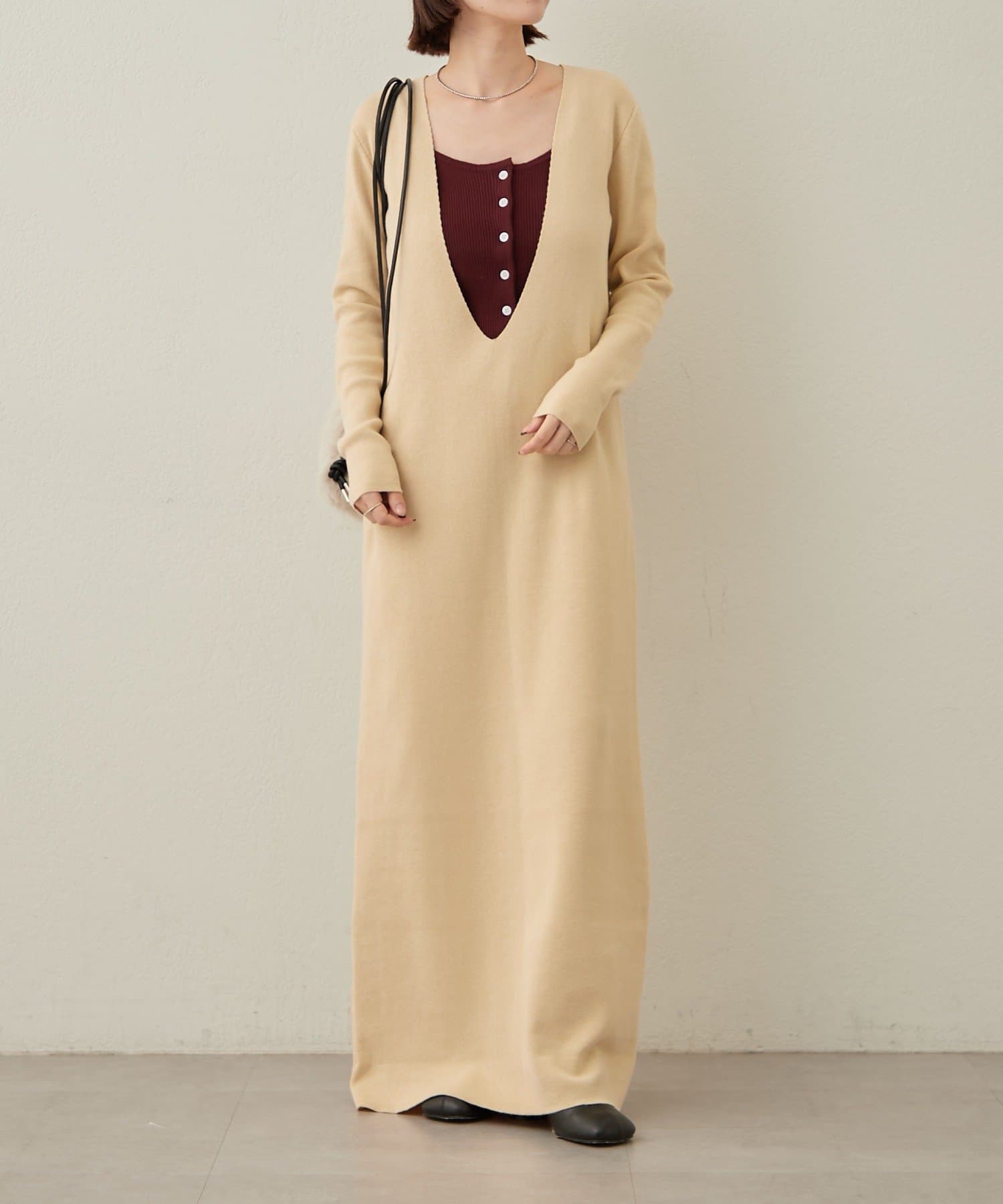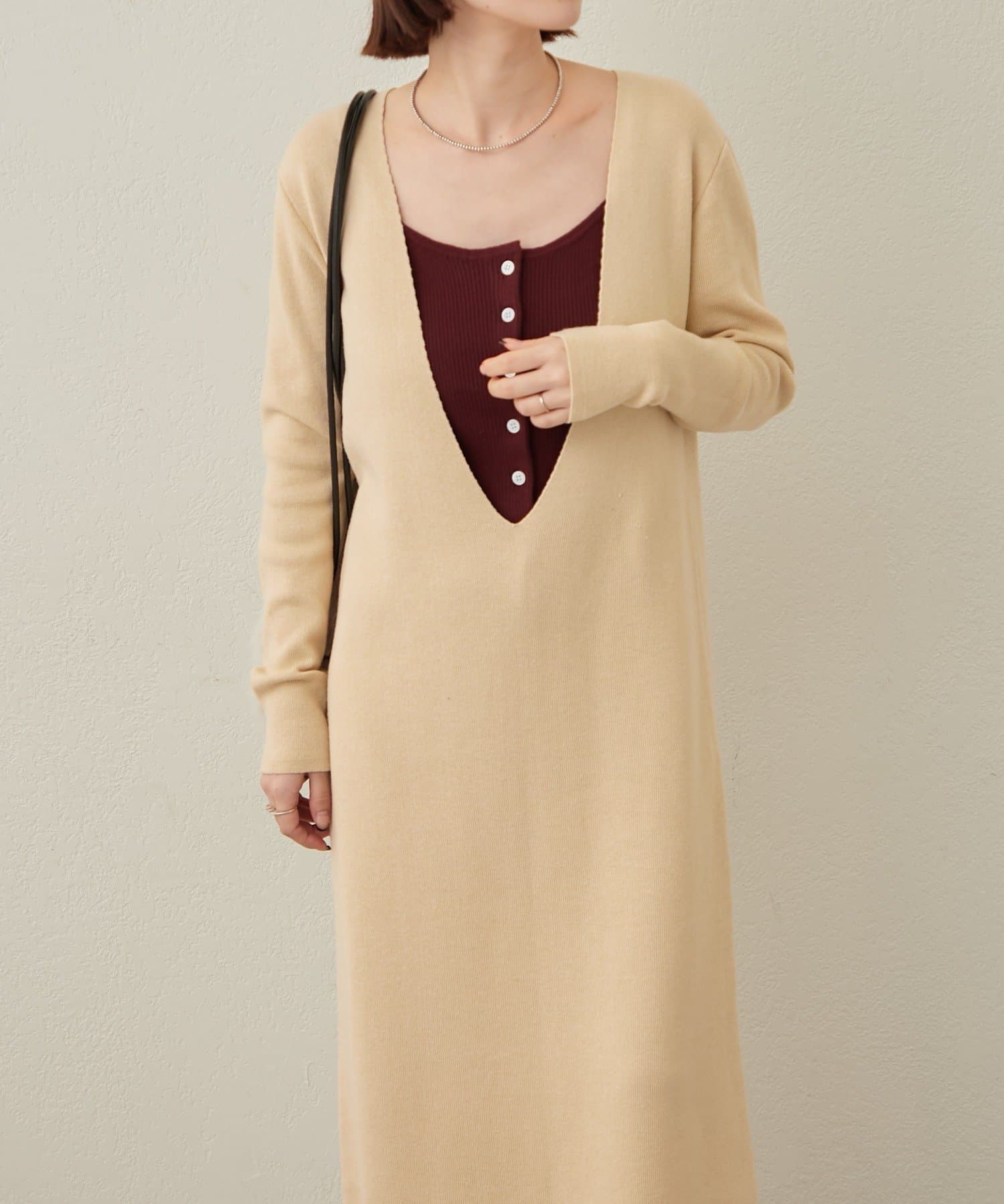 ・一枚でスタイリングが決まるニットワンピビスチェセット。