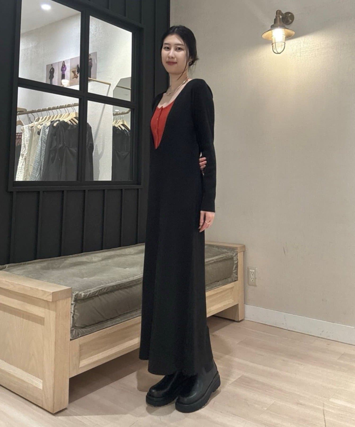 丈感が足りなくてパンツとレイヤードしたり、ロングブーツで合わせたりしなくとも、