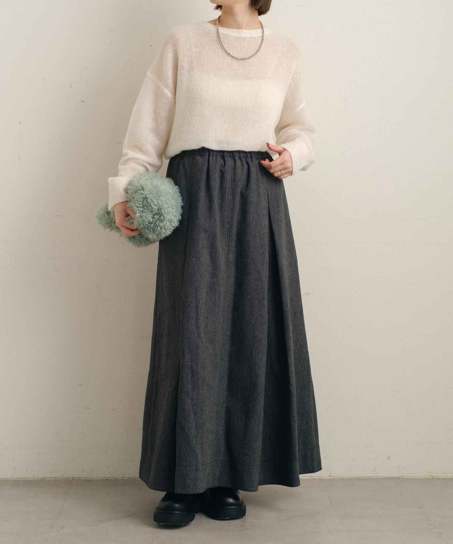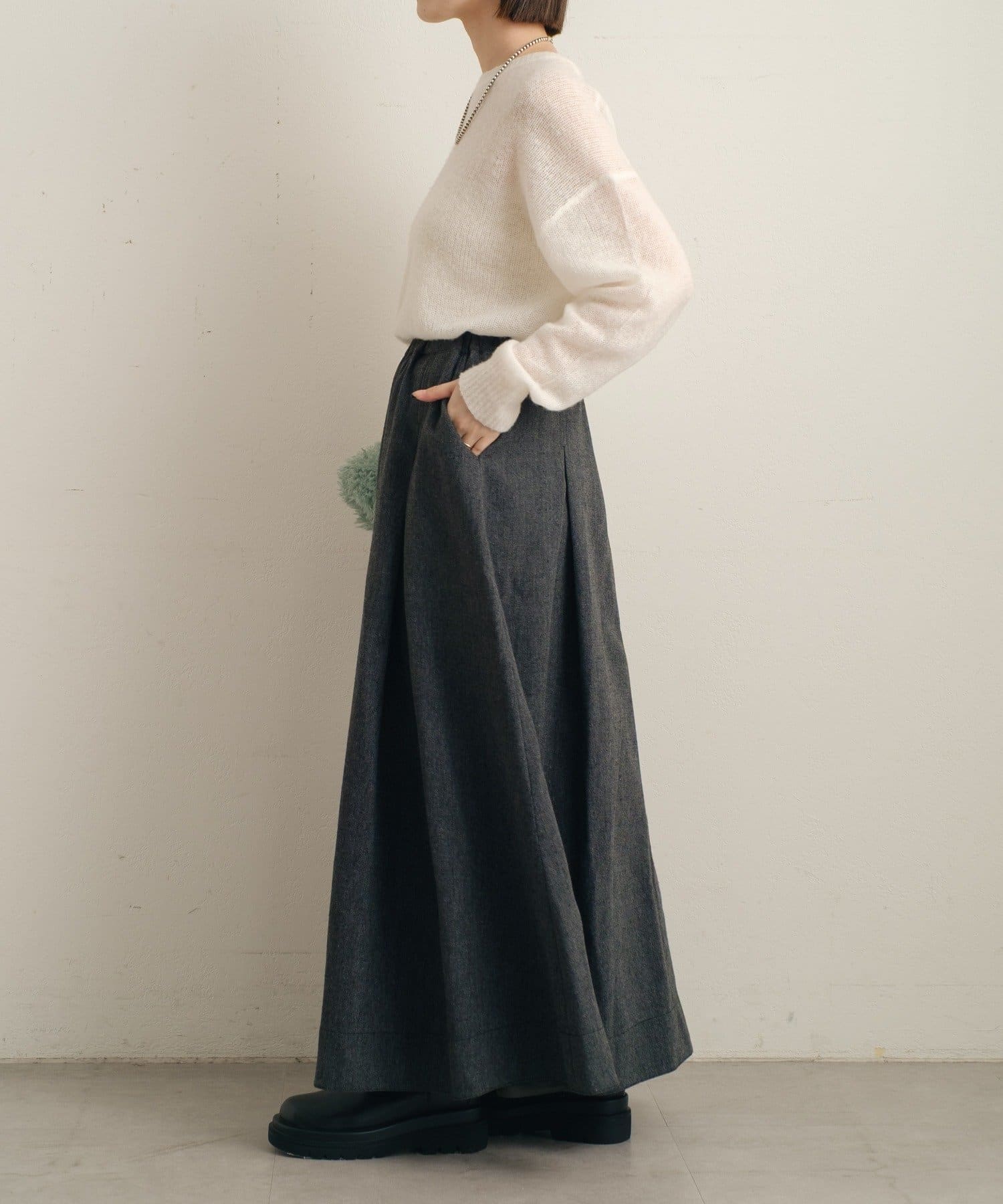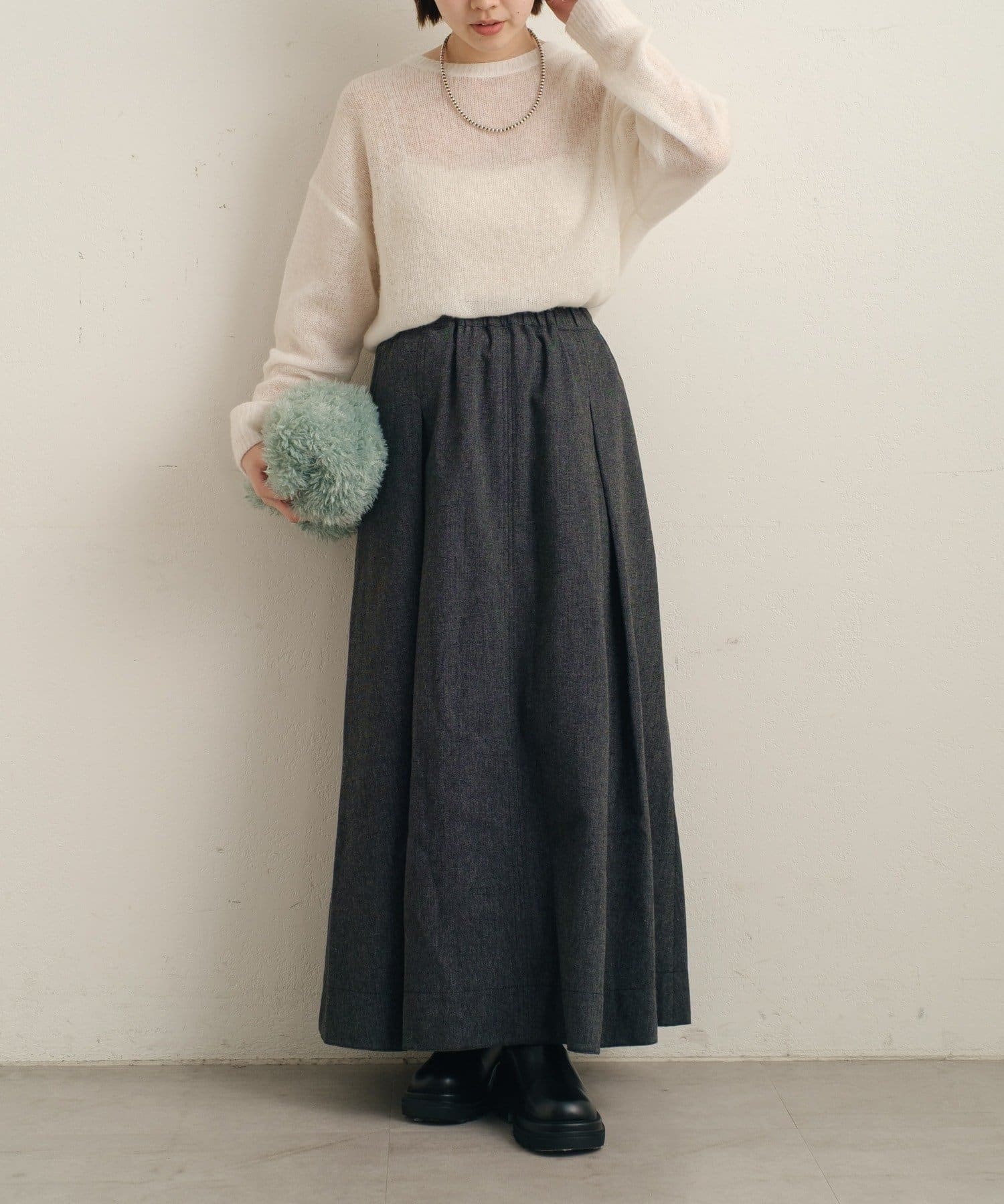 ・ニットやジャケットなど秋冬のアイテムとも相性良く、女性らしい雰囲気を演出する1枚。