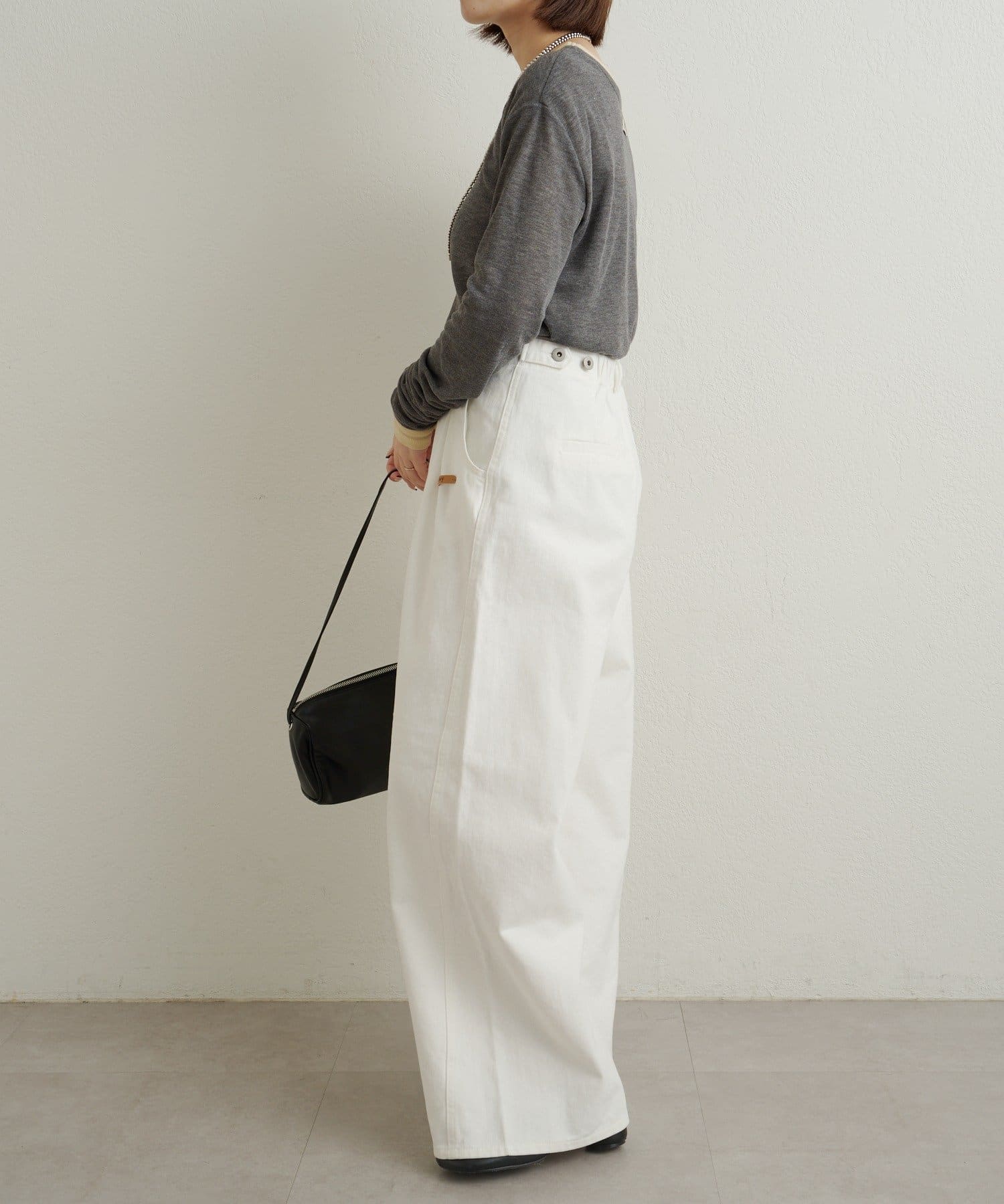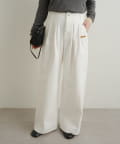 ・ワイドなシルエットとダブルタックが腰回りにゆとりが生まれて動きやすく、体型カバー効果も!