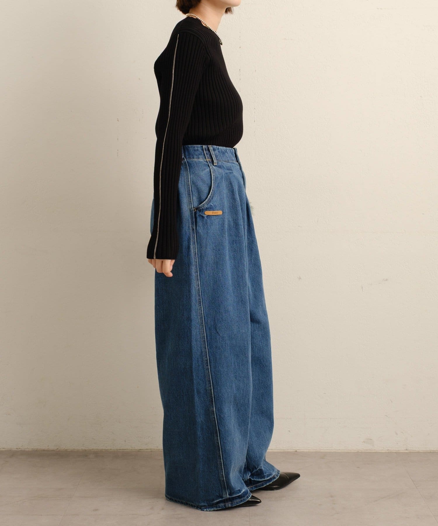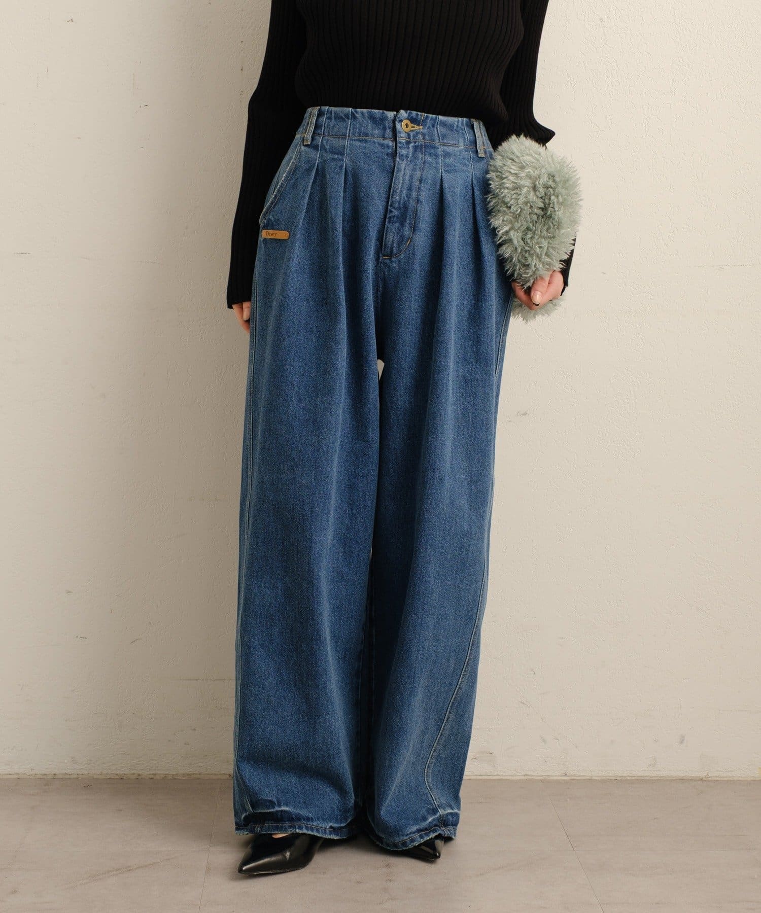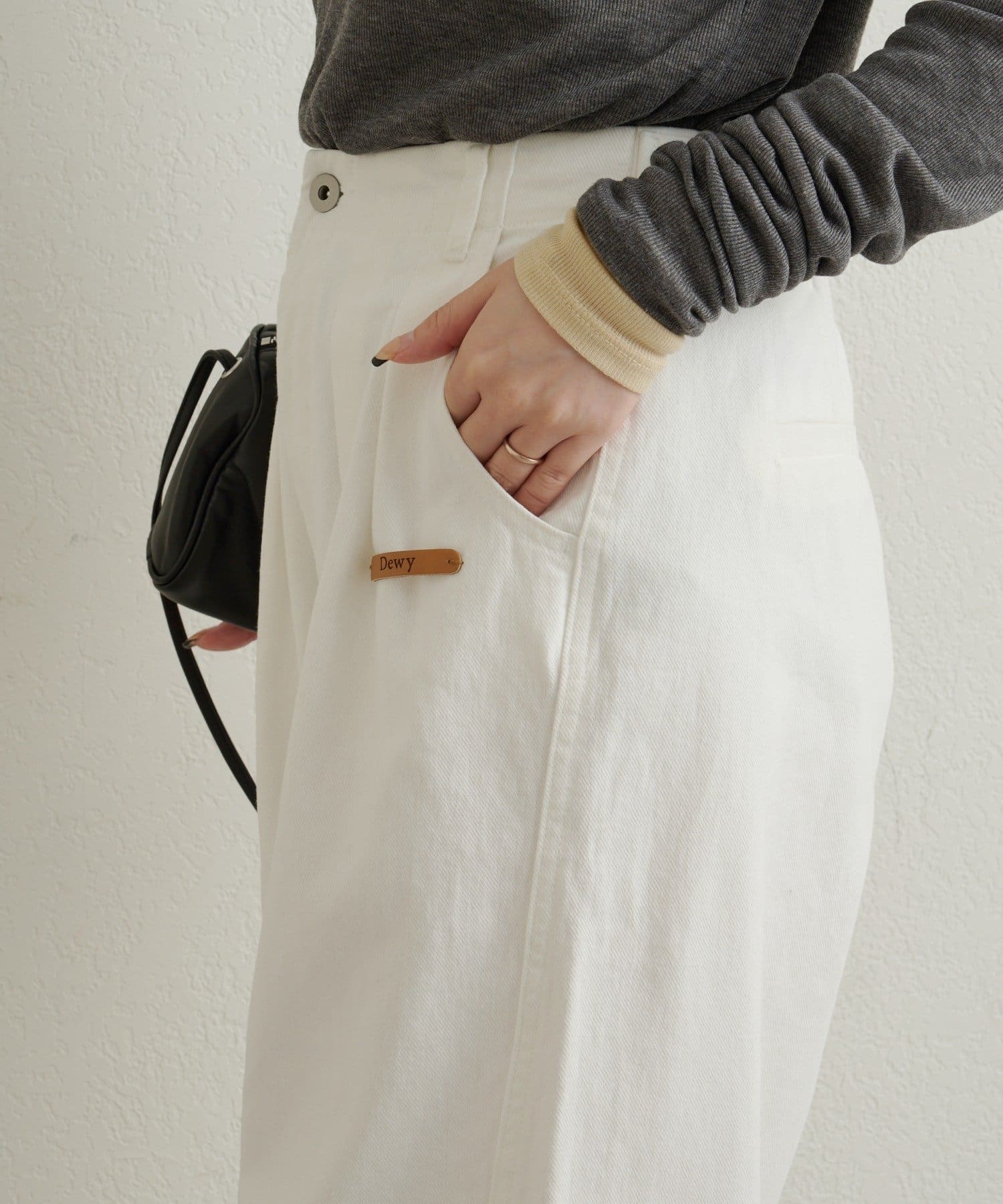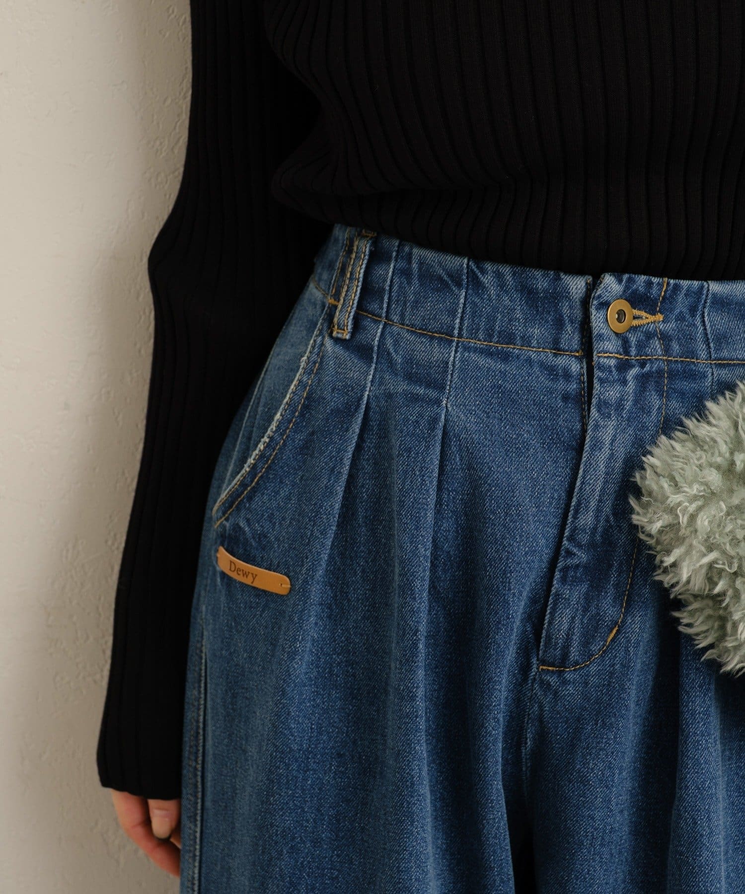 Dewyのレザータグがポイントになる大人カジュアルデニム